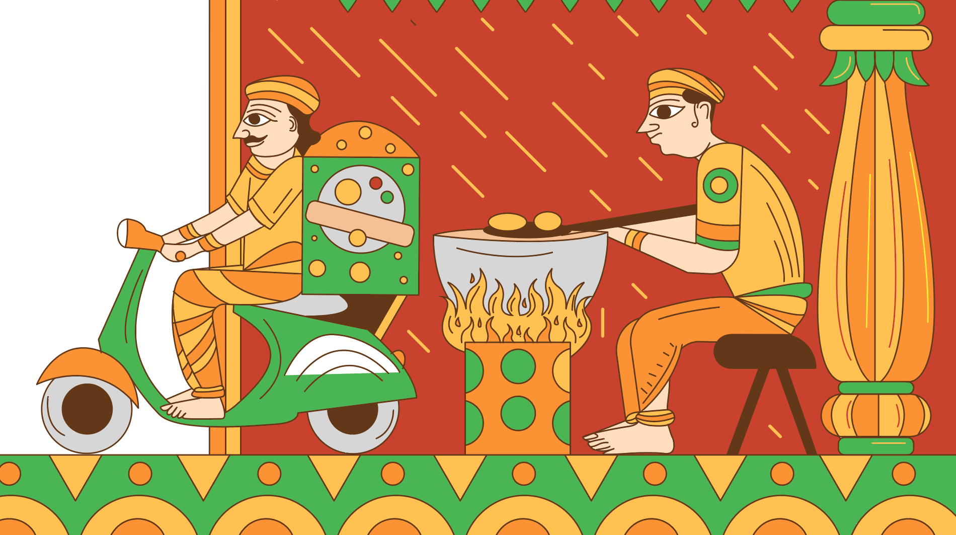 Famous Madurai Snacks show and Contemporary Food Delivery Cheriyal Scroll Illustrations - Idly,Vadai and Bonda Kadai