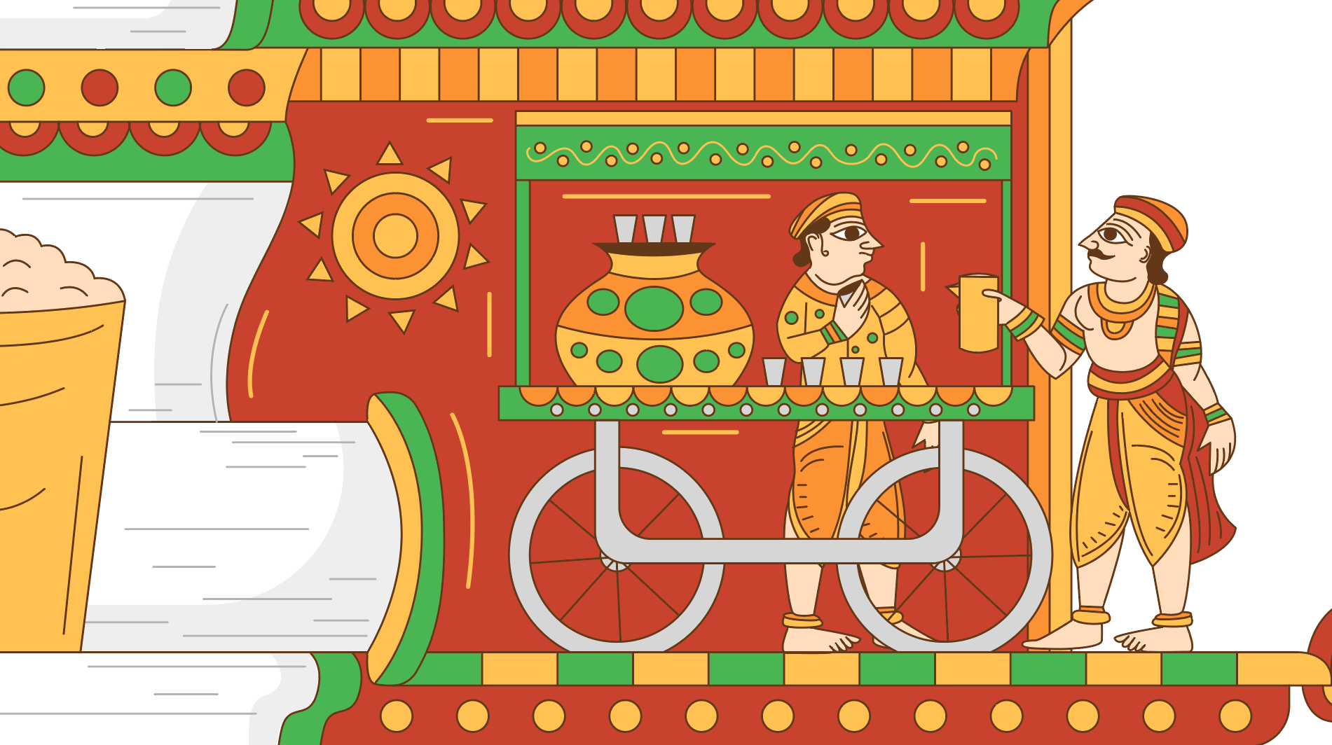 Popular Street Tea Shop of Madurai Portrayed in Cheriyal Scroll Illustrations - Roatu Tea Kadai