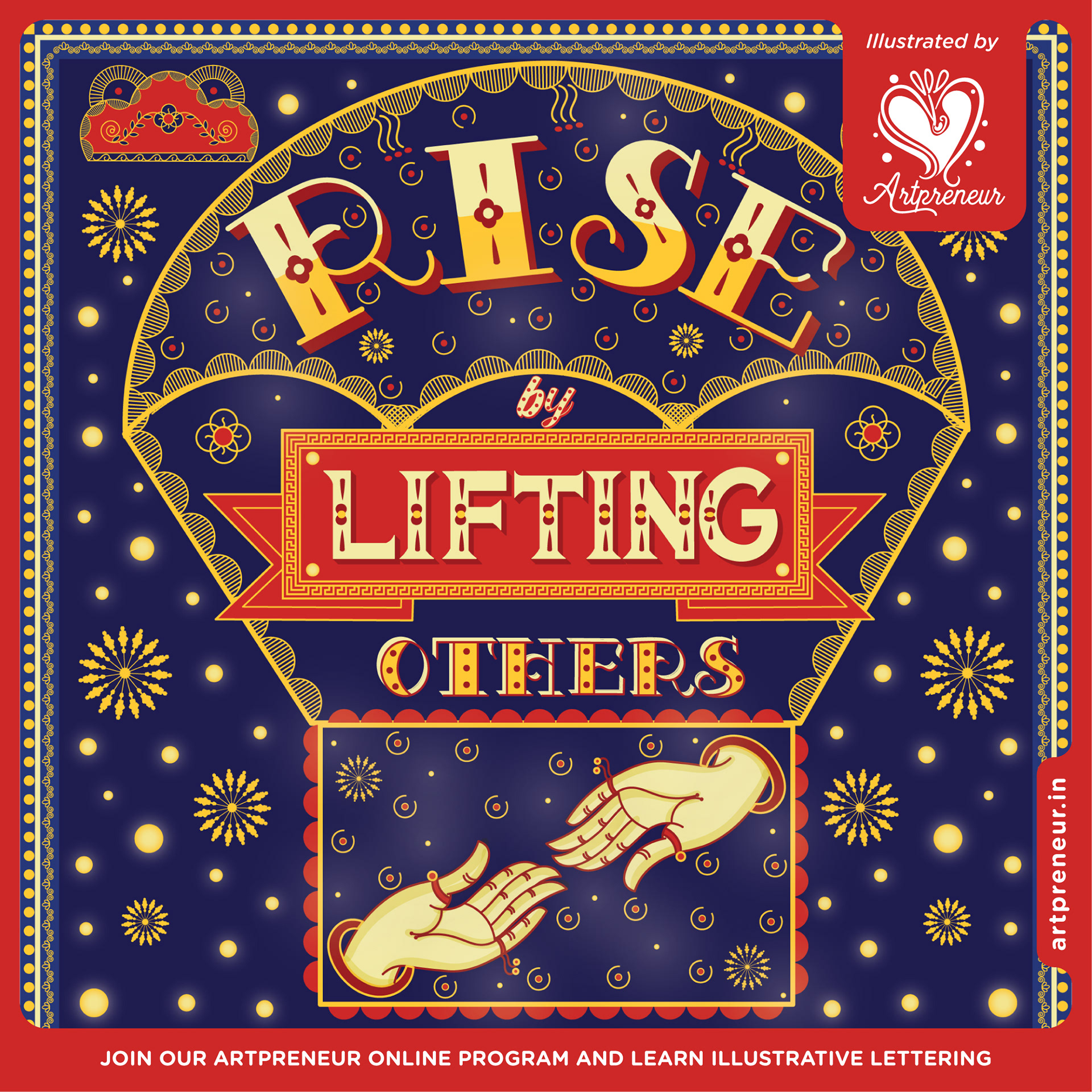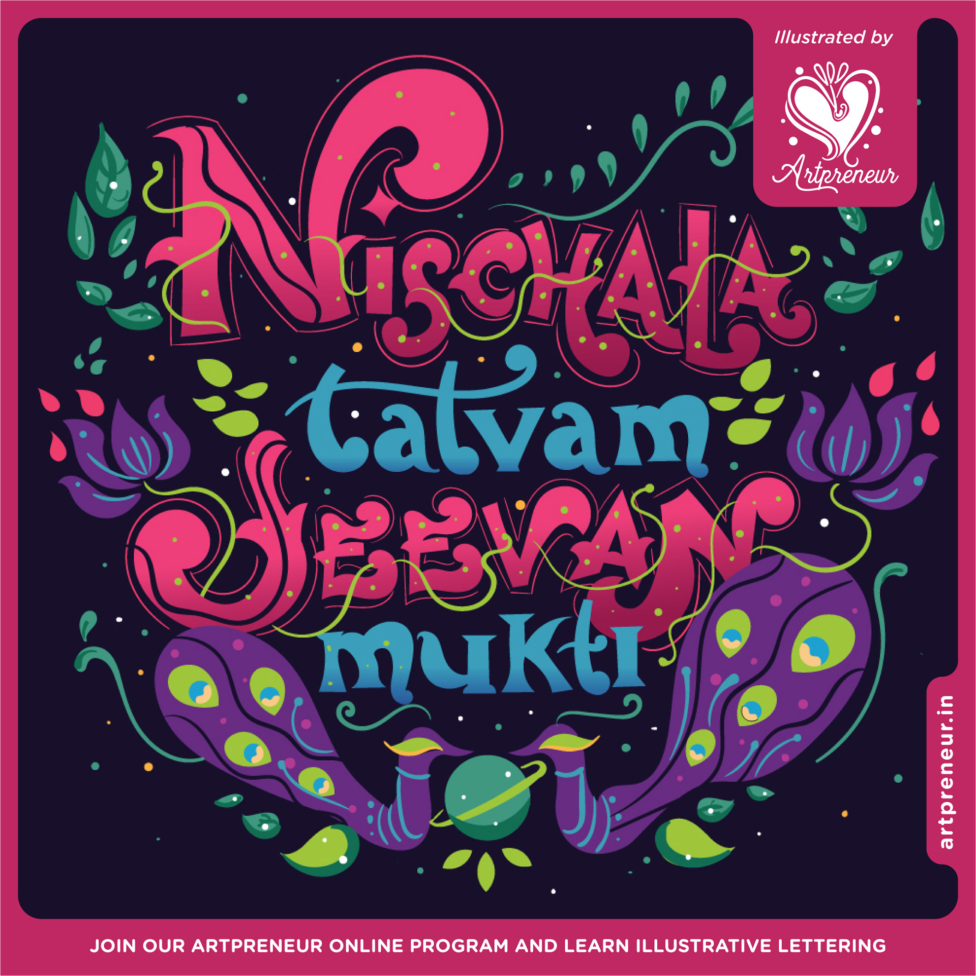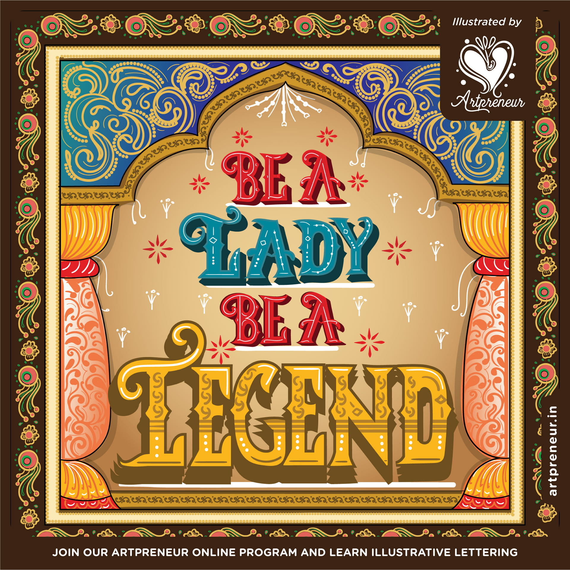 Inspirational quote in Pattachitra inspired lettering