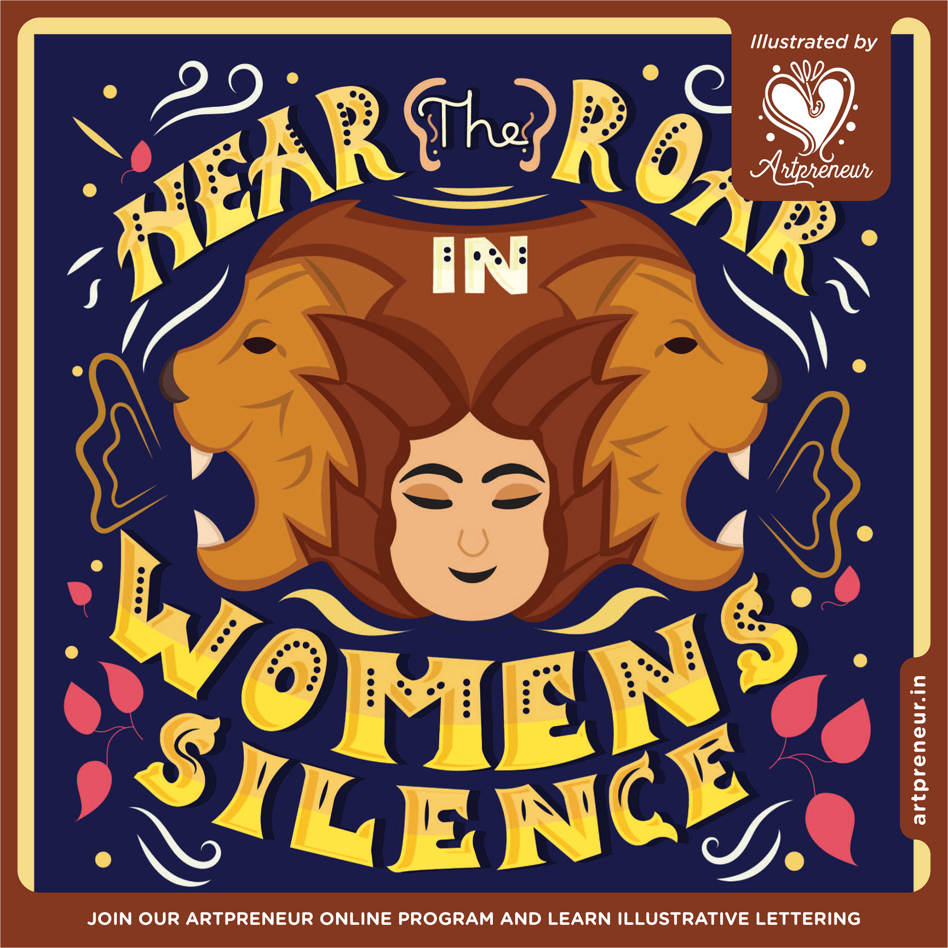 Women empowerment quote lettered in Pattachitra style