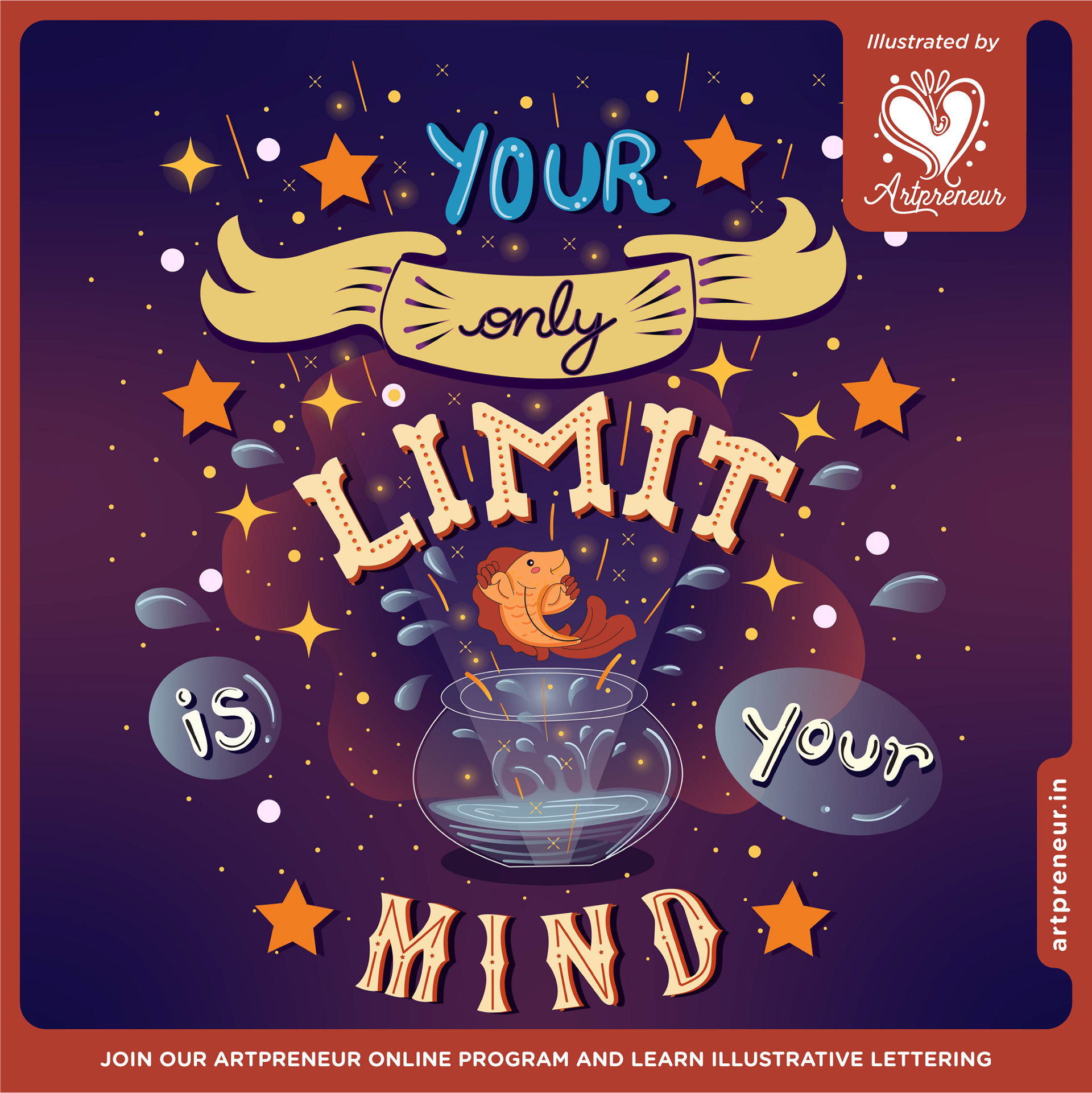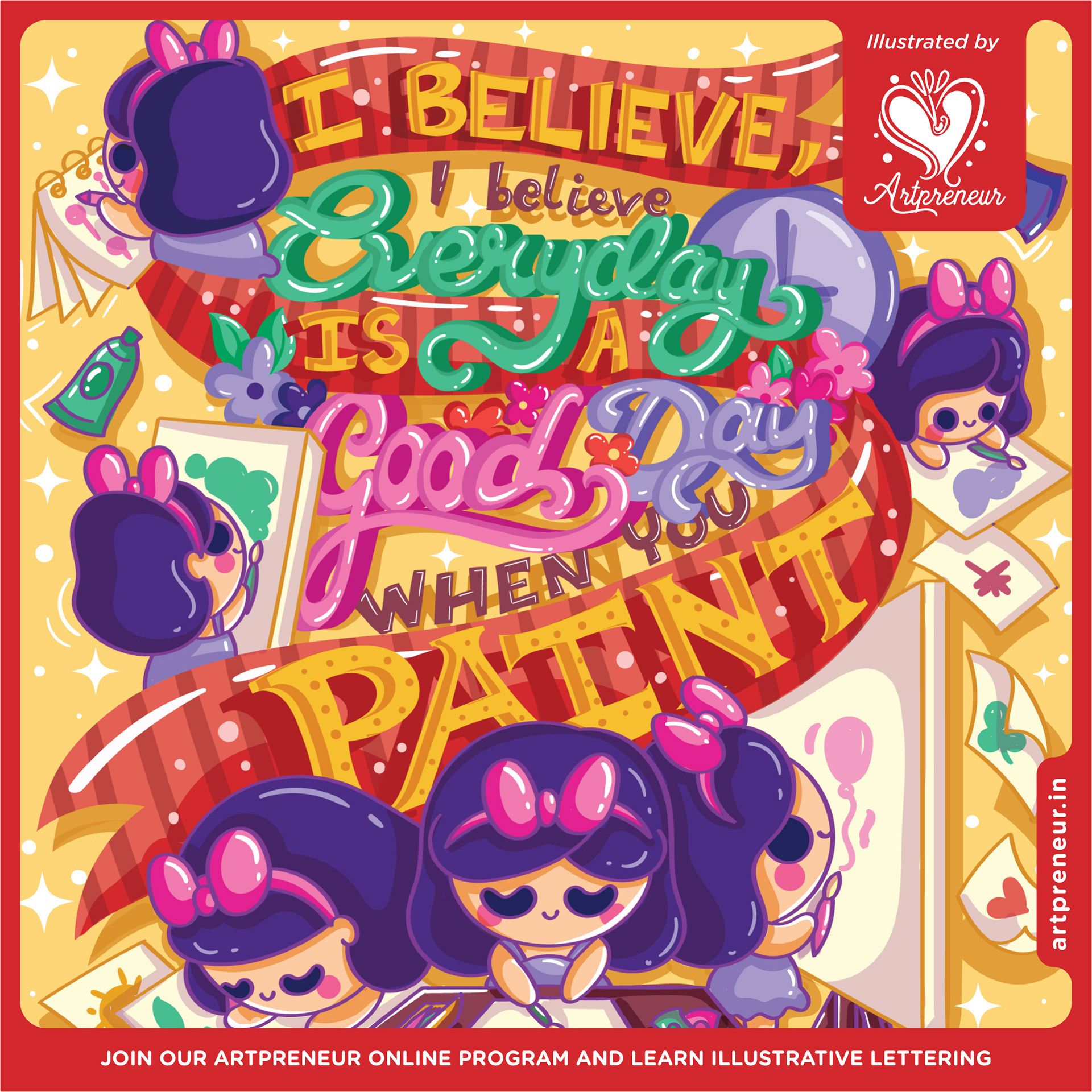 These artworks were created as a result of the Illustrative Lettering module in the Artpreneur Program by the Realm of Dragonflies Students, who do not have any prior knowledge in illustrations or lettering. Whatever you are seeing is an output of 20 days module inside our one year program. The secret recipe of the program helps amateur students to reach lettering mastery in days. Join our program and master art, design and branding.