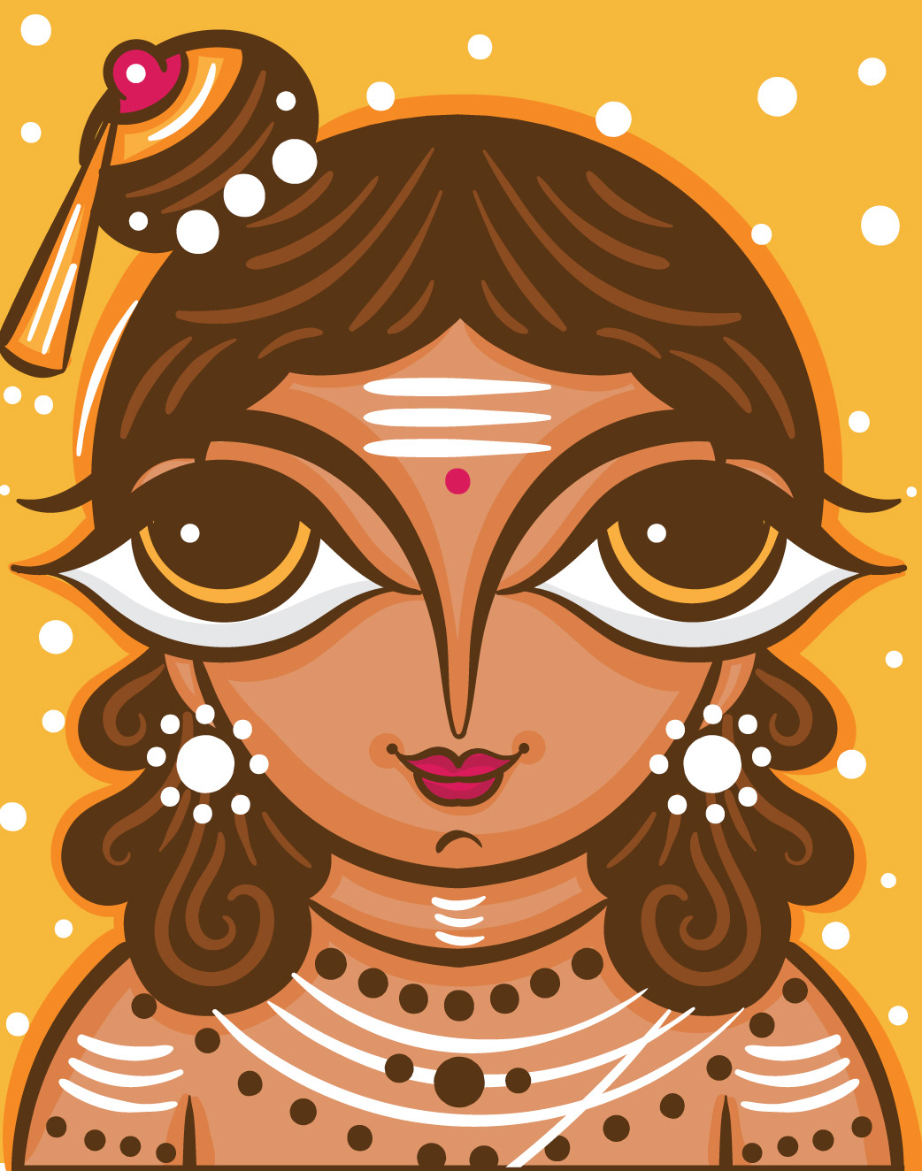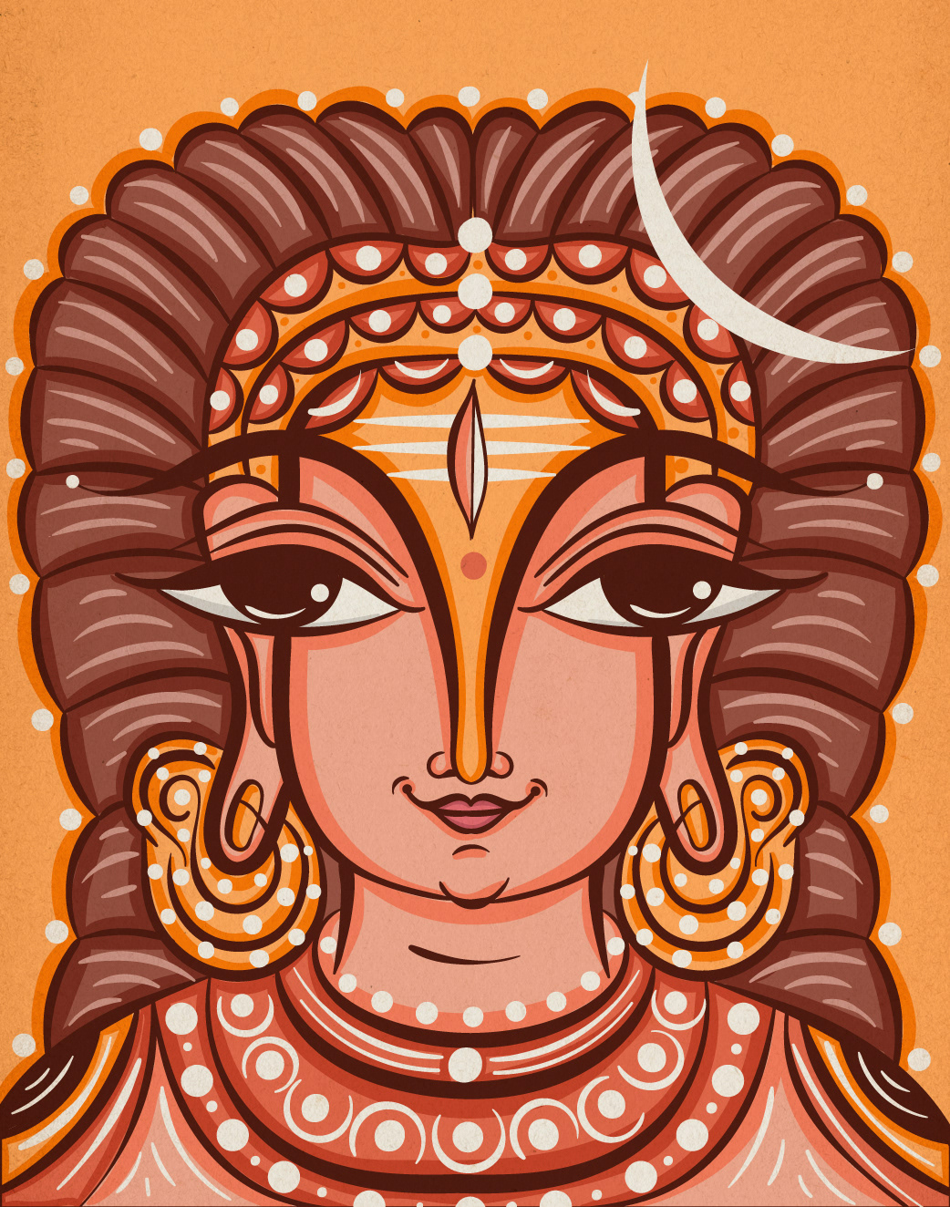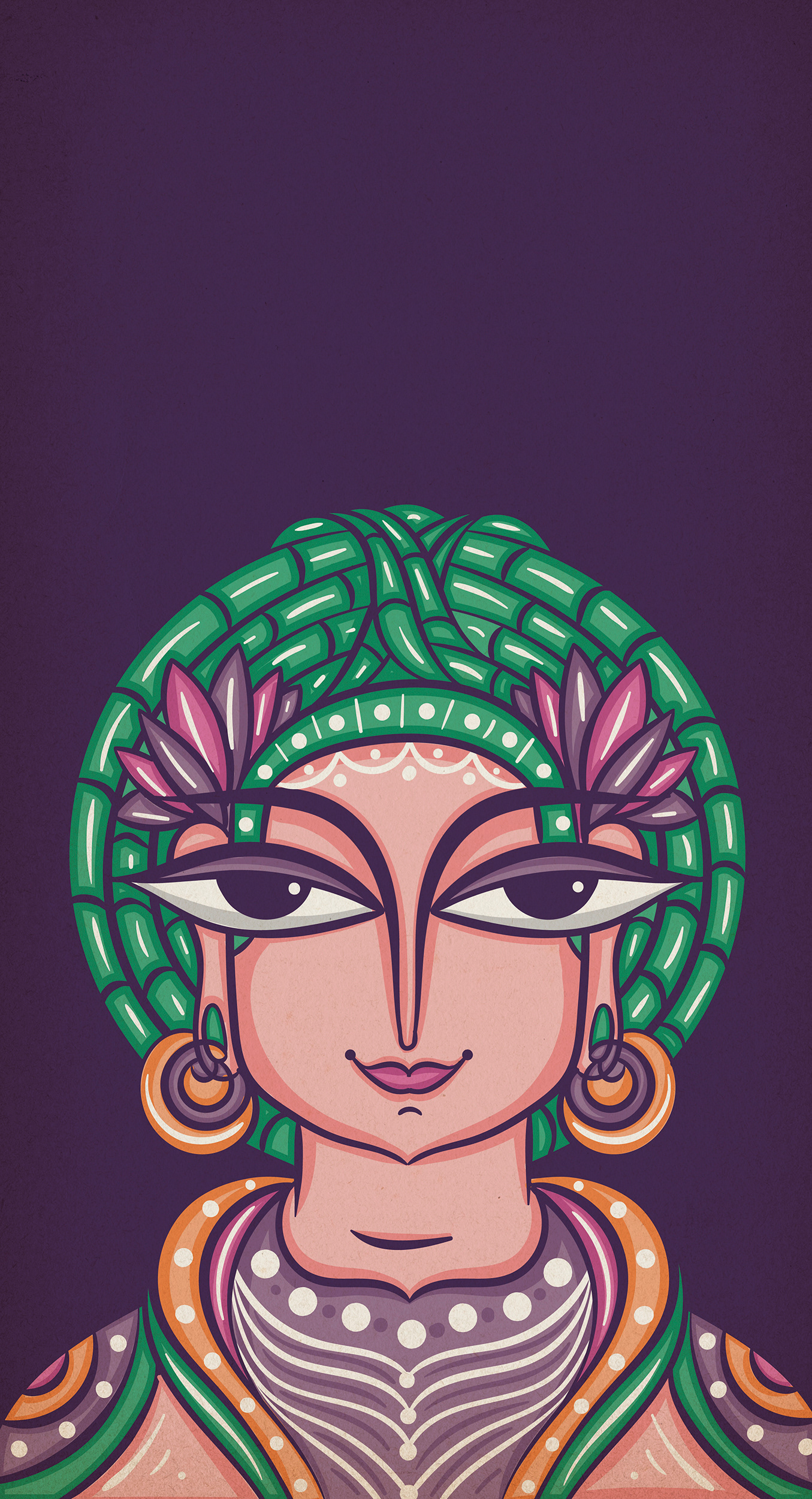 I am delighted to have the opportunity to showcase my Neo Bengal Folk Art Portraits with you. My artistic journey began with the desire to explore Bengal Folk Art Faces in a contemporary style. I started with rough pencil sketches in my sketchbook, and after seeing their potential, I experimented with ink brush strokes. Eventually, I digitized the illustrations using Adobe Illustrator and shared them on my social media platform, Instagram. The positive response from my audience has been truly inspiring and encouraged me to create a series of evolved illustrations.