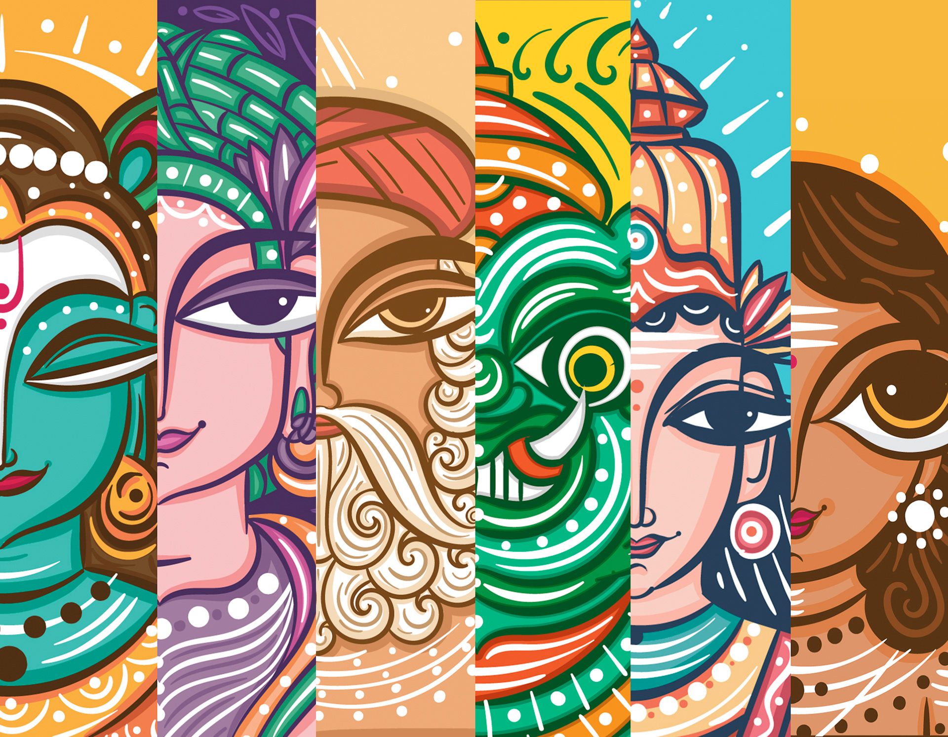 Neo Bengal Folk Art Male Portraits Exploration