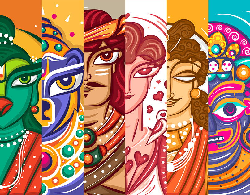 Introducing Neo Bengal Folk Art - a modern take on Bengal Pattachitra, inspired by Jamini Roy's work. My Illustrations feature thick and thin outlines, vivid colors, and intricate motifs. I aim to bridge the gap between the old and new, honouring our cultural heritage and pushing the boundaries of creativity.