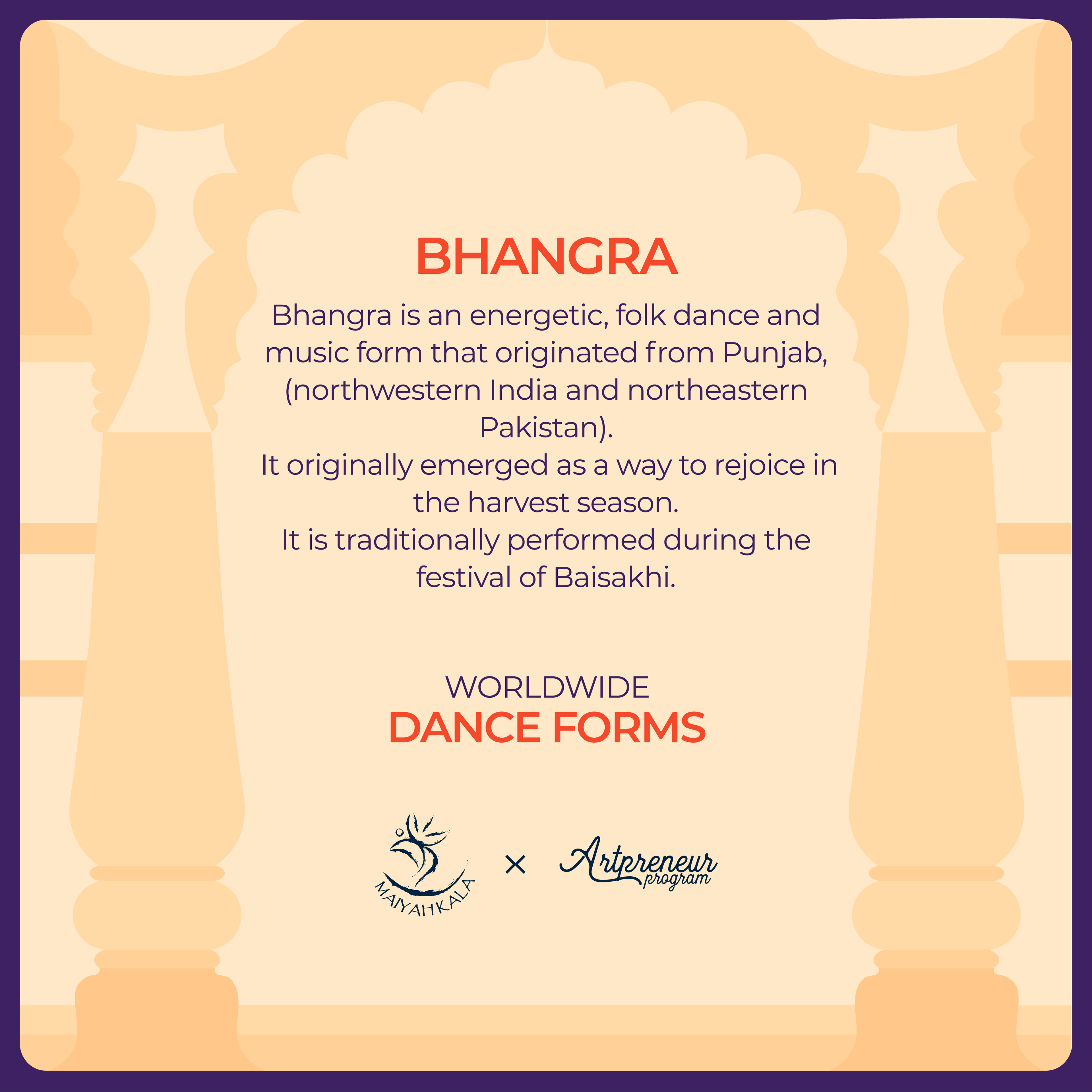 "Bhangra" is an energetic, folk dance and music form that originated from Punjab, (northwestern India and northeastern Pakistan).