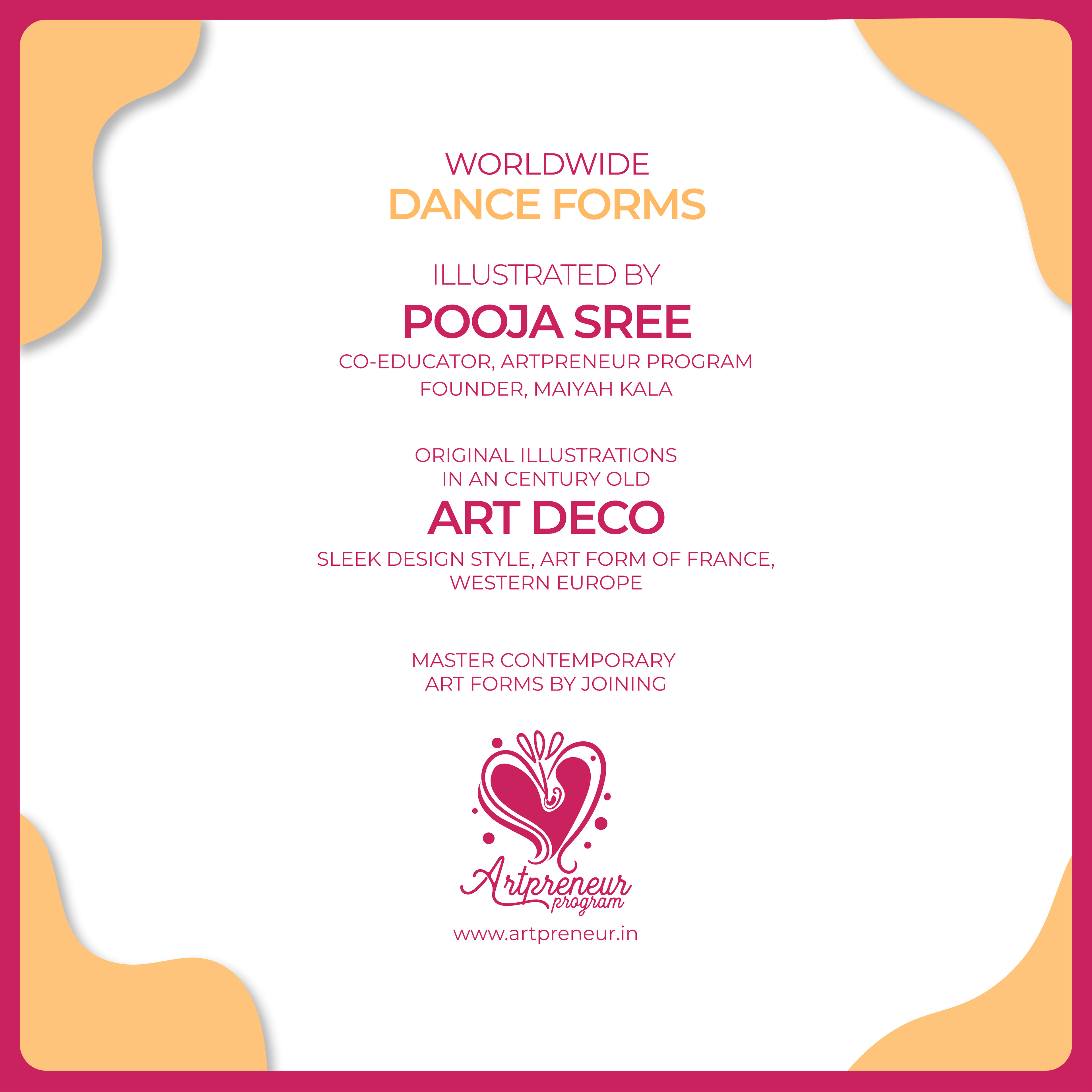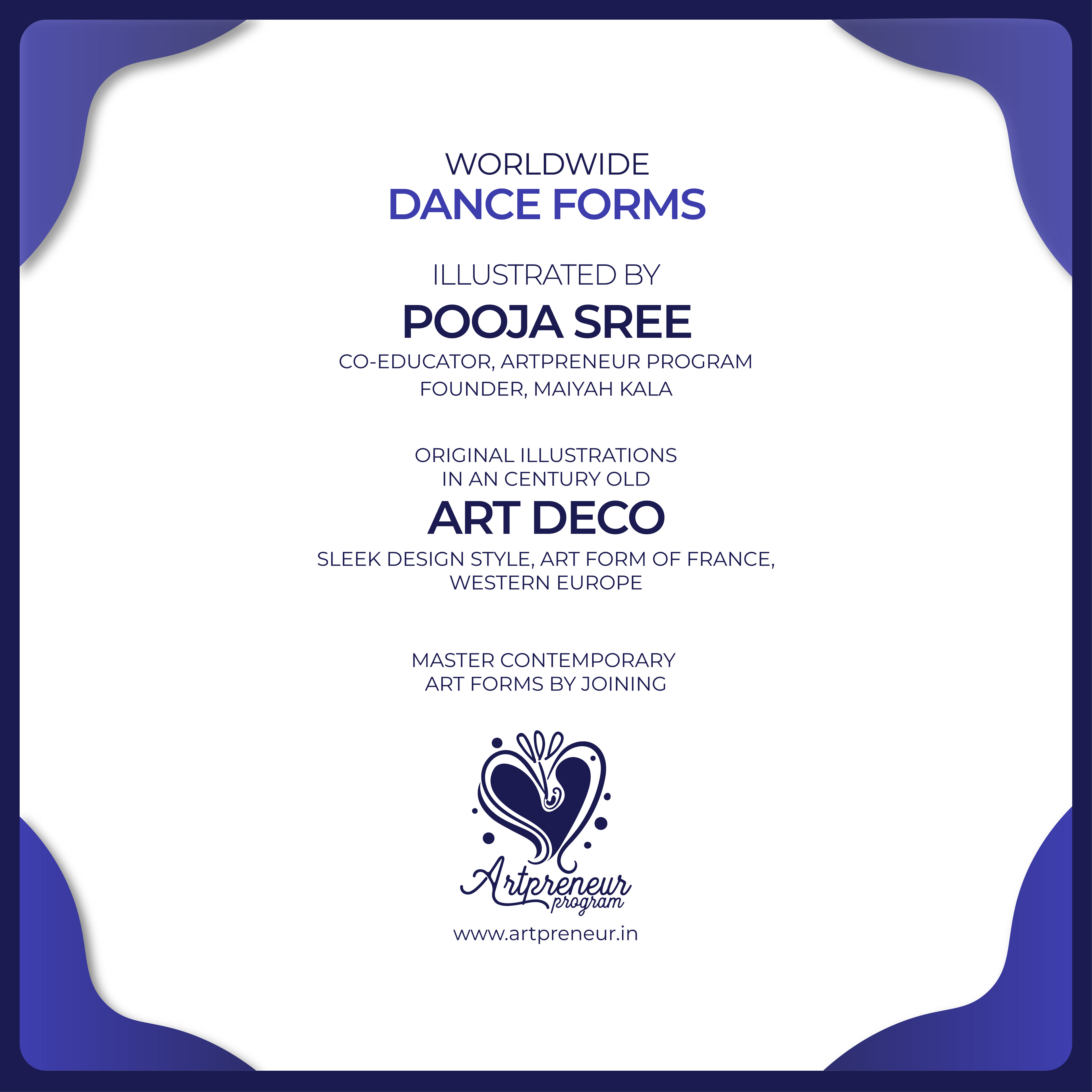 Because, Dance being the most powerful forms of human expression & has always been a means of deep communication between one another and these set of illustrations in Art Deco style are intended to reflect the dynamism of dance and the aesthetics of the artform itself, as it is one of the most prevalent Art style in the world.