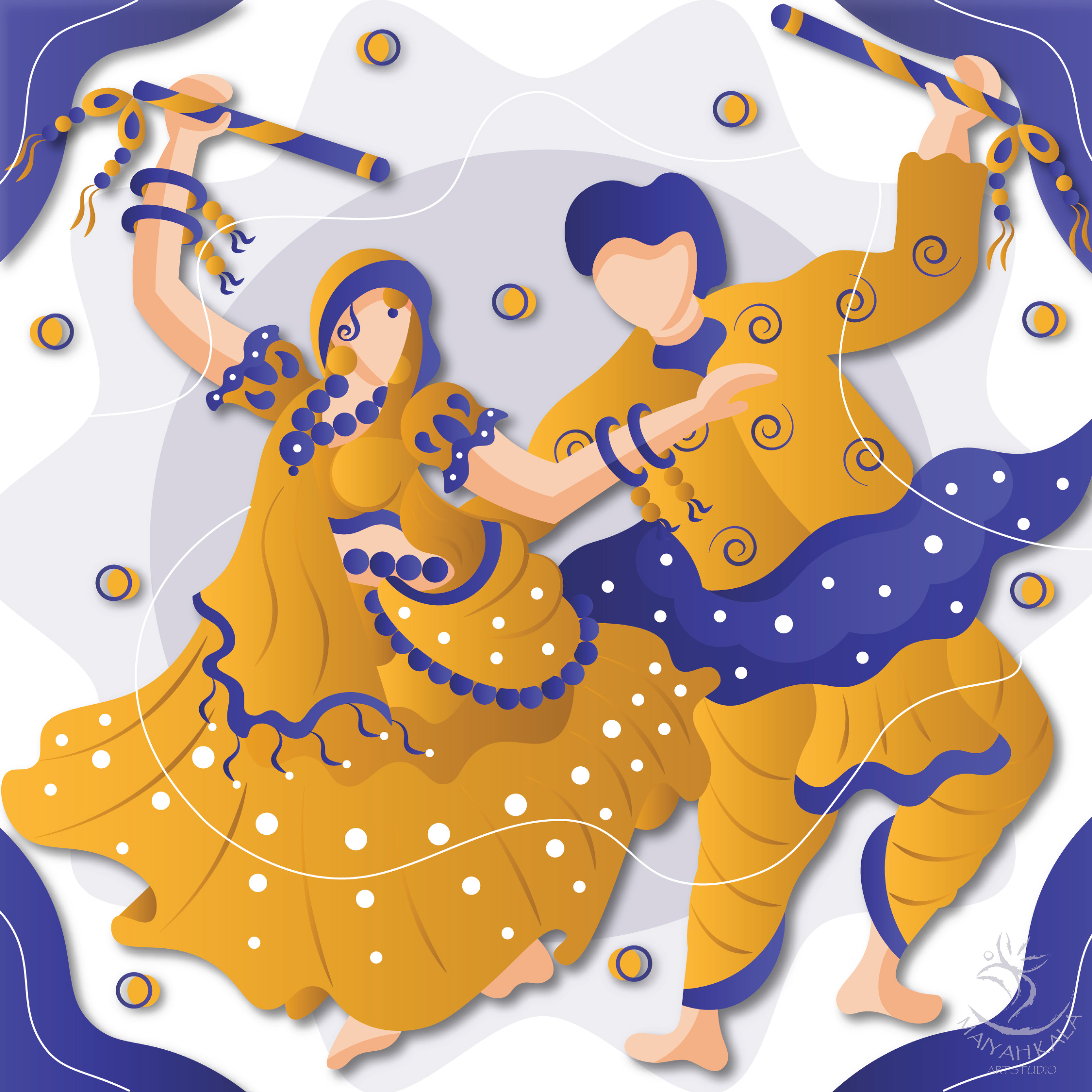 'Dandiya Raas' or 'Raas' is the socio-religious folk dance originating from Indian state of Gujarat and popularly performed in the festival of Navaratri in the honor of goddess Durga.
