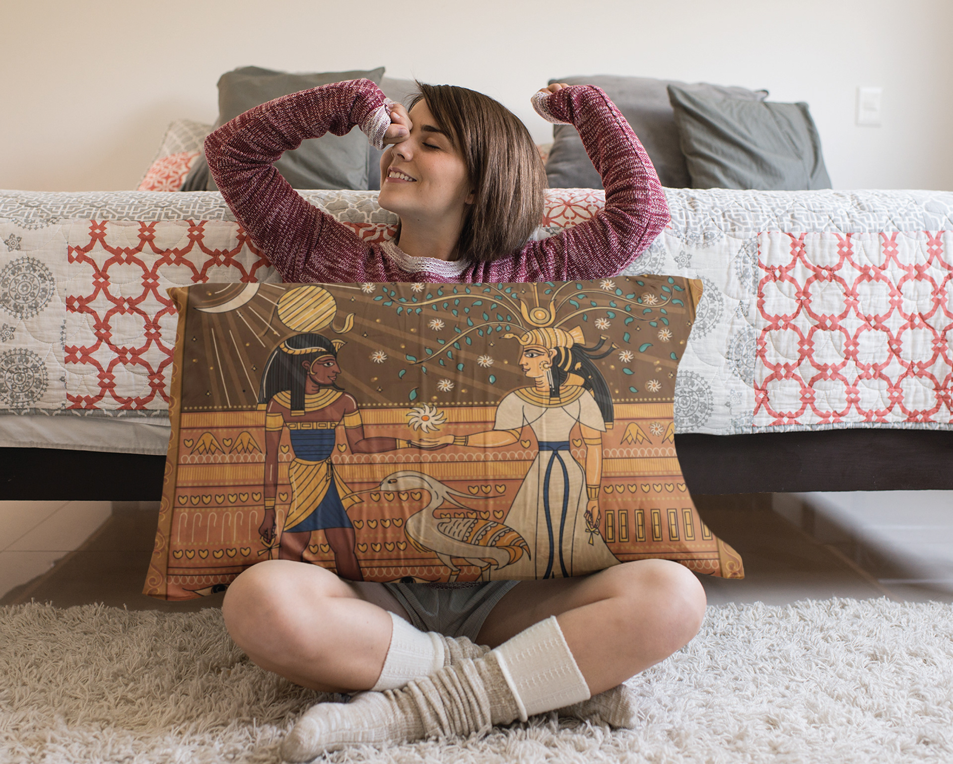 Presenting the captivating Parijat tree, a magnificent symbol of enduring love. This artwork delves into the profound nature of love, illustrating the delicate balance of attachment and detachment in the Egyptian art style.