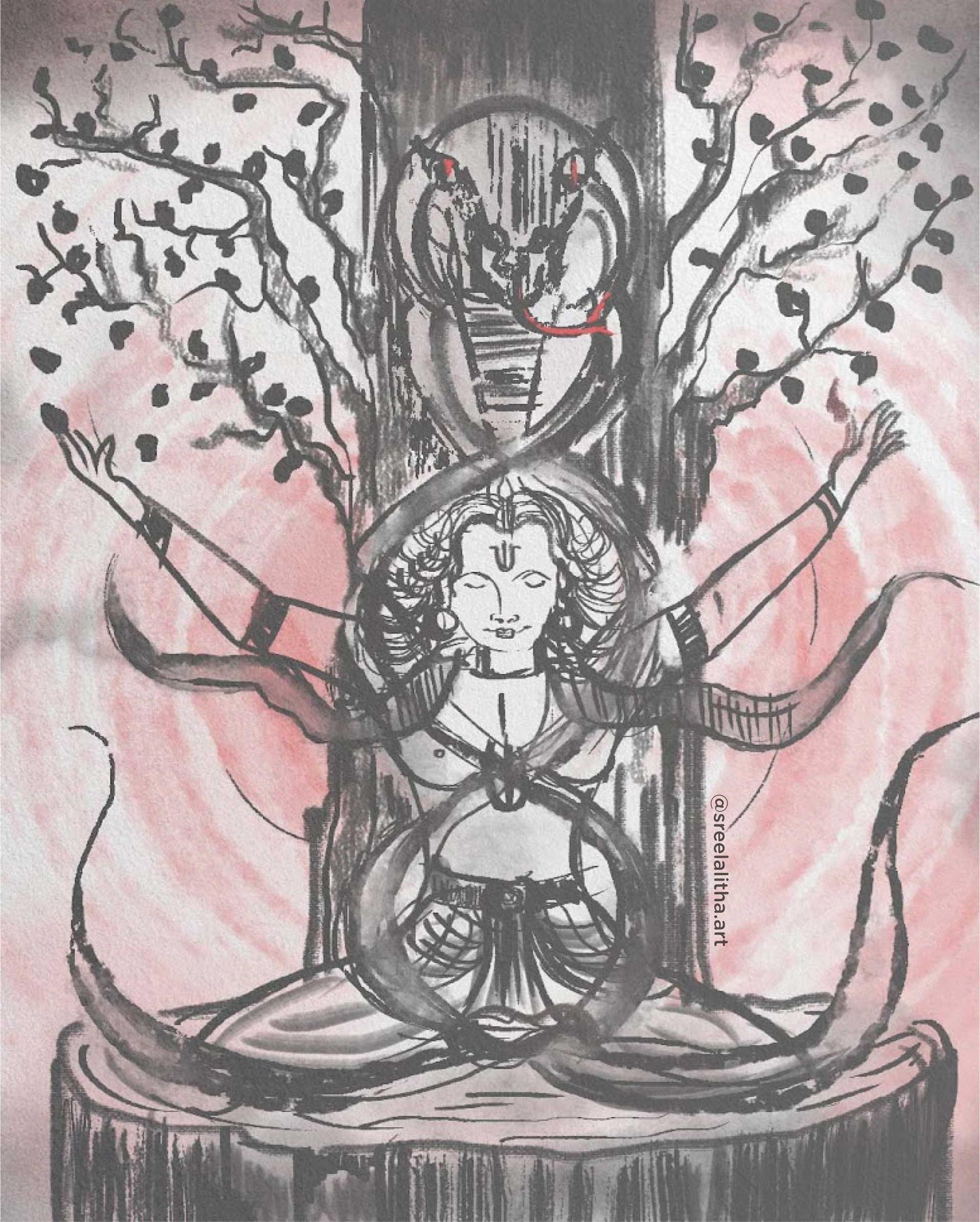 Capturing Sandalwood's essence and purity, drawing inspiration from Prahaladha's story, despite demon lineage, he was a to Hari Bhakt. This artwork beautifully encapsulates the profound truth that one can stay true to themselves, even in the face of challenging situations, just like Sandalwood's undaunted scent, spreading its purity amidst the surroundings.