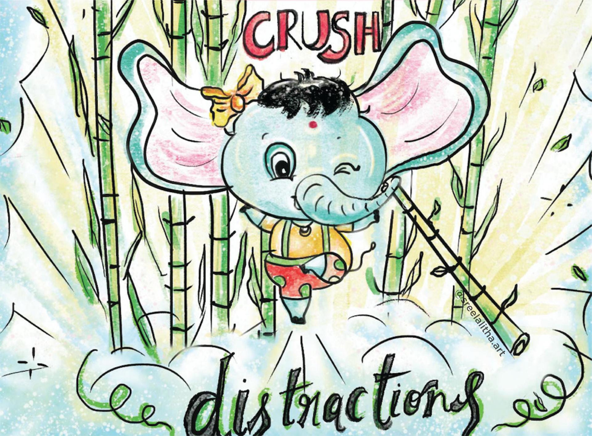 A captivating portrayal of a bamboo tree and an inspiring elephant story done in watercolour painting style. This artwork mirrors the profound lesson: a resolute path guides us to goals, akin to the unwavering bamboo.