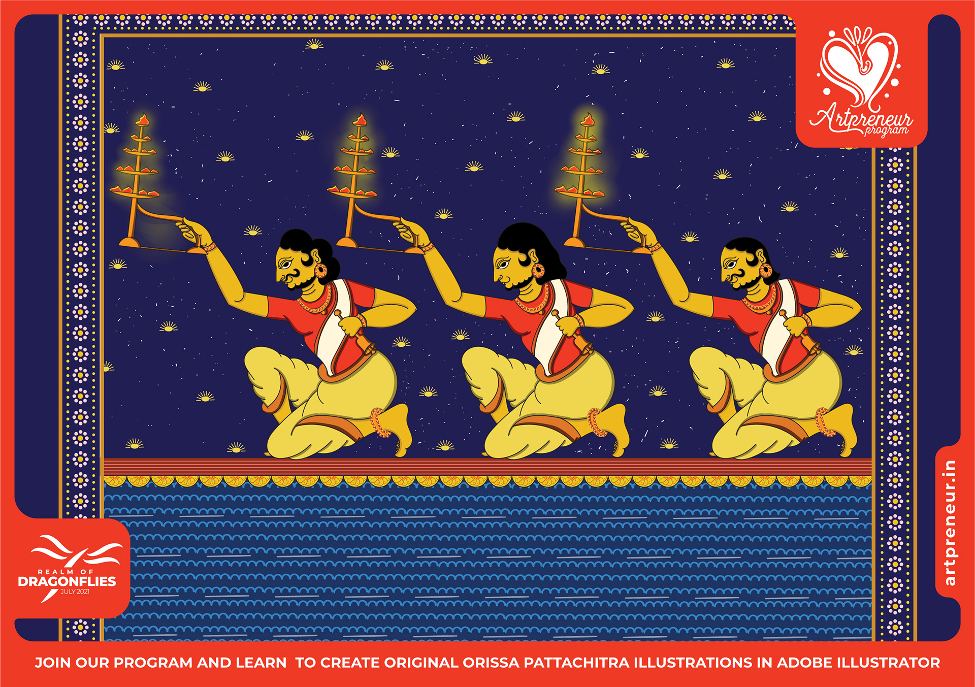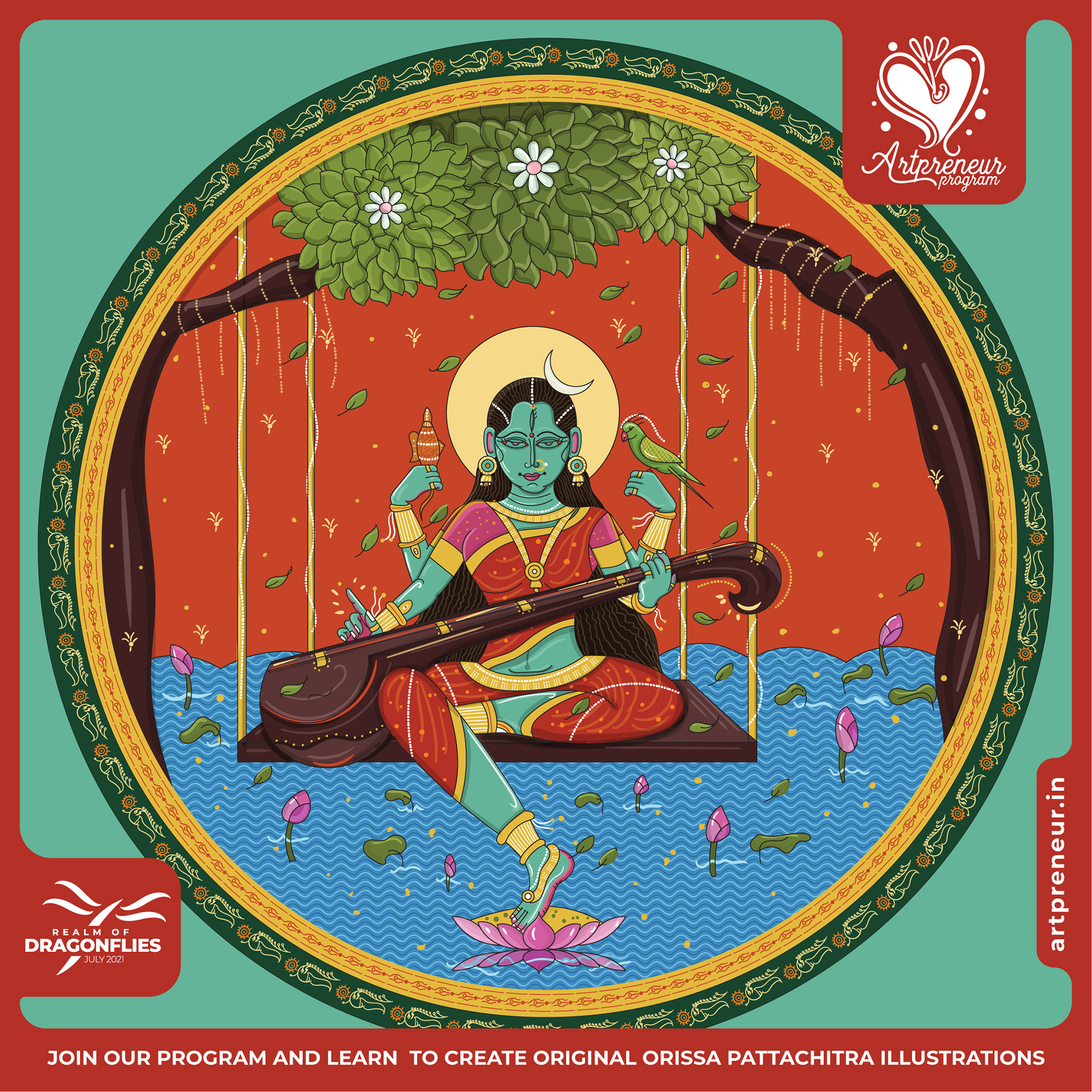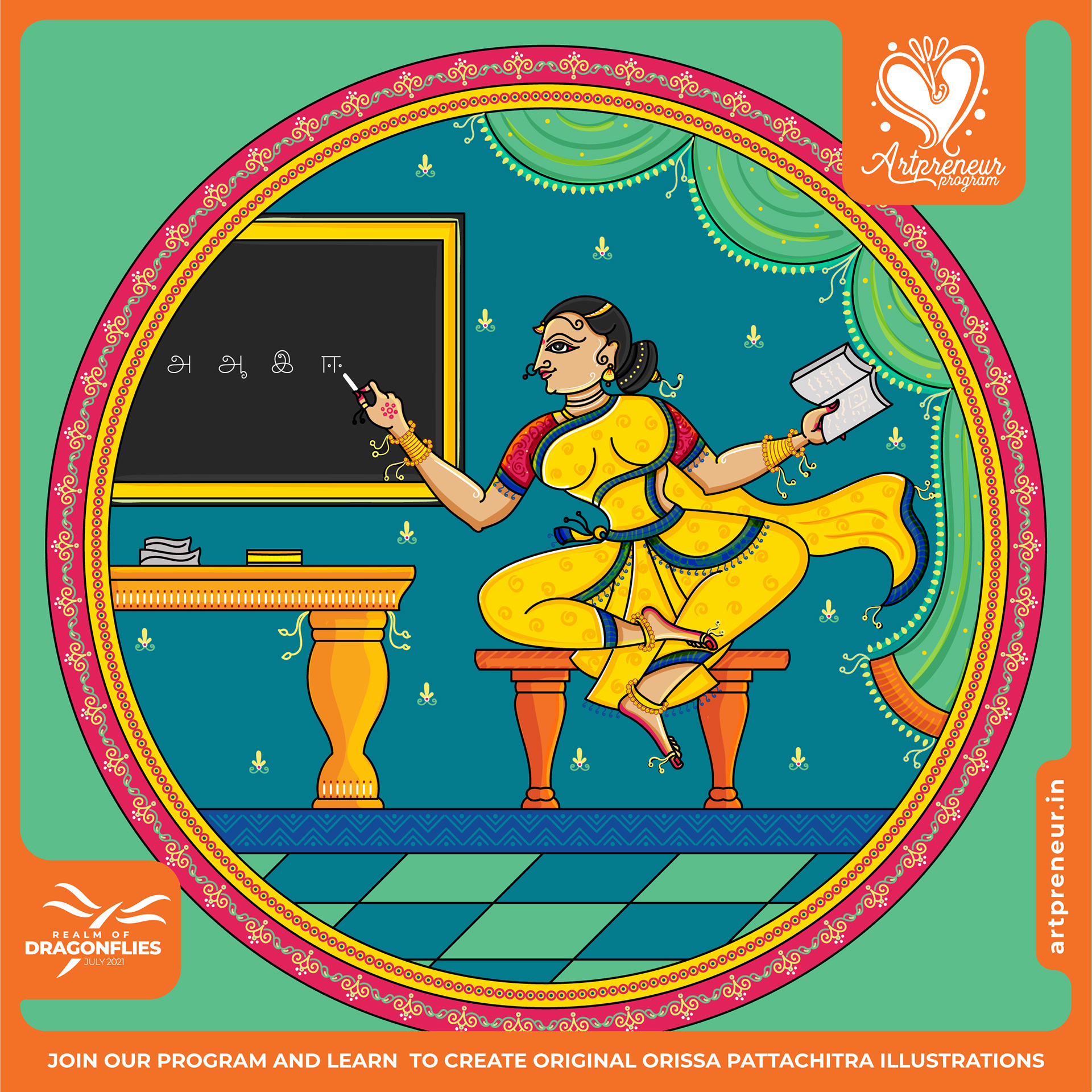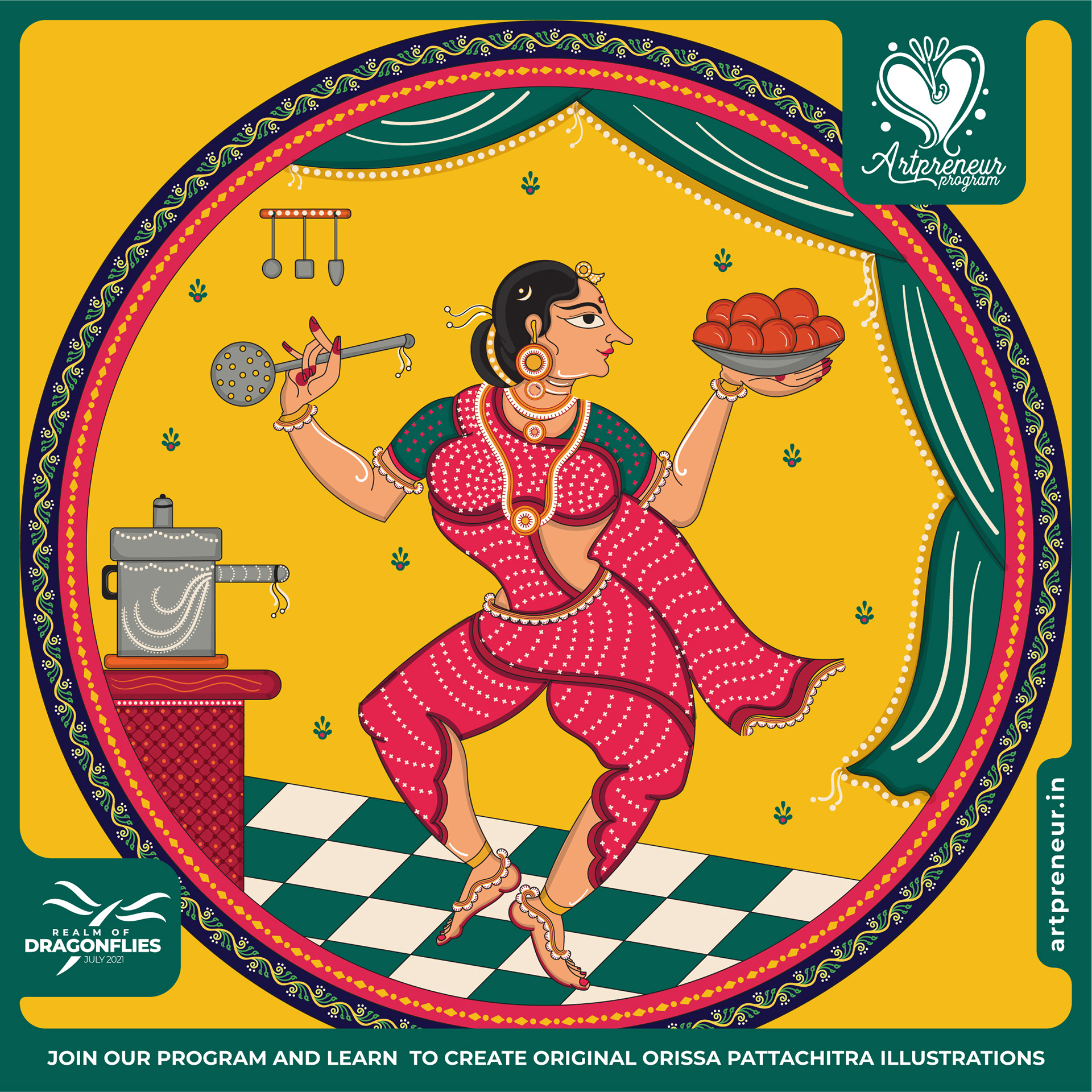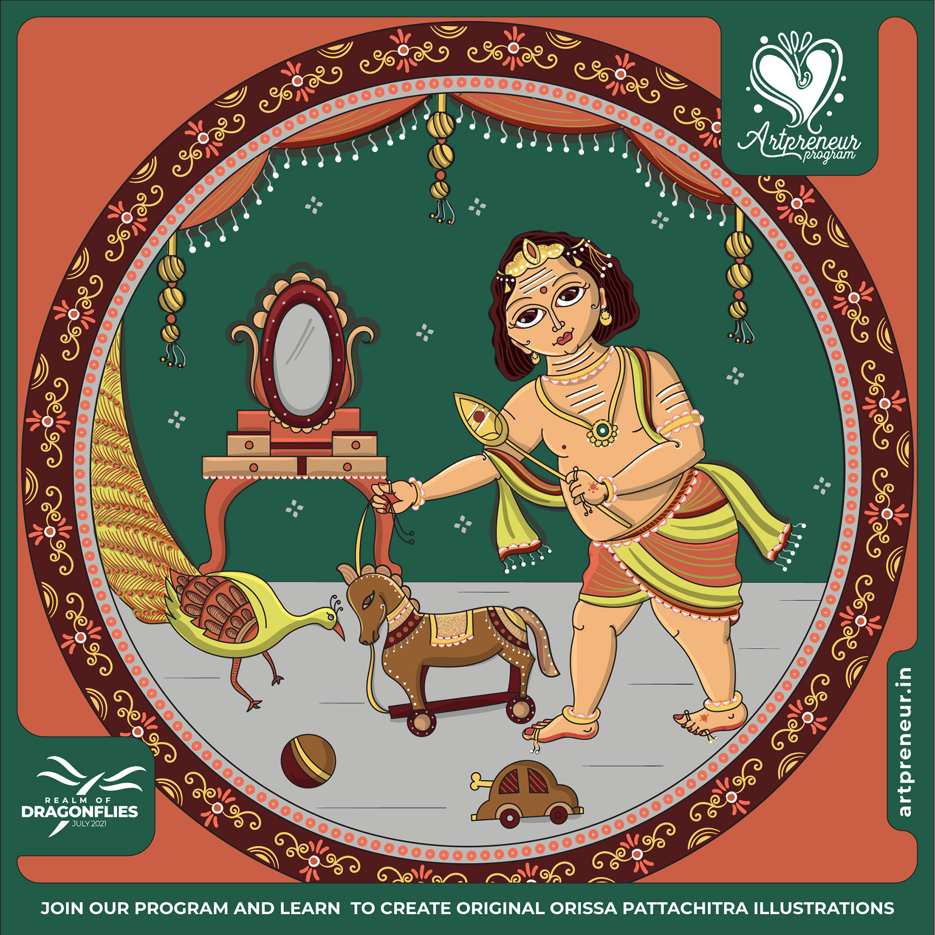 The Orissa Pattachitra Illustrations, Doodles and Sketches are done by the Realm of Dragonflies Batch students of Artpreneur Online Program. They have not had any prior experience and knowledge in illustrations or folk art forms.