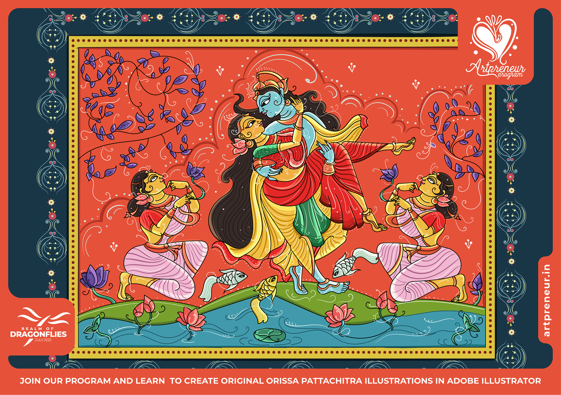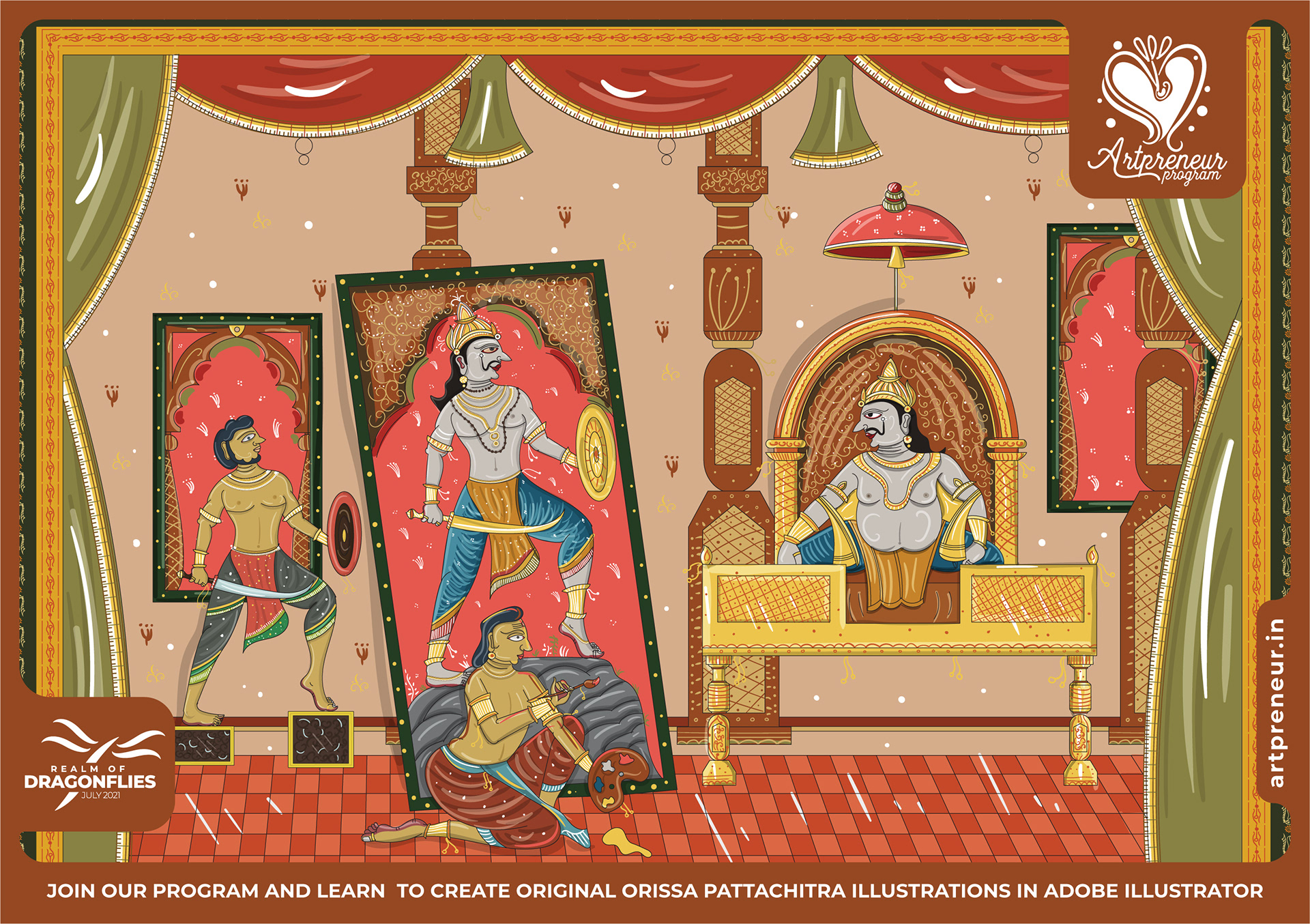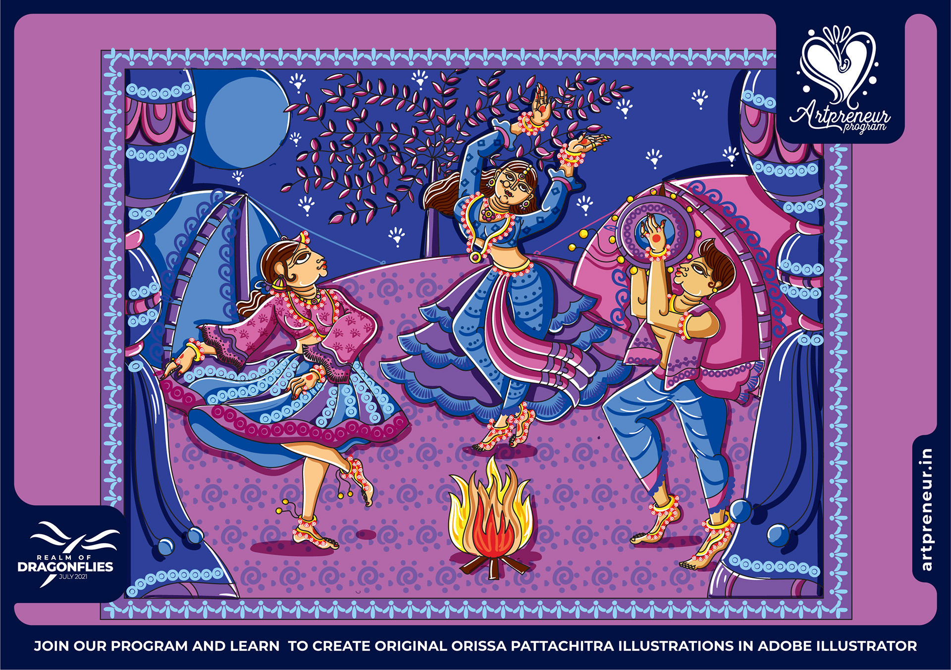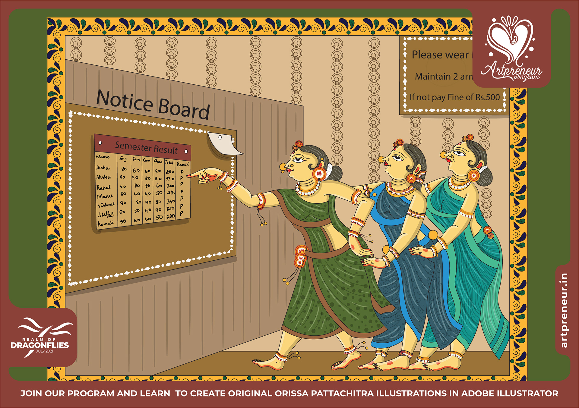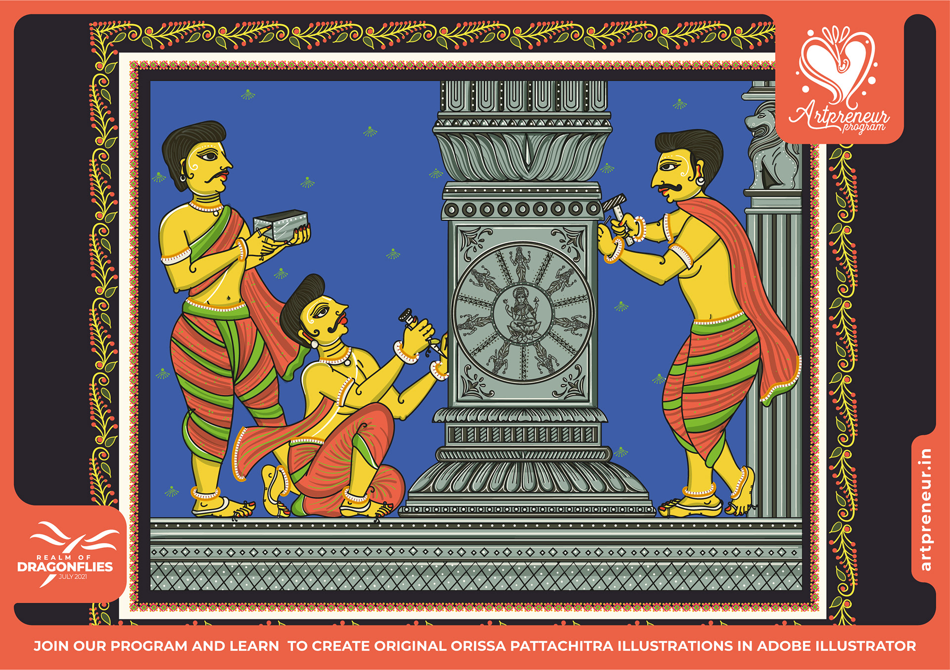 The Orissa Pattachitra Illustrations, Doodles and Sketches are done by the Realm of Dragonflies Batch students of Artpreneur Online Program. They have not had any prior experience and knowledge in illustrations or folk art forms.