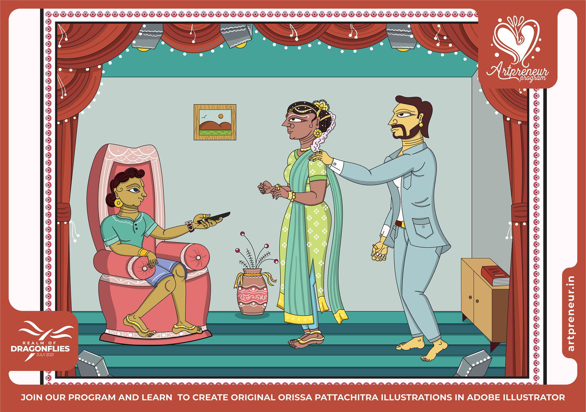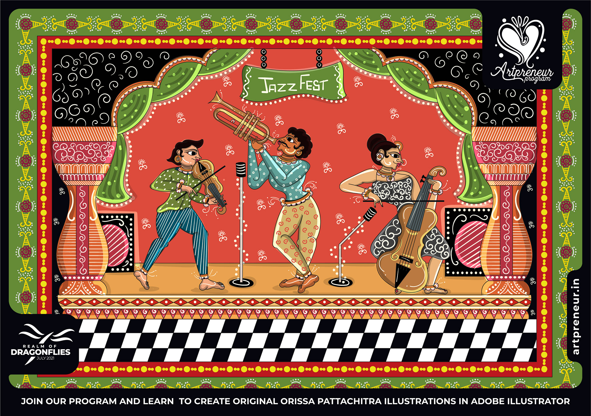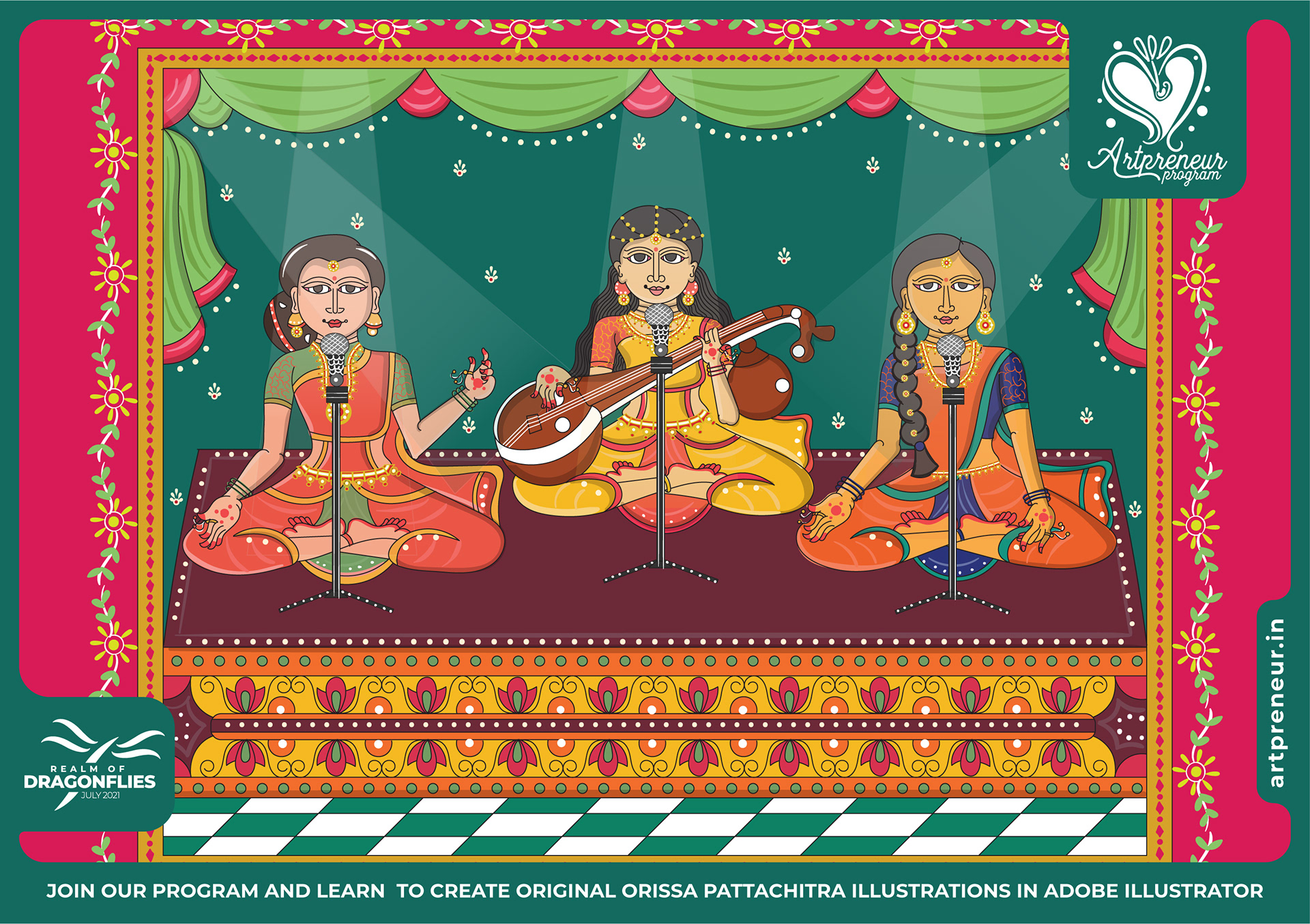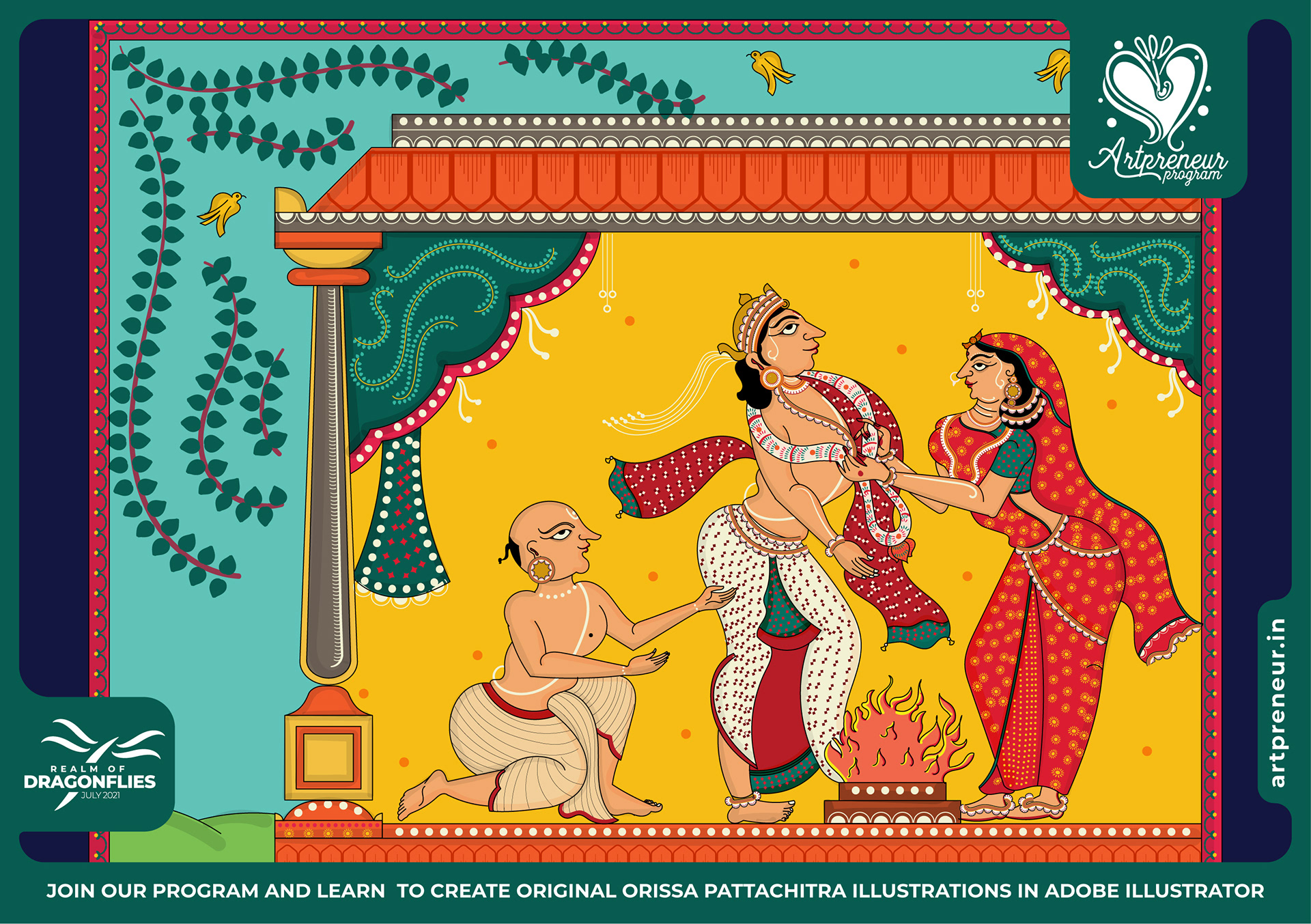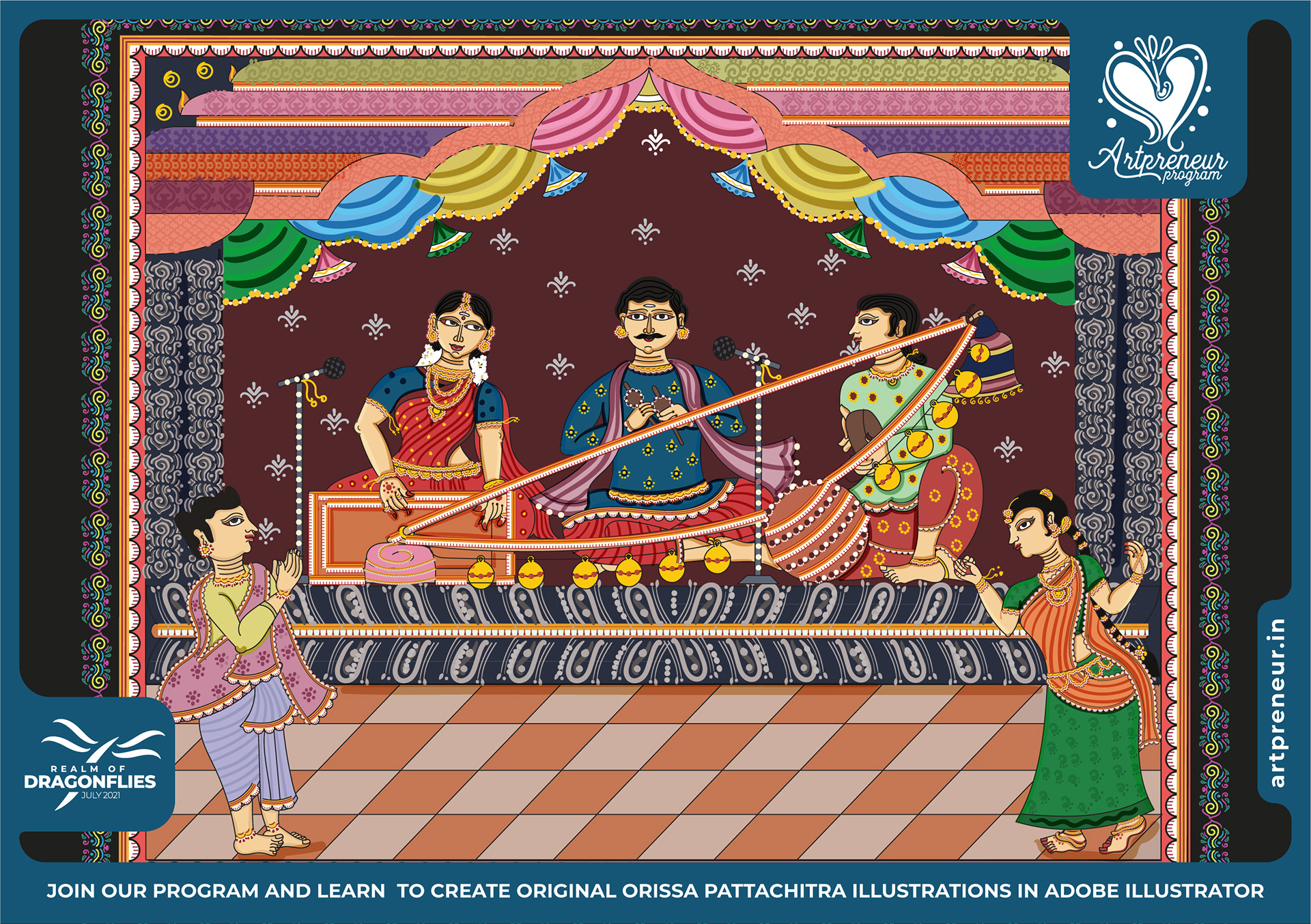 The Orissa Pattachitra Illustrations, Doodles and Sketches are done by the Realm of Dragonflies Batch students of Artpreneur Online Program. They have not had any prior experience and knowledge in illustrations or folk art forms.