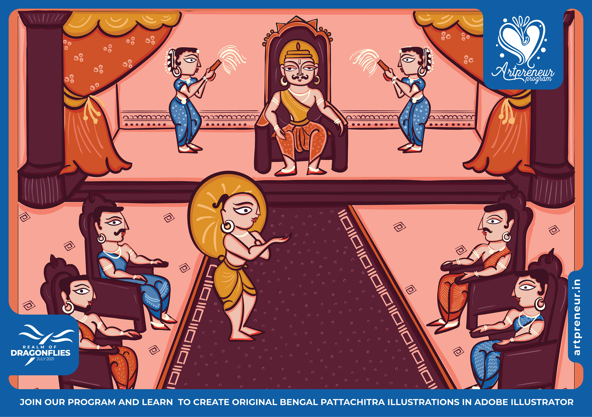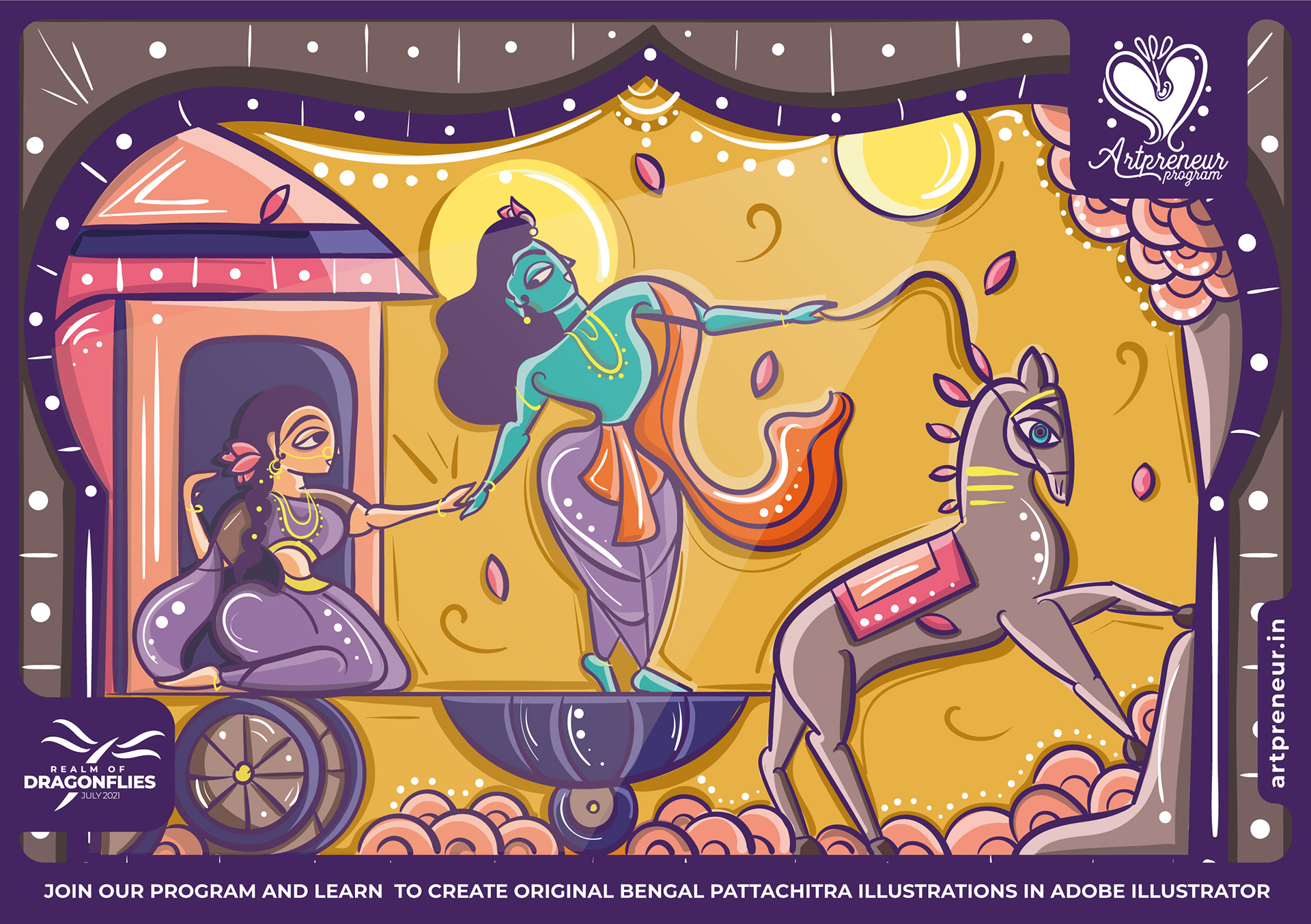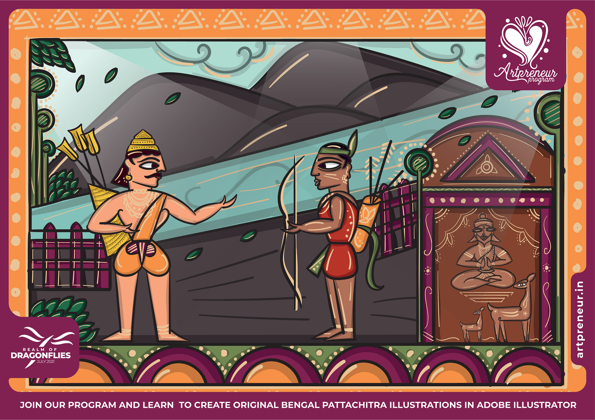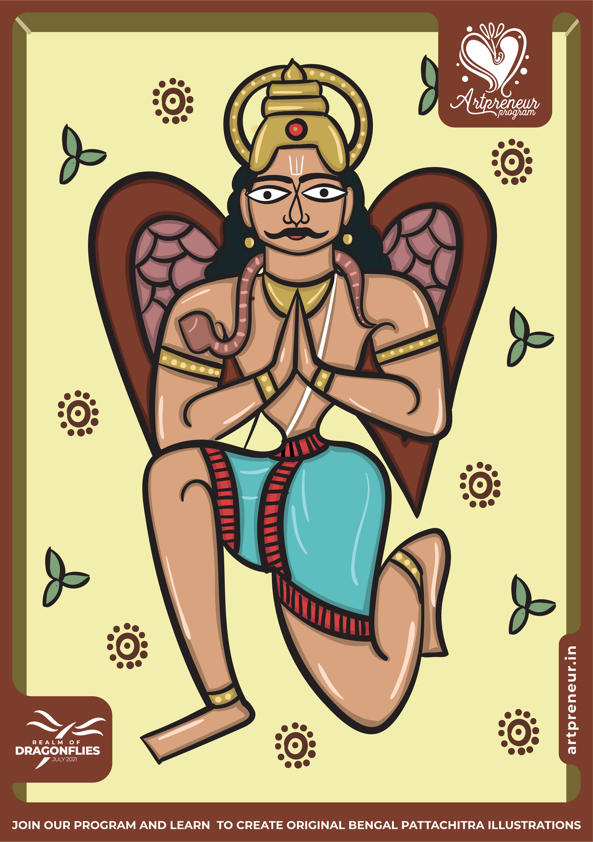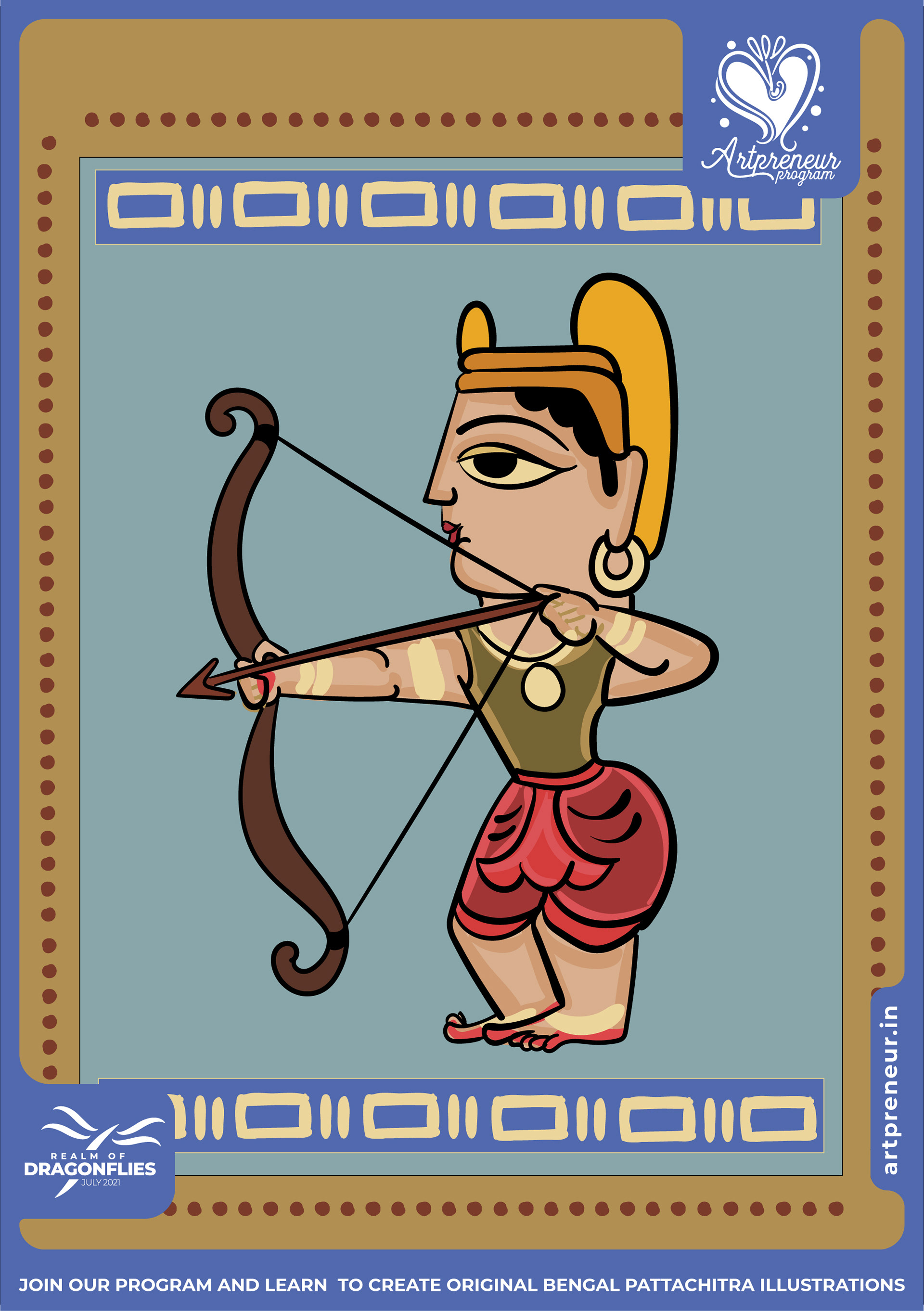 The Bengal Pattachitra Illustrations, Doodles and Sketches are done by the Realm of Dragonflies Batch students of Artpreneur Online Program. They have not had any prior experience and knowledge in illustrations or folk art forms.