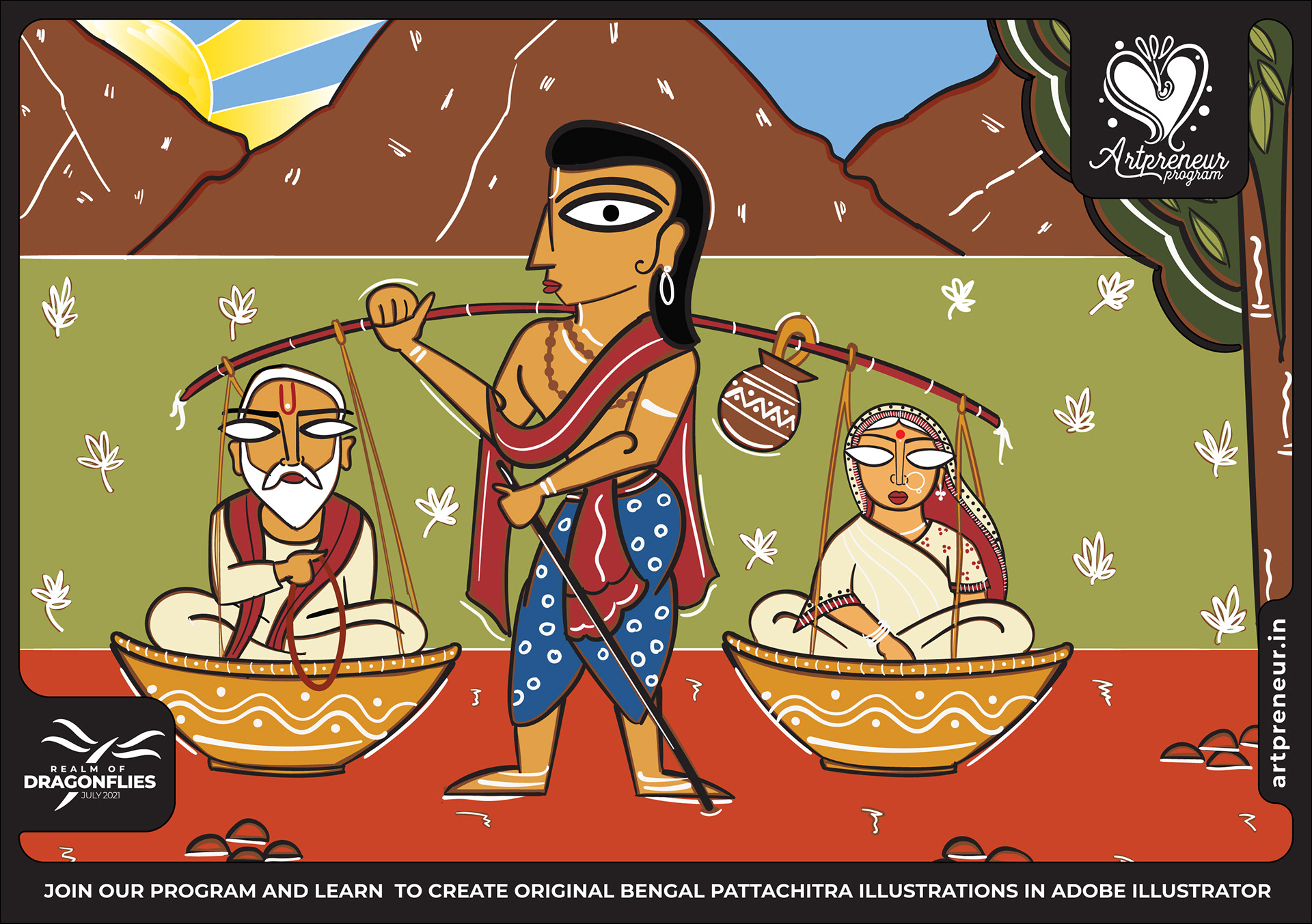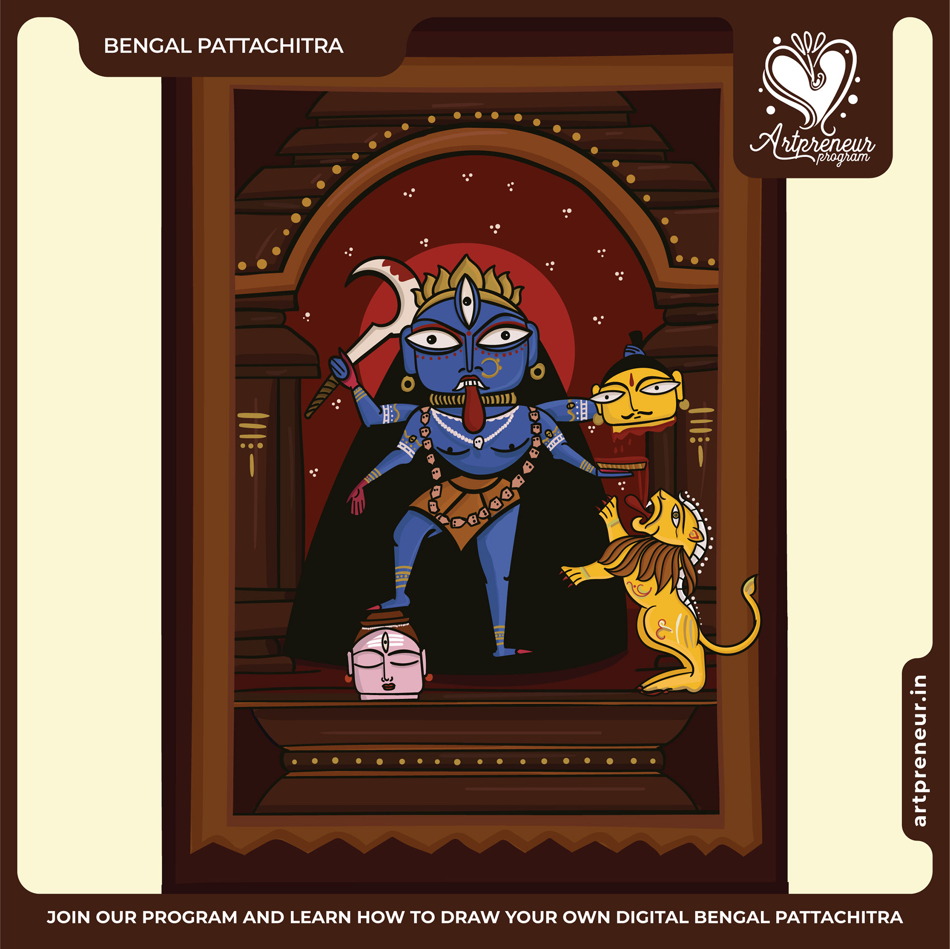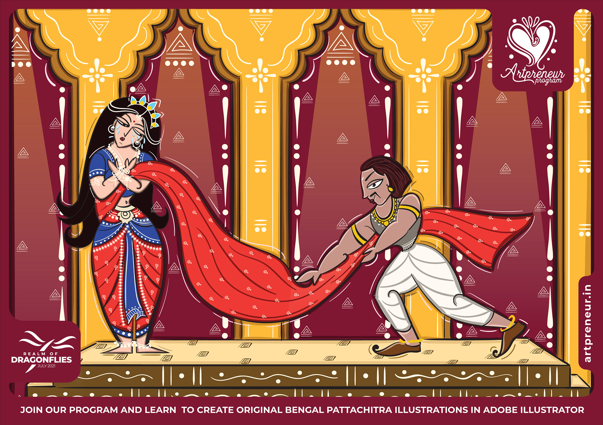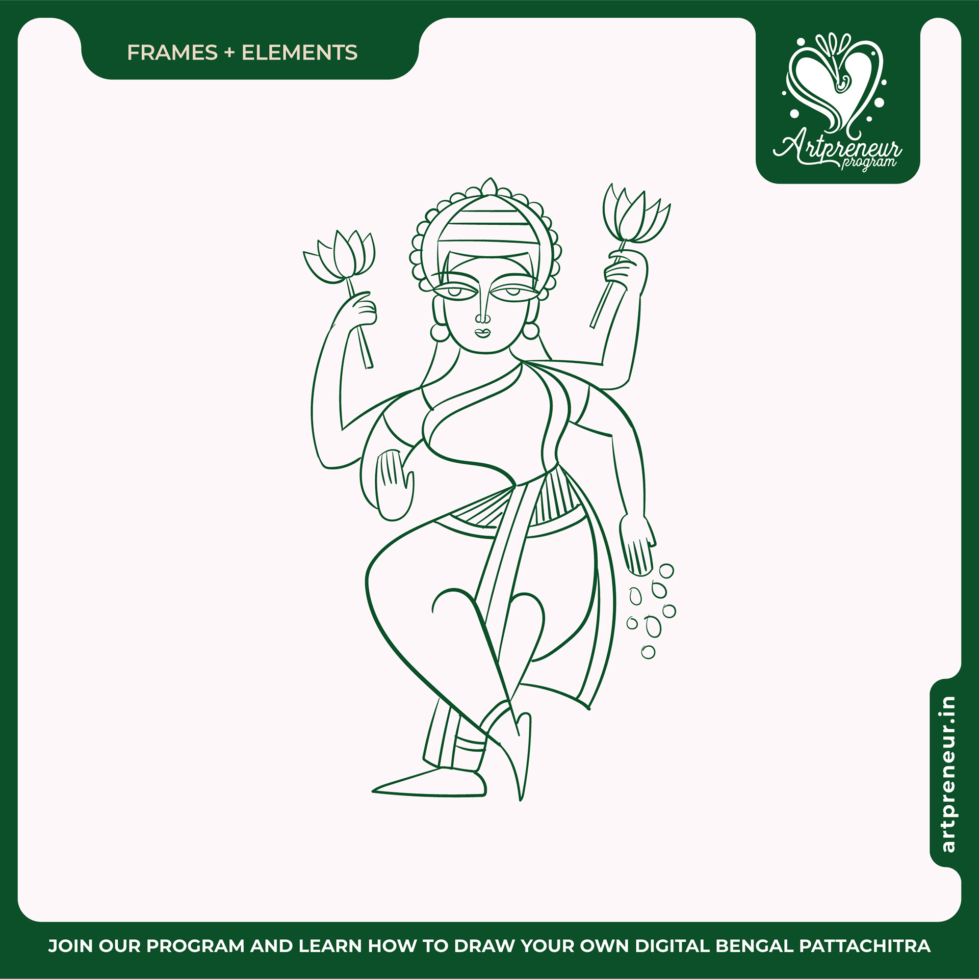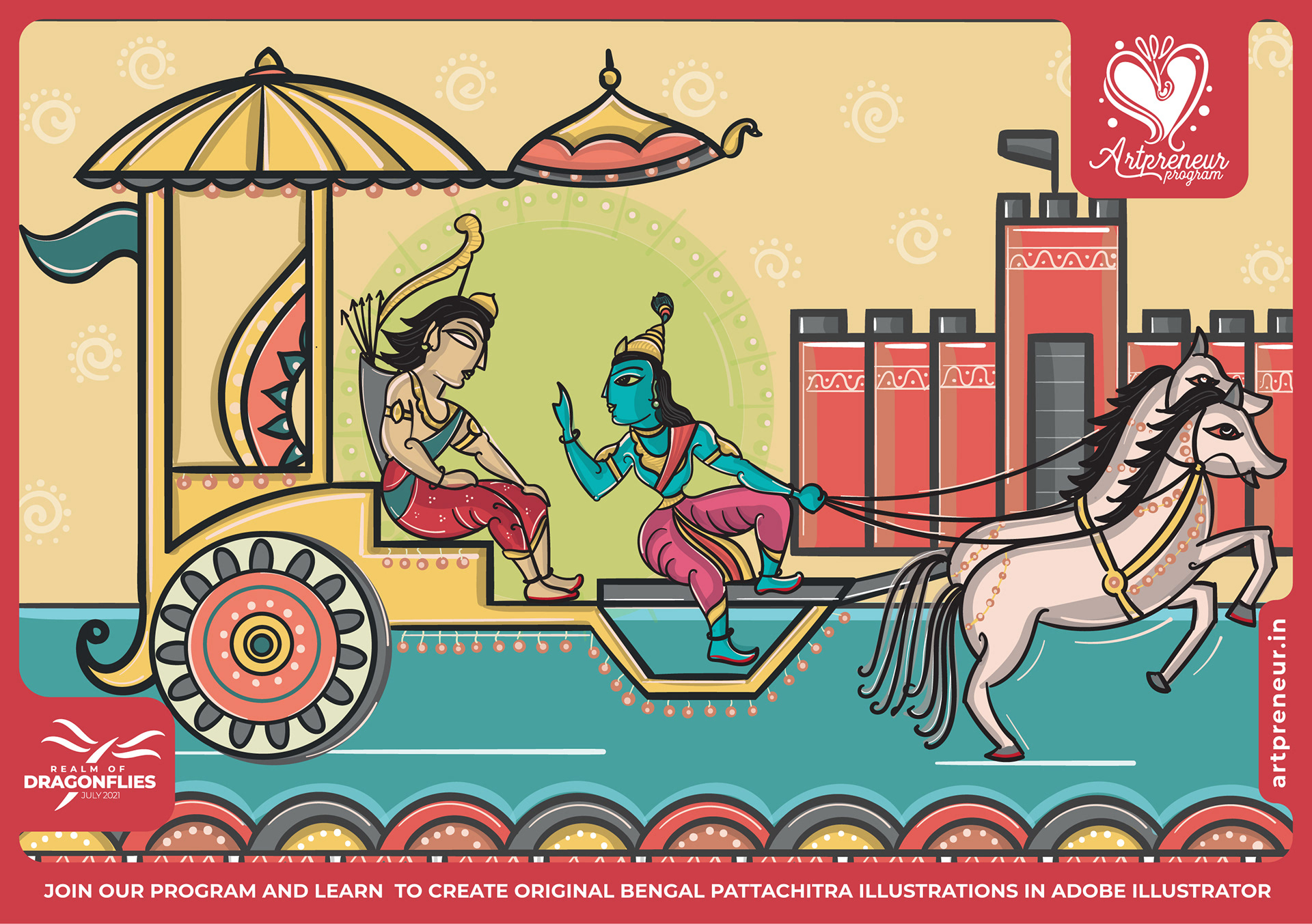 The Bengal Pattachitra Illustrations, Doodles and Sketches are done by the Realm of Dragonflies Batch students of Artpreneur Online Program. They have not had any prior experience and knowledge in illustrations or folk art forms.