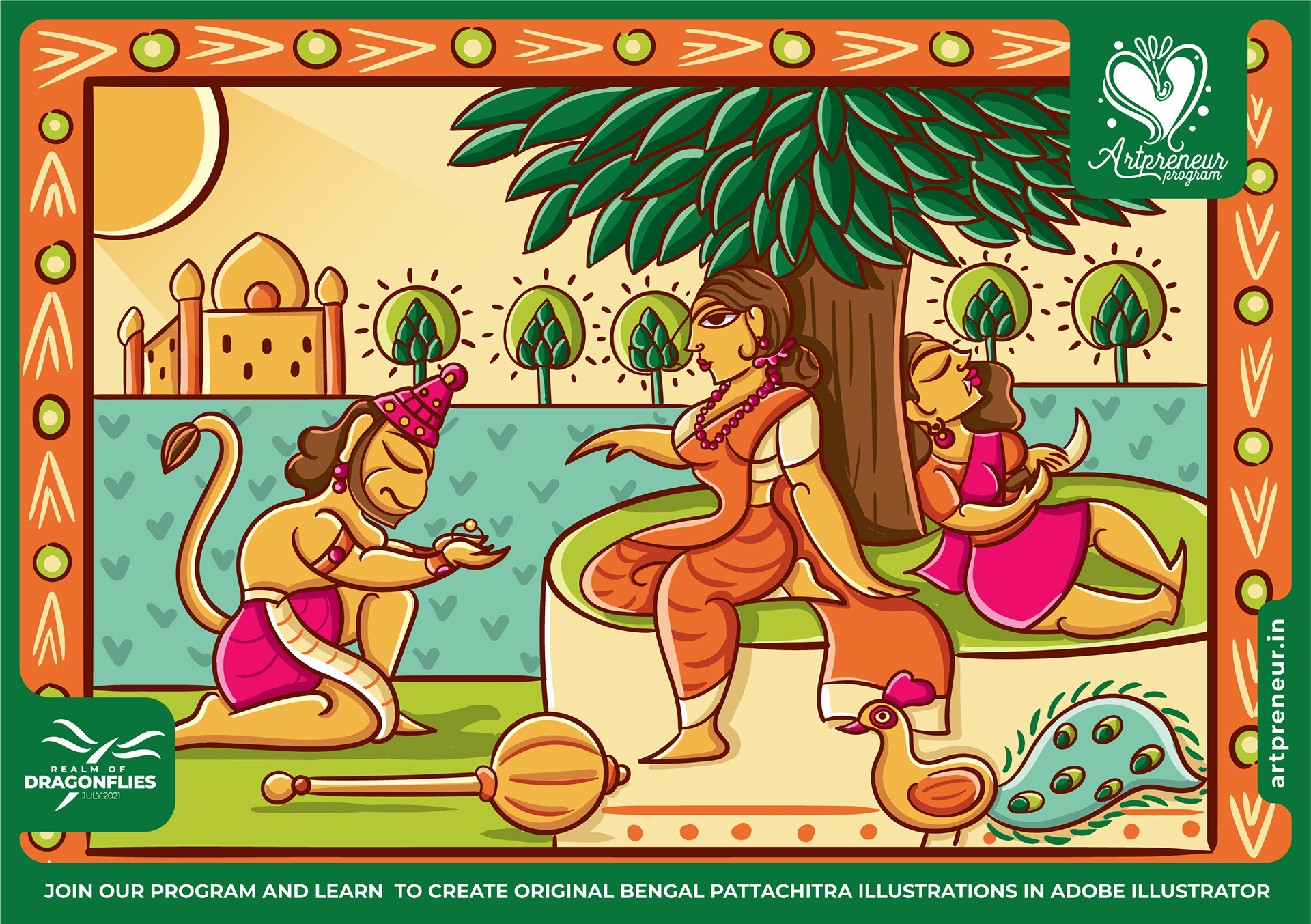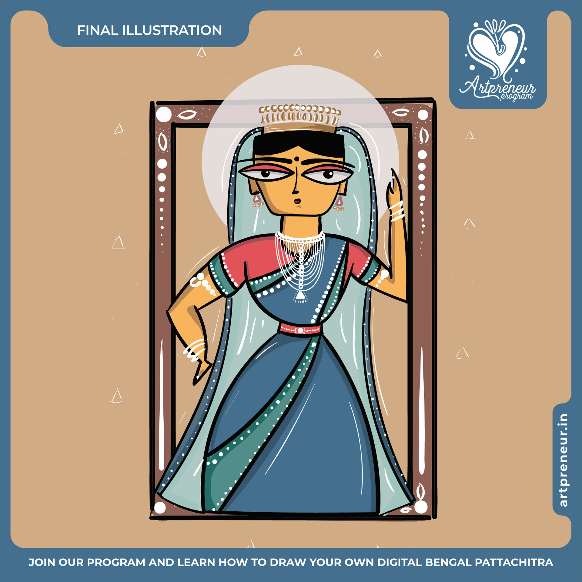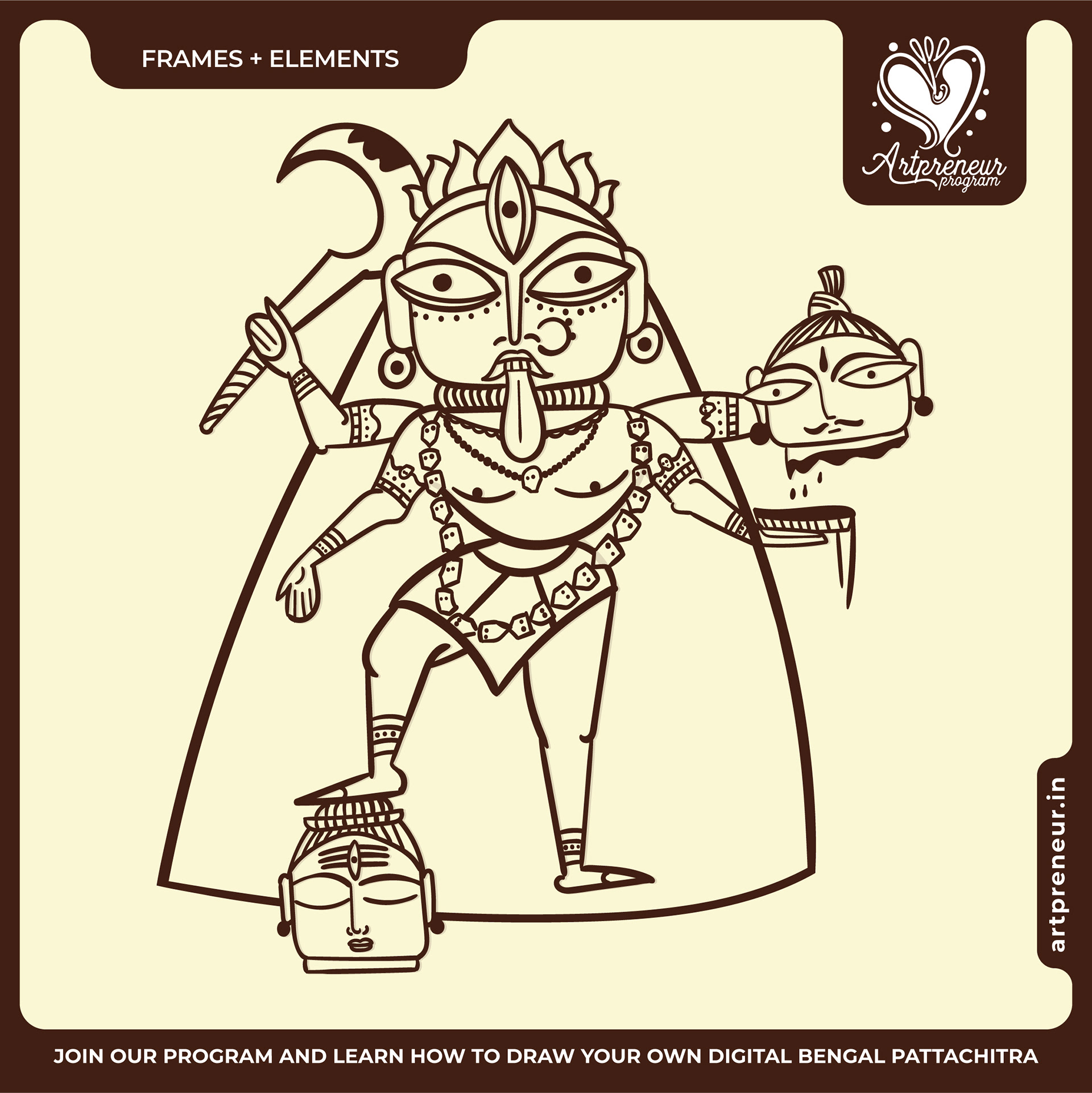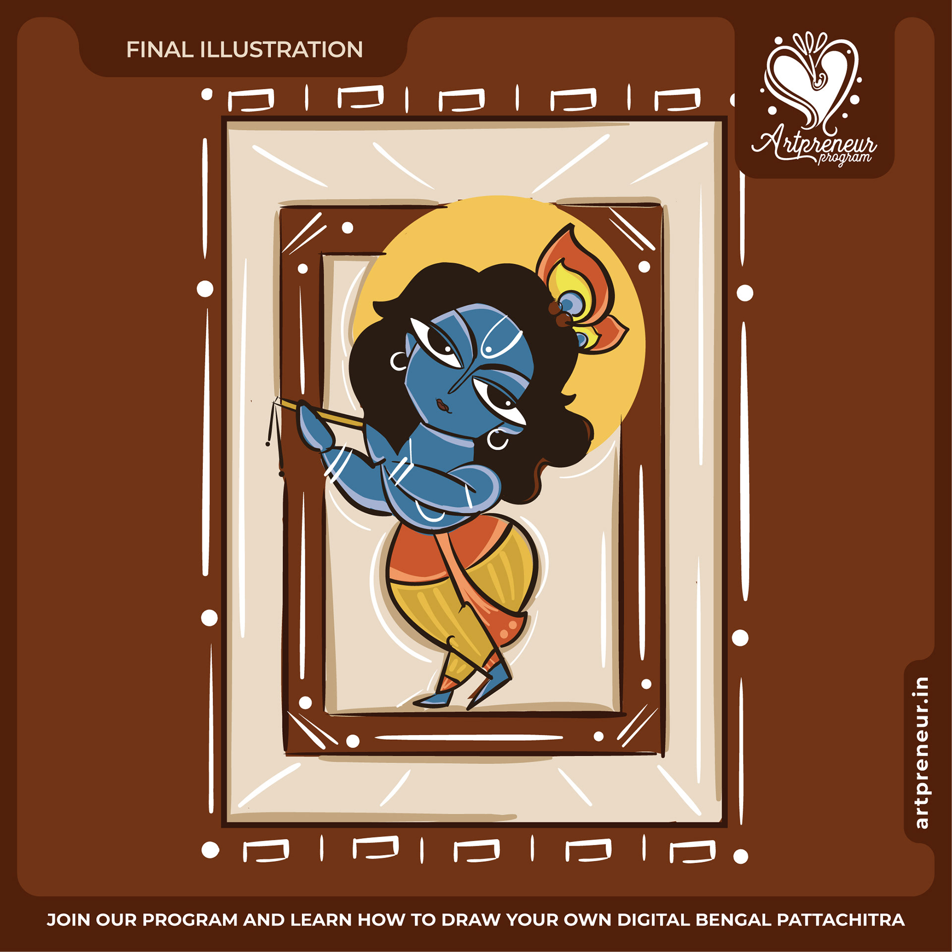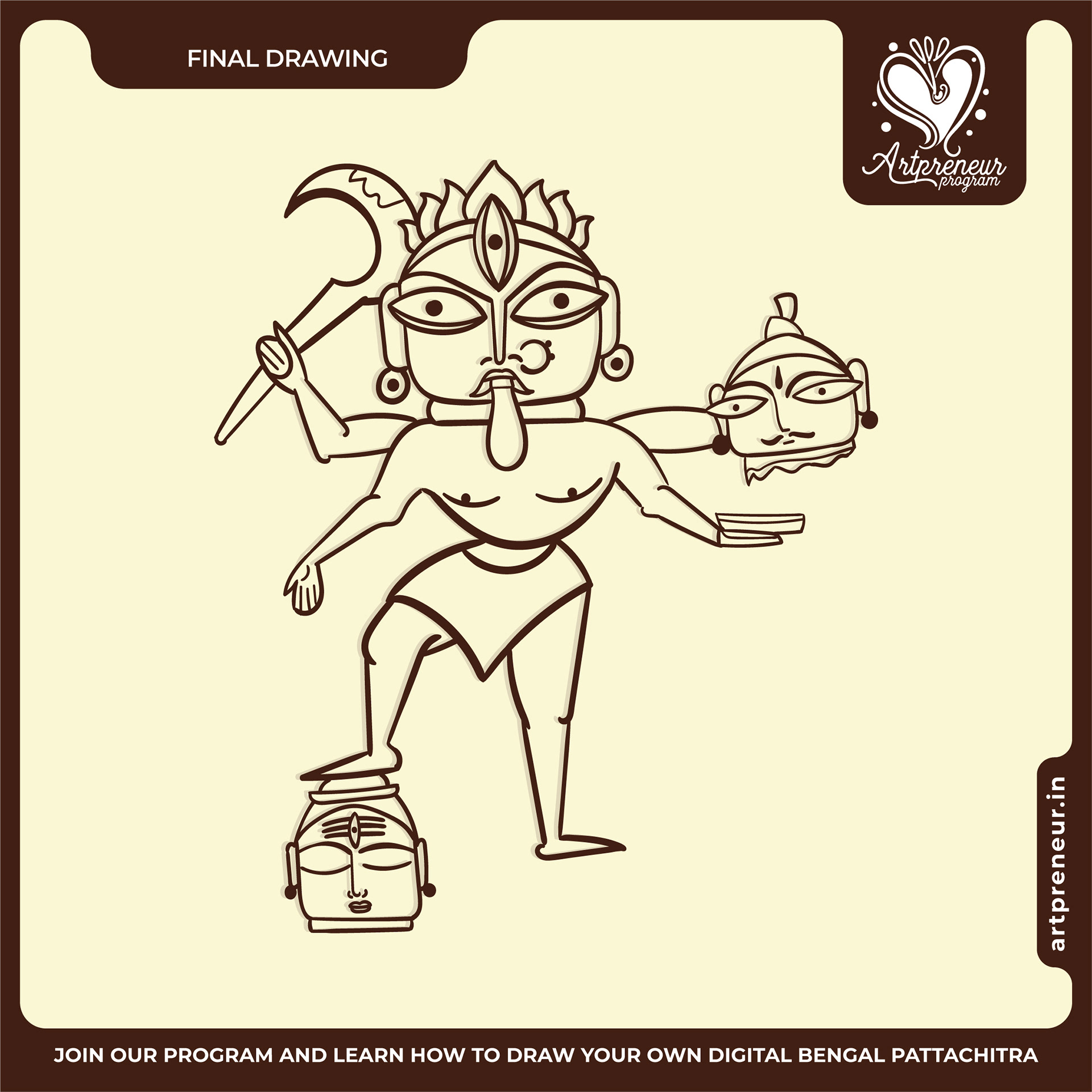 The Bengal Pattachitra Illustrations, Doodles and Sketches are done by the Realm of Dragonflies Batch students of Artpreneur Online Program. They have not had any prior experience and knowledge in illustrations or folk art forms.