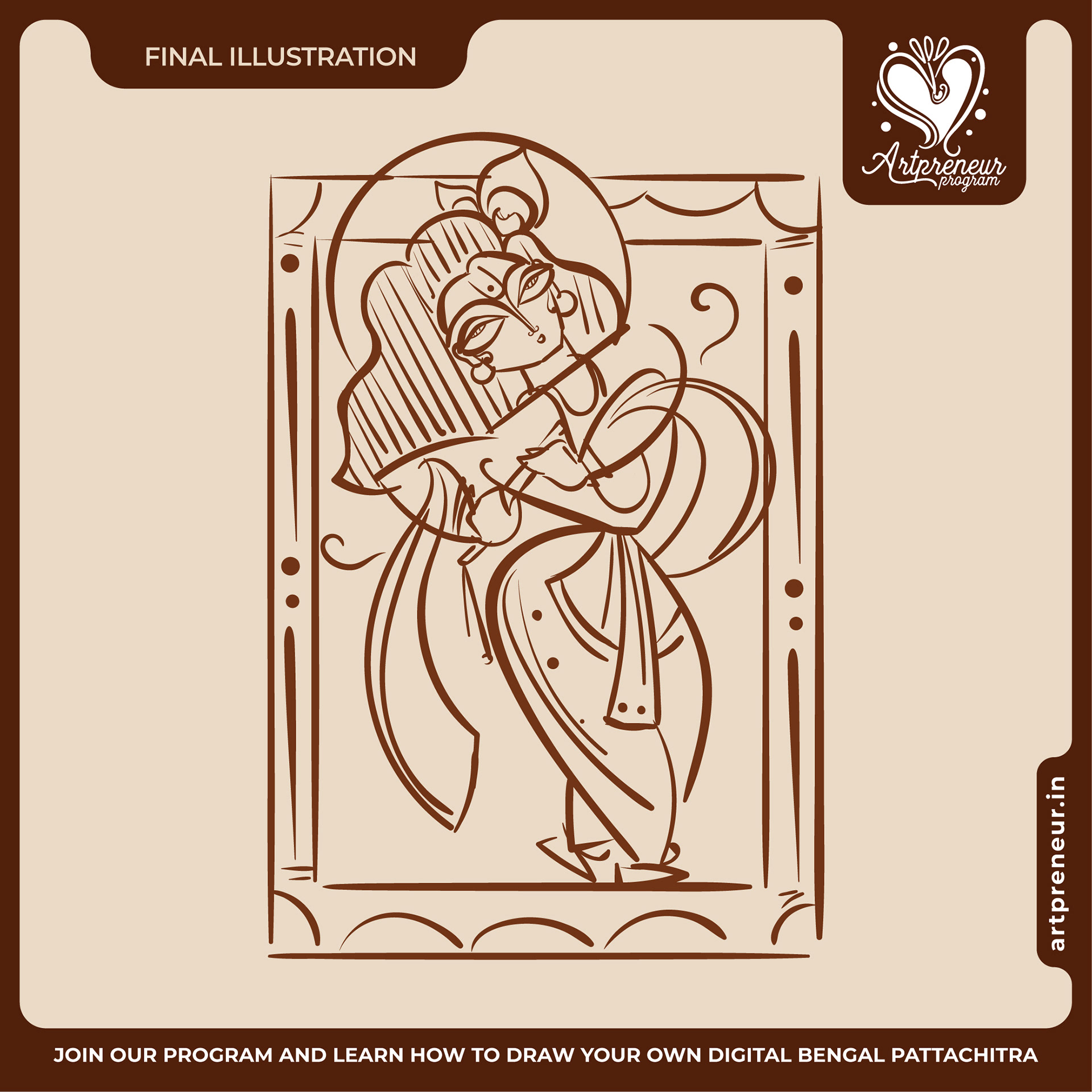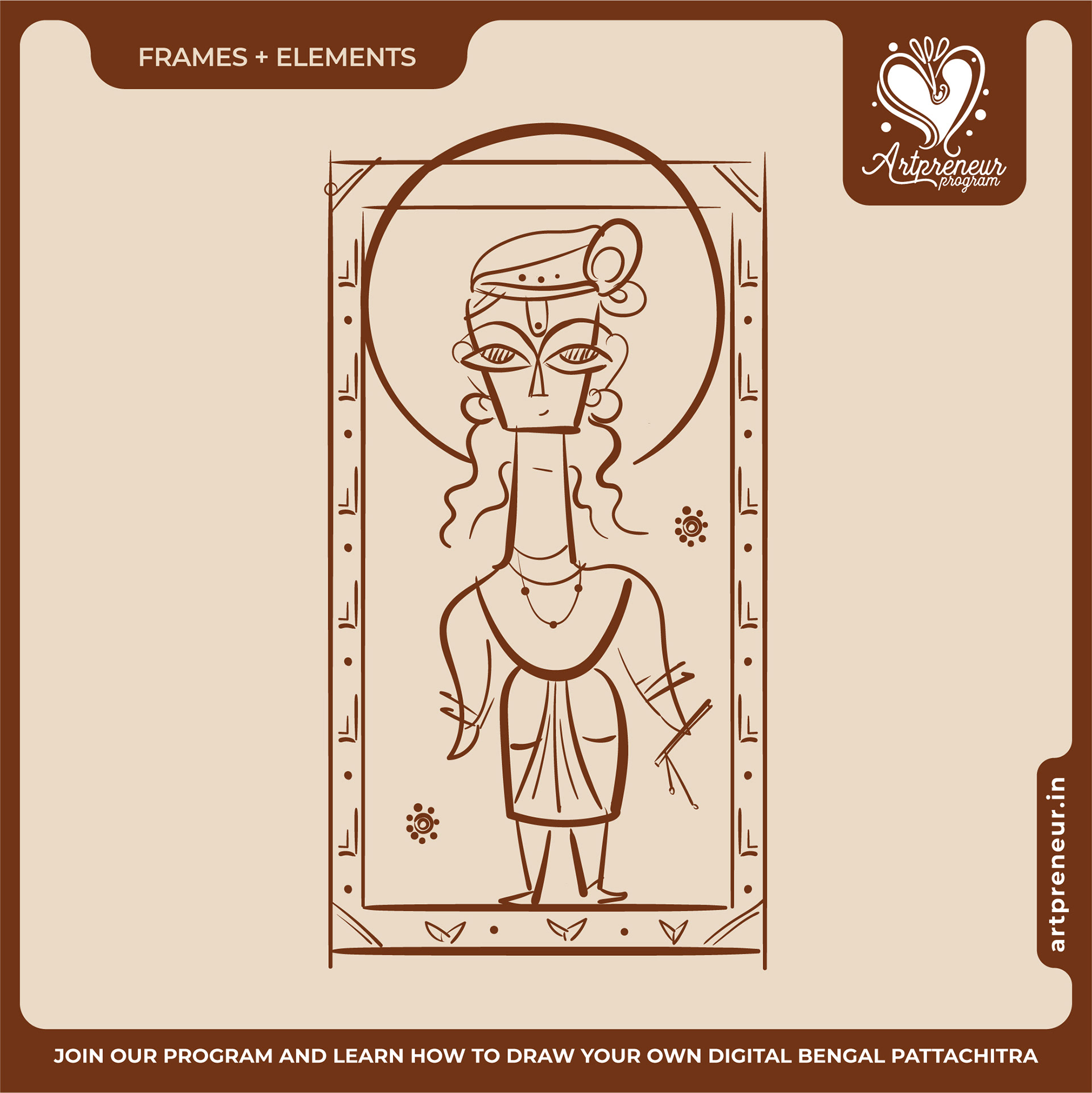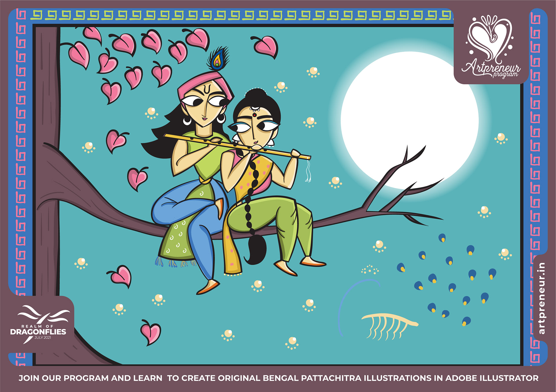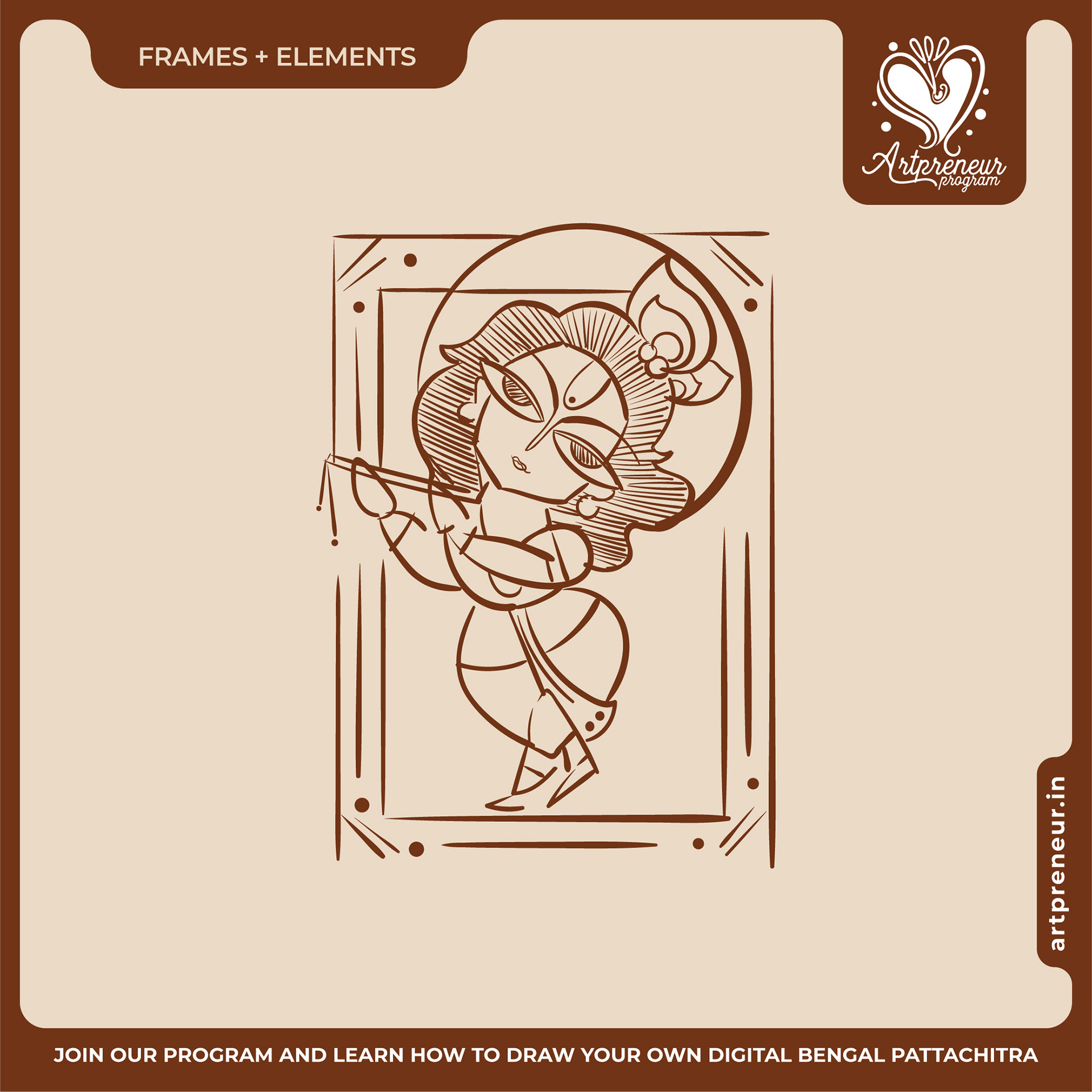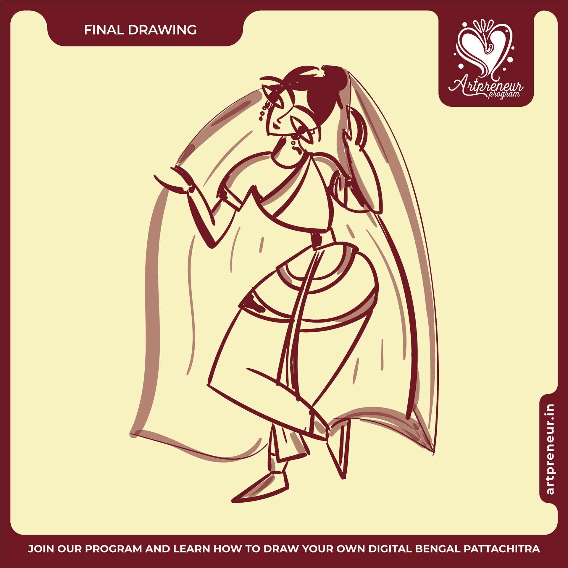 The Bengal Pattachitra Illustrations, Doodles and Sketches are done by the Realm of Dragonflies Batch students of Artpreneur Online Program. They have not had any prior experience and knowledge in illustrations or folk art forms.