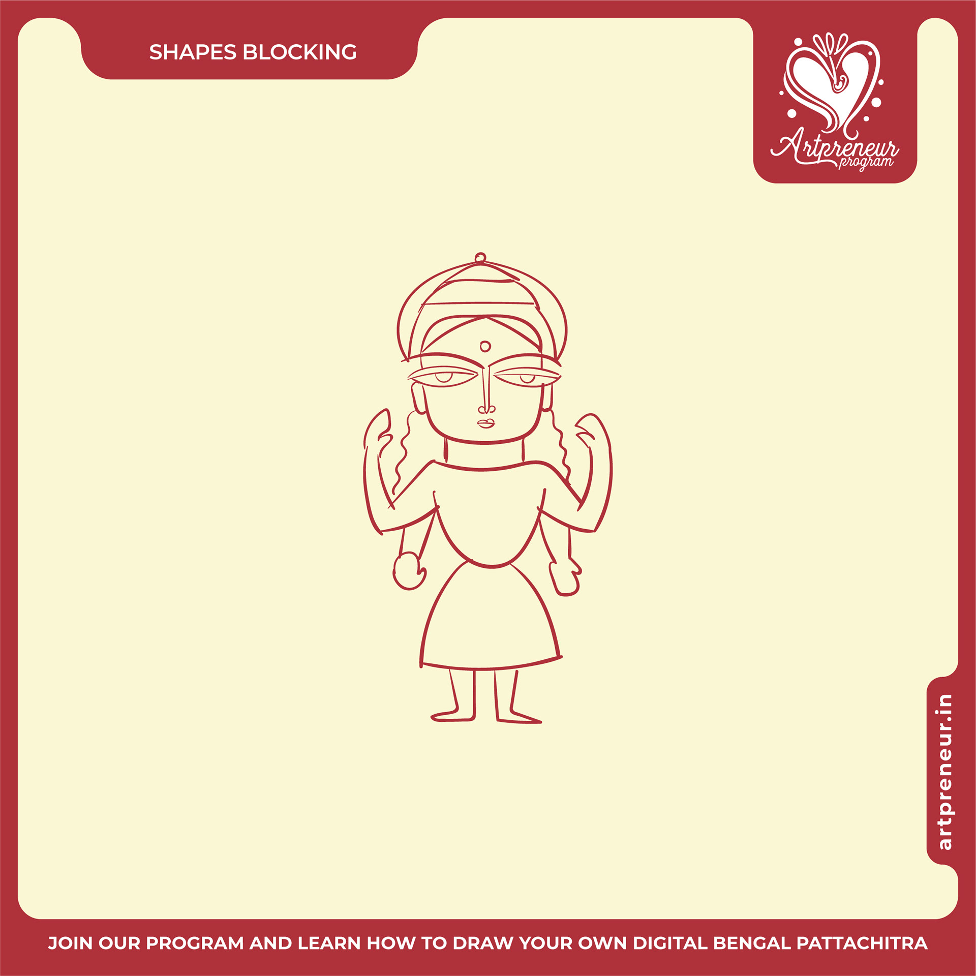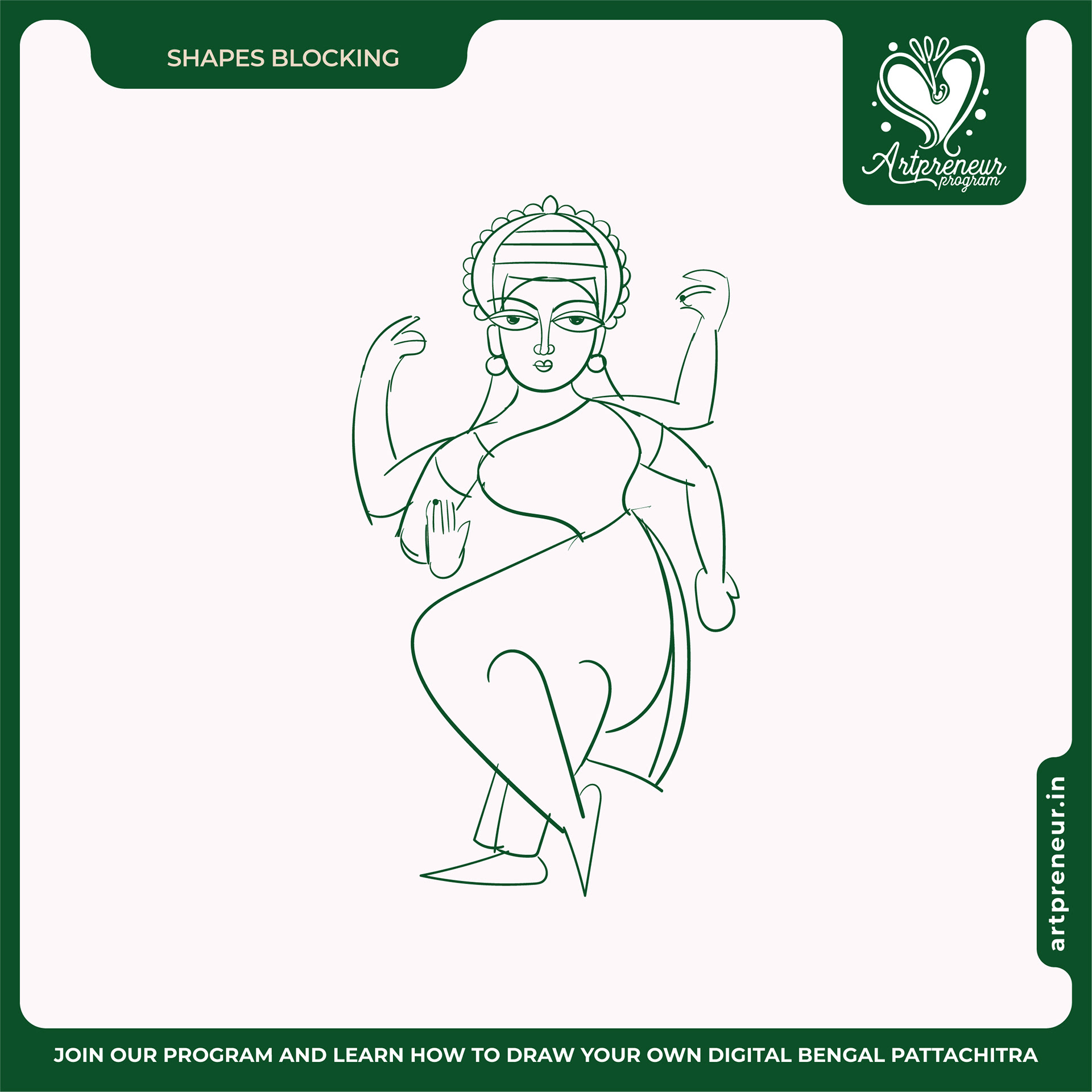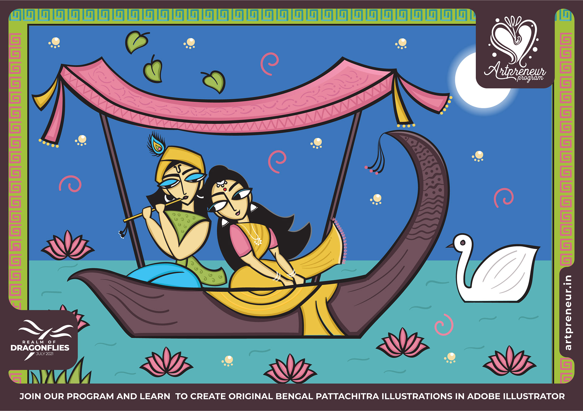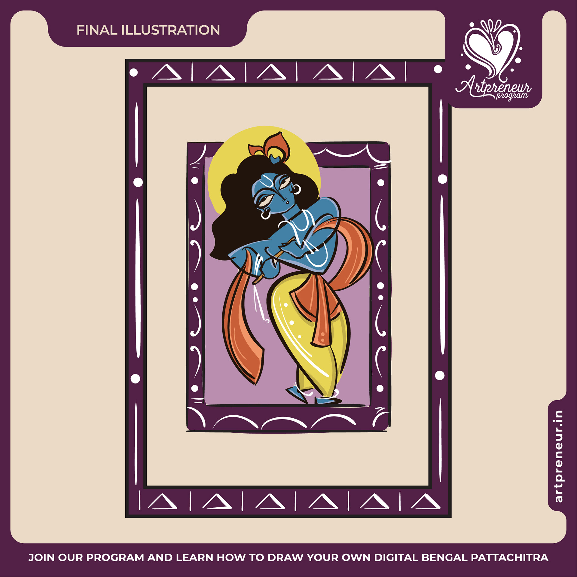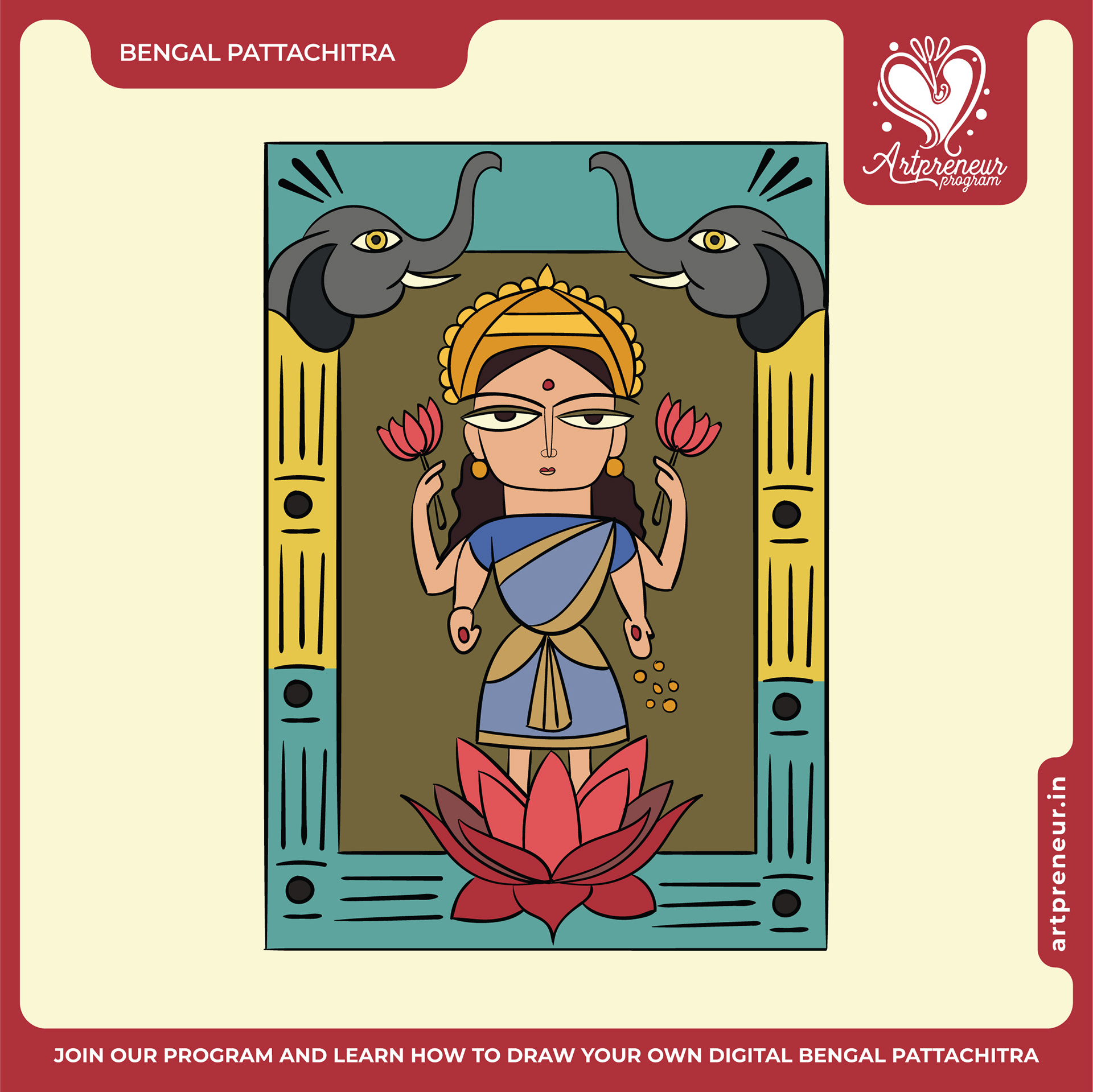 The Bengal Pattachitra Illustrations, Doodles and Sketches are done by the Realm of Dragonflies Batch students of Artpreneur Online Program. They have not had any prior experience and knowledge in illustrations or folk art forms.