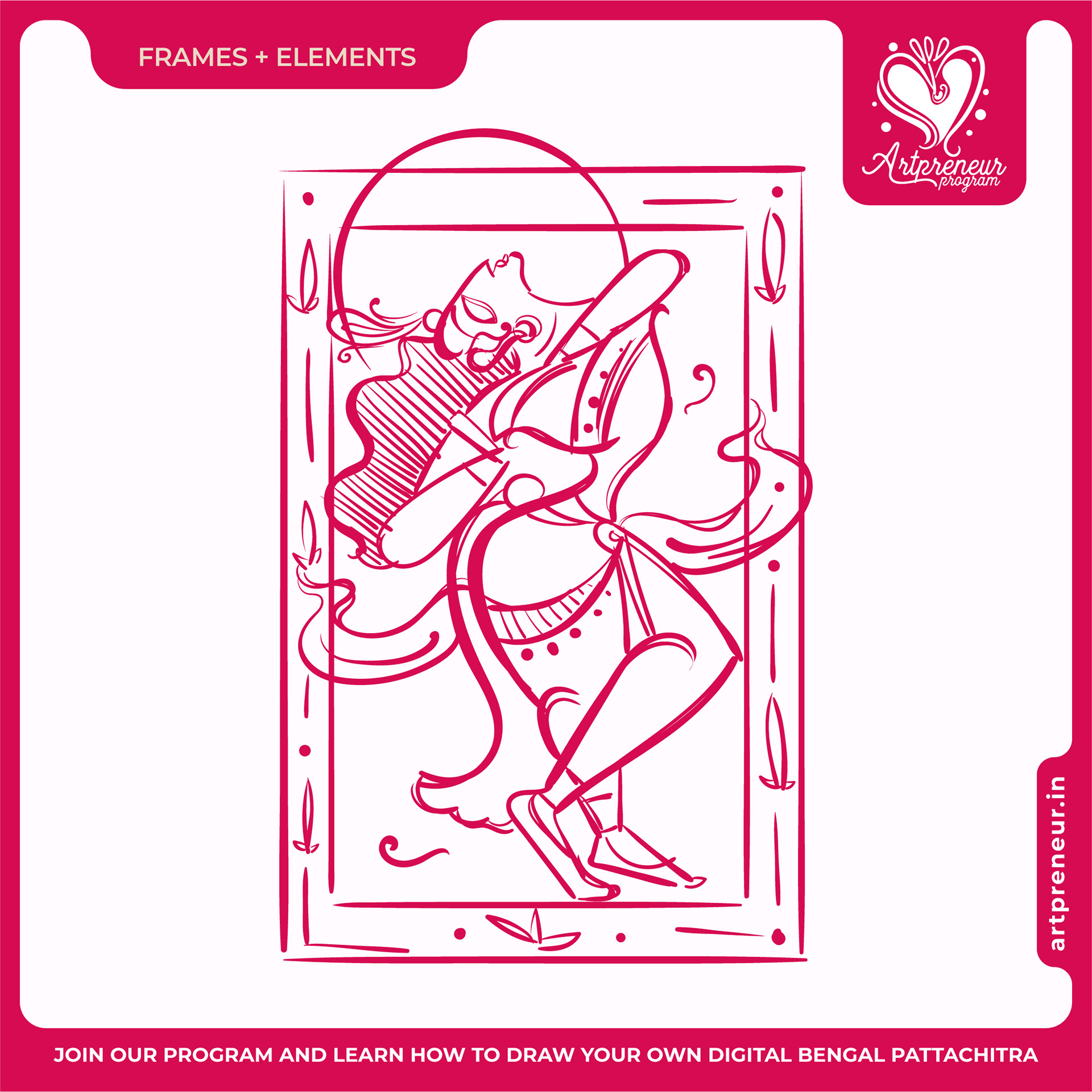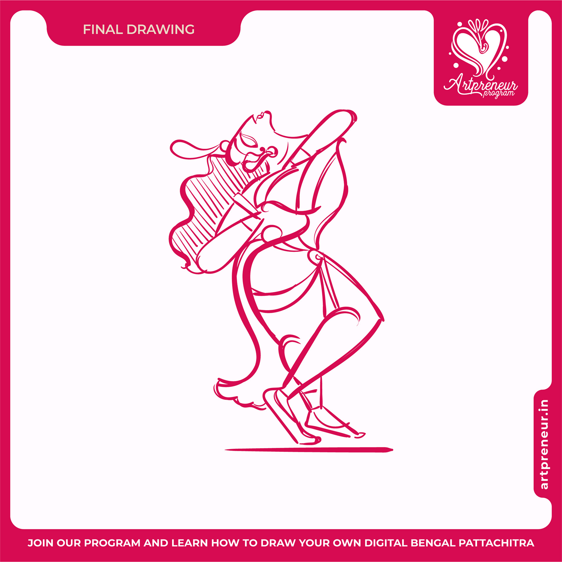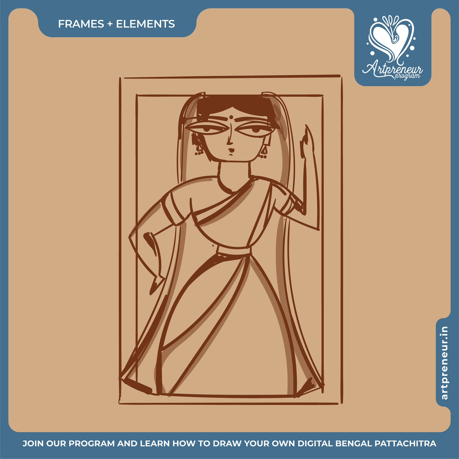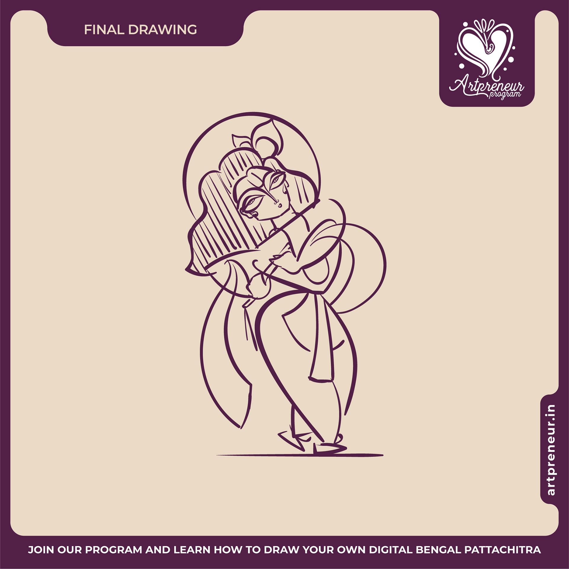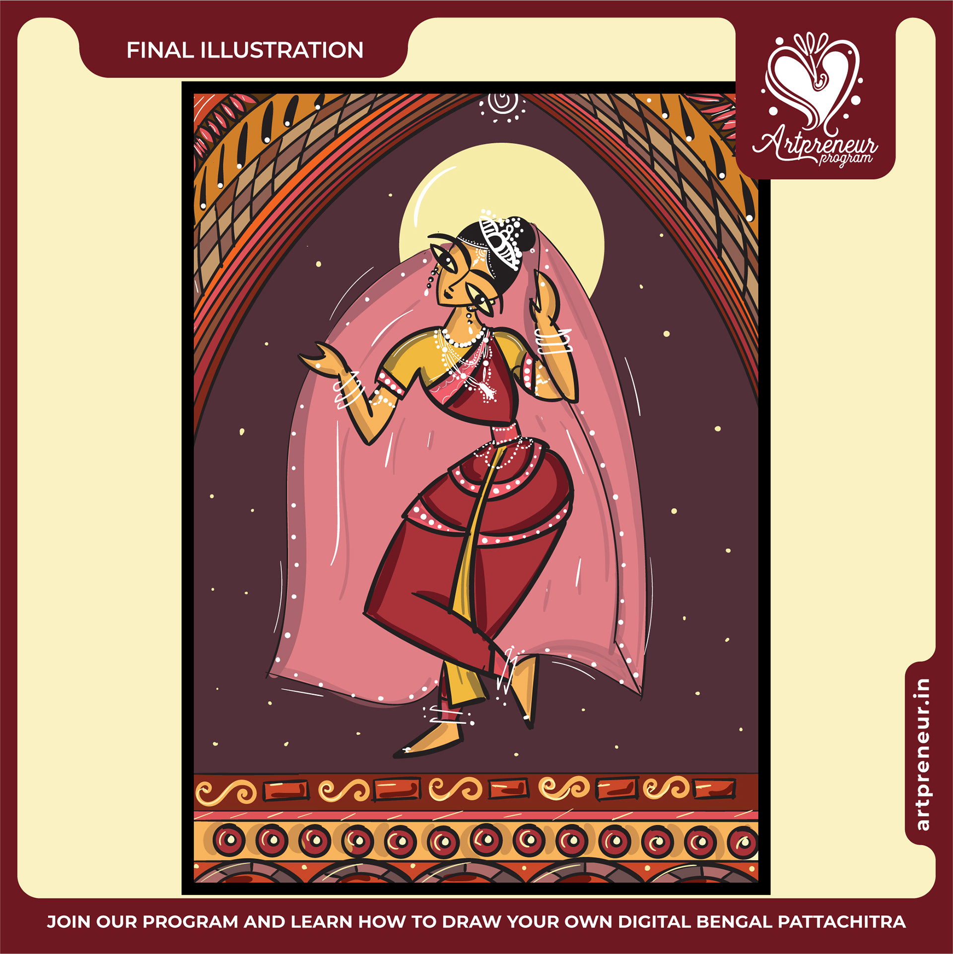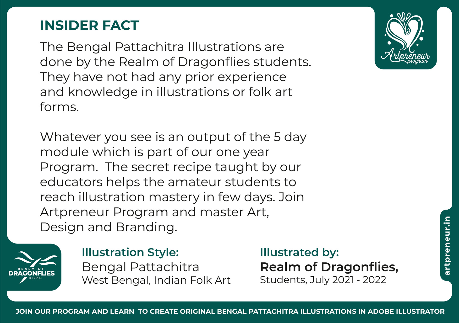 The Bengal Pattachitra Illustrations, Doodles and Sketches are done by the Realm of Dragonflies Batch students of Artpreneur Online Program. They have not had any prior experience and knowledge in illustrations or folk art forms.