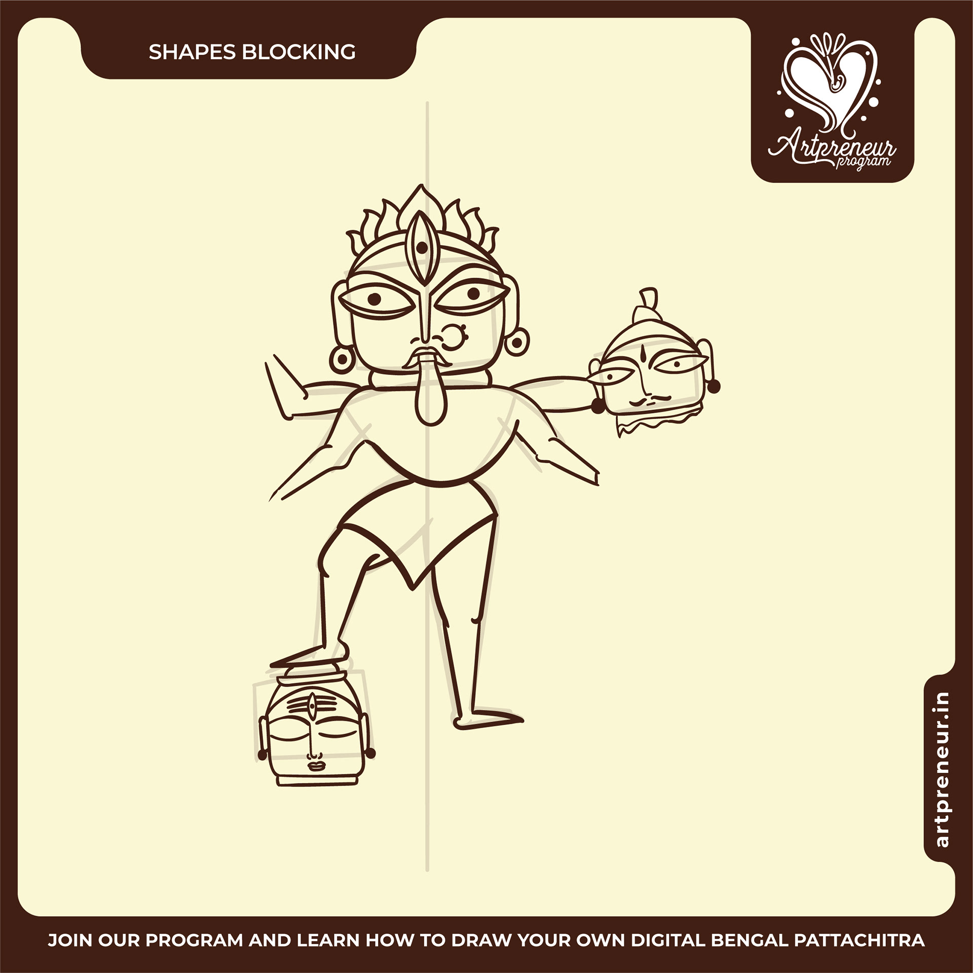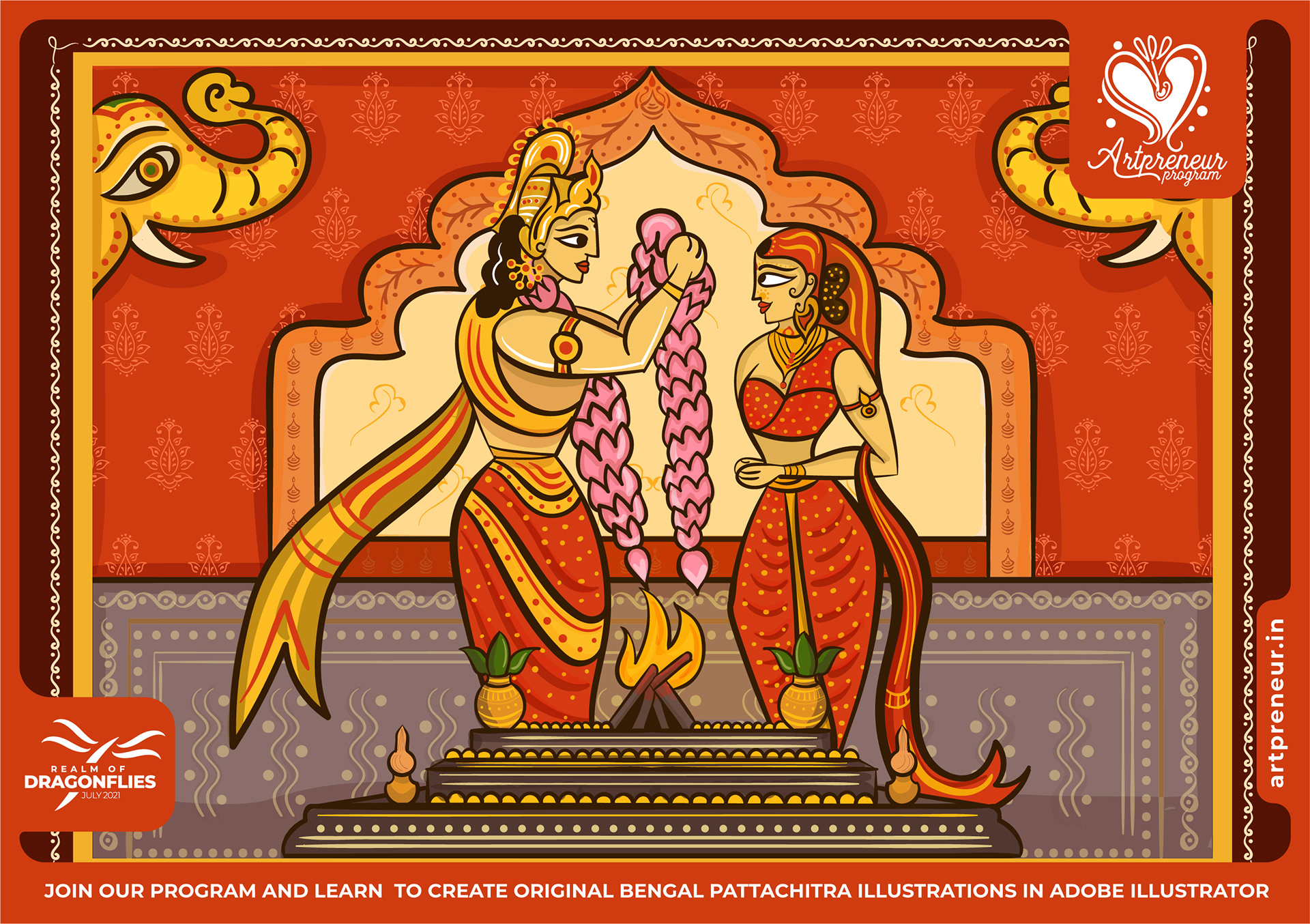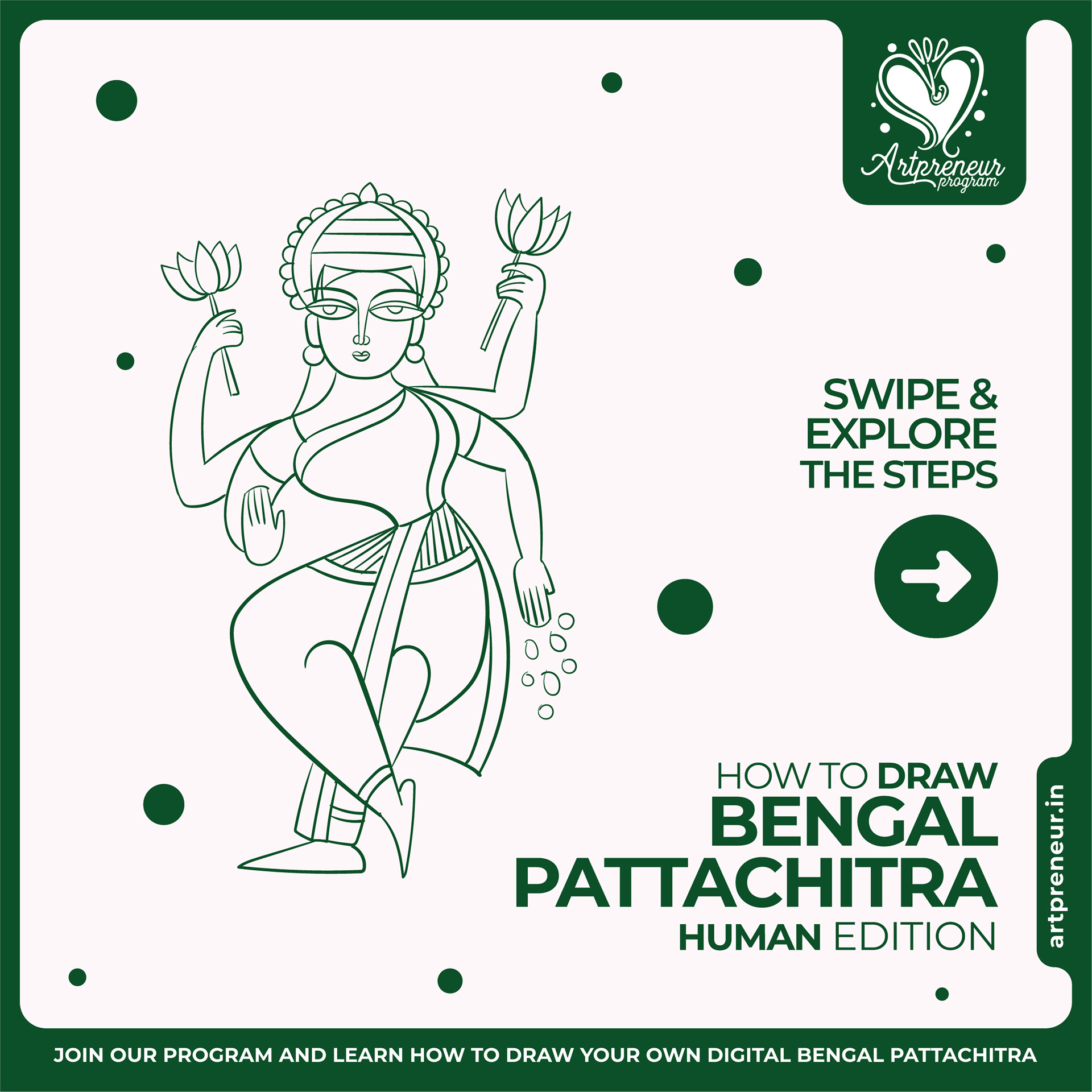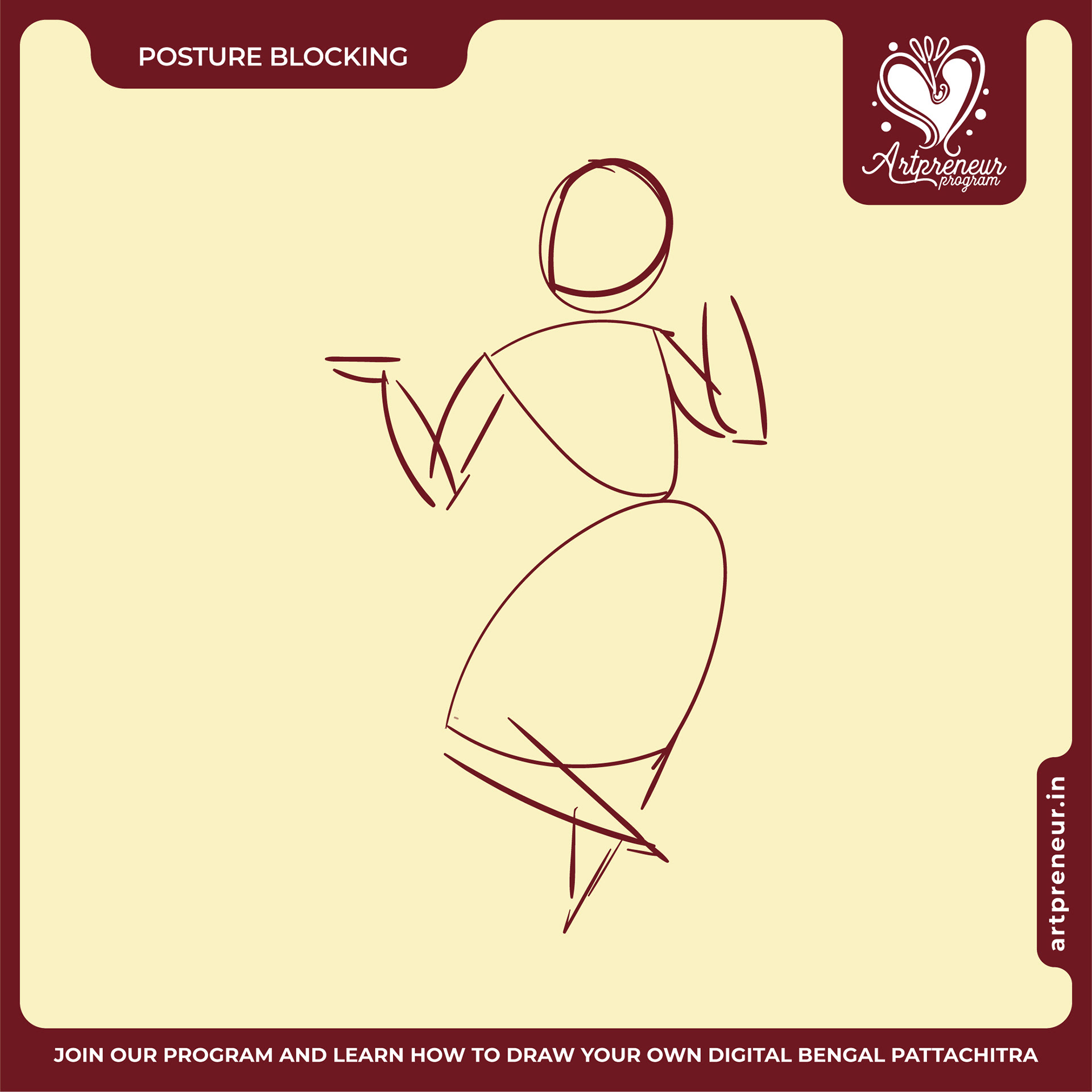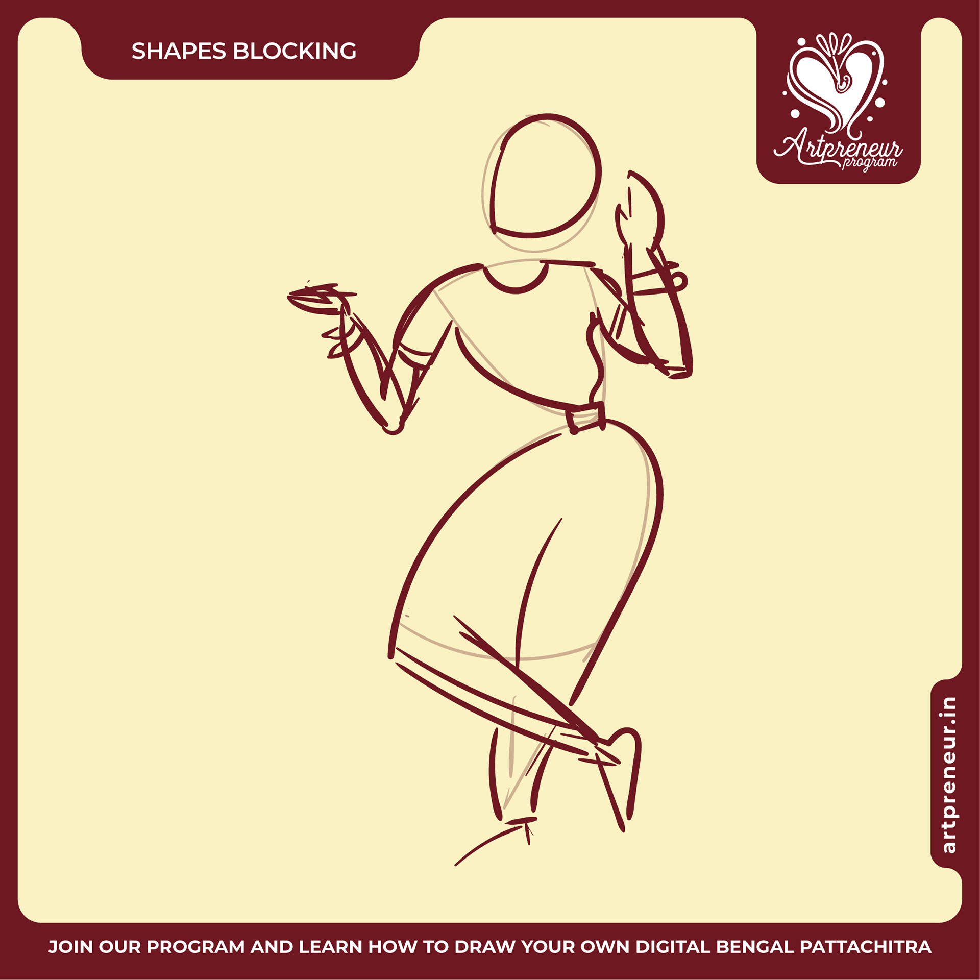 The Bengal Pattachitra Illustrations, Doodles and Sketches are done by the Realm of Dragonflies Batch students of Artpreneur Online Program. They have not had any prior experience and knowledge in illustrations or folk art forms.