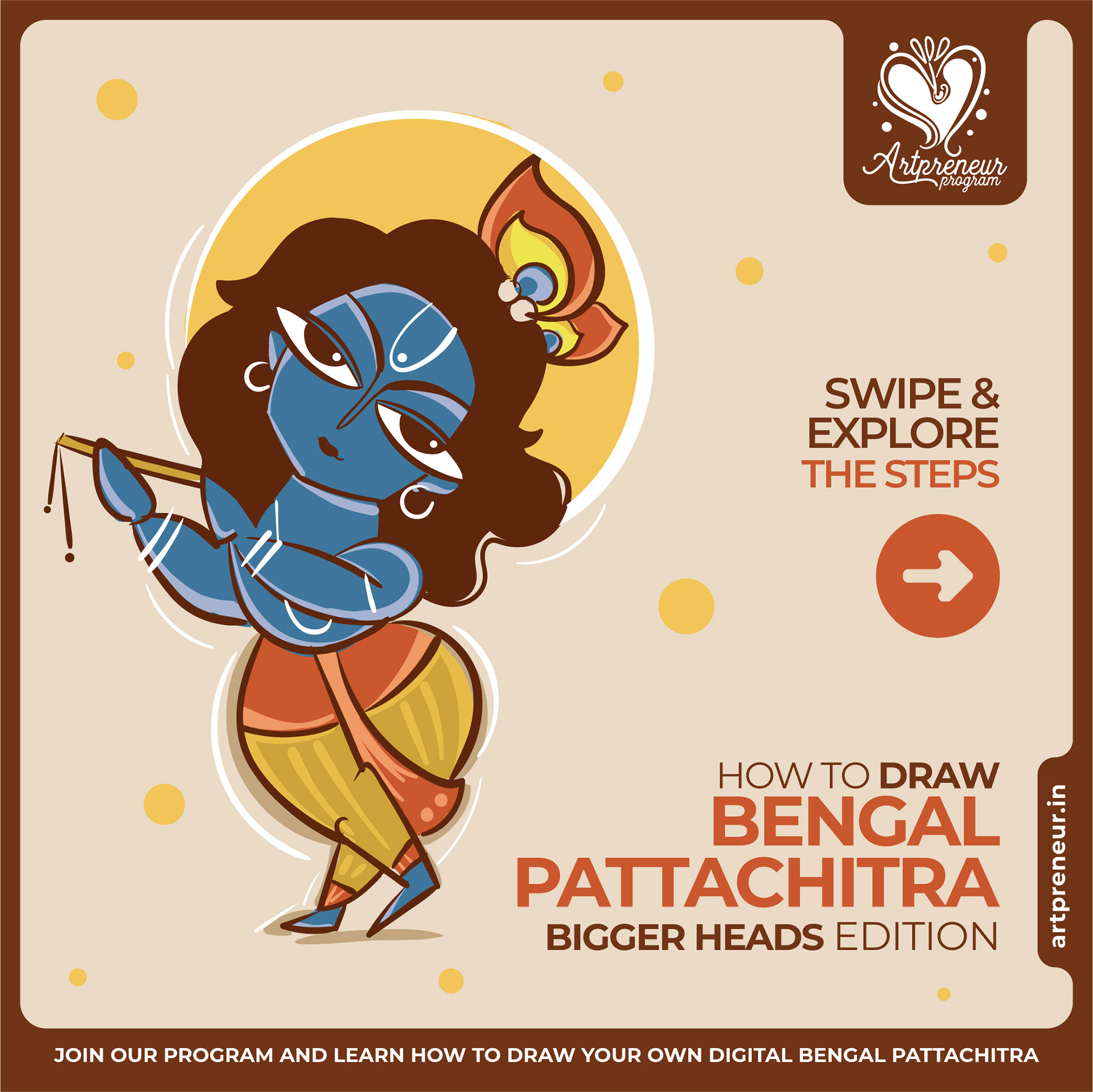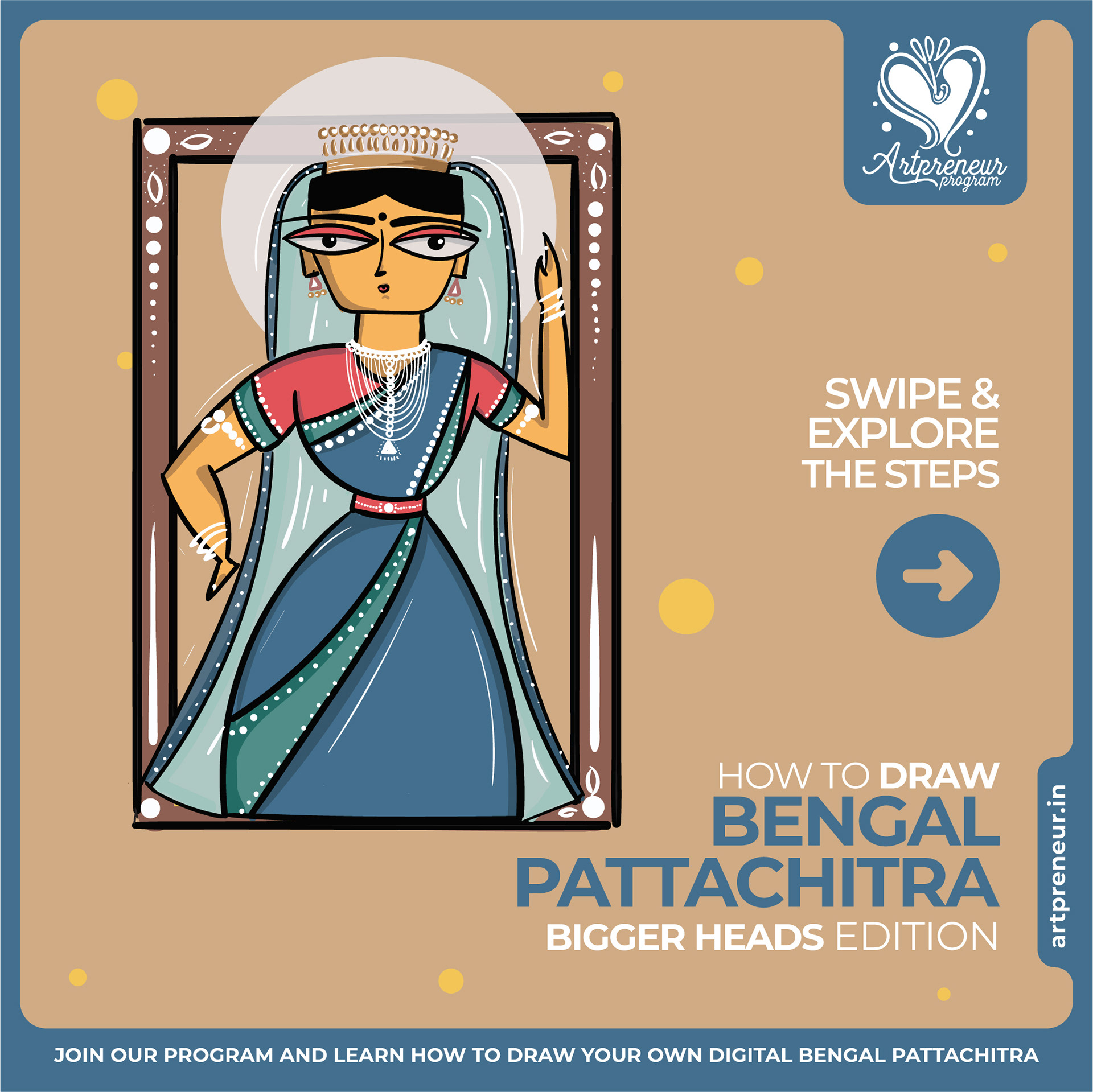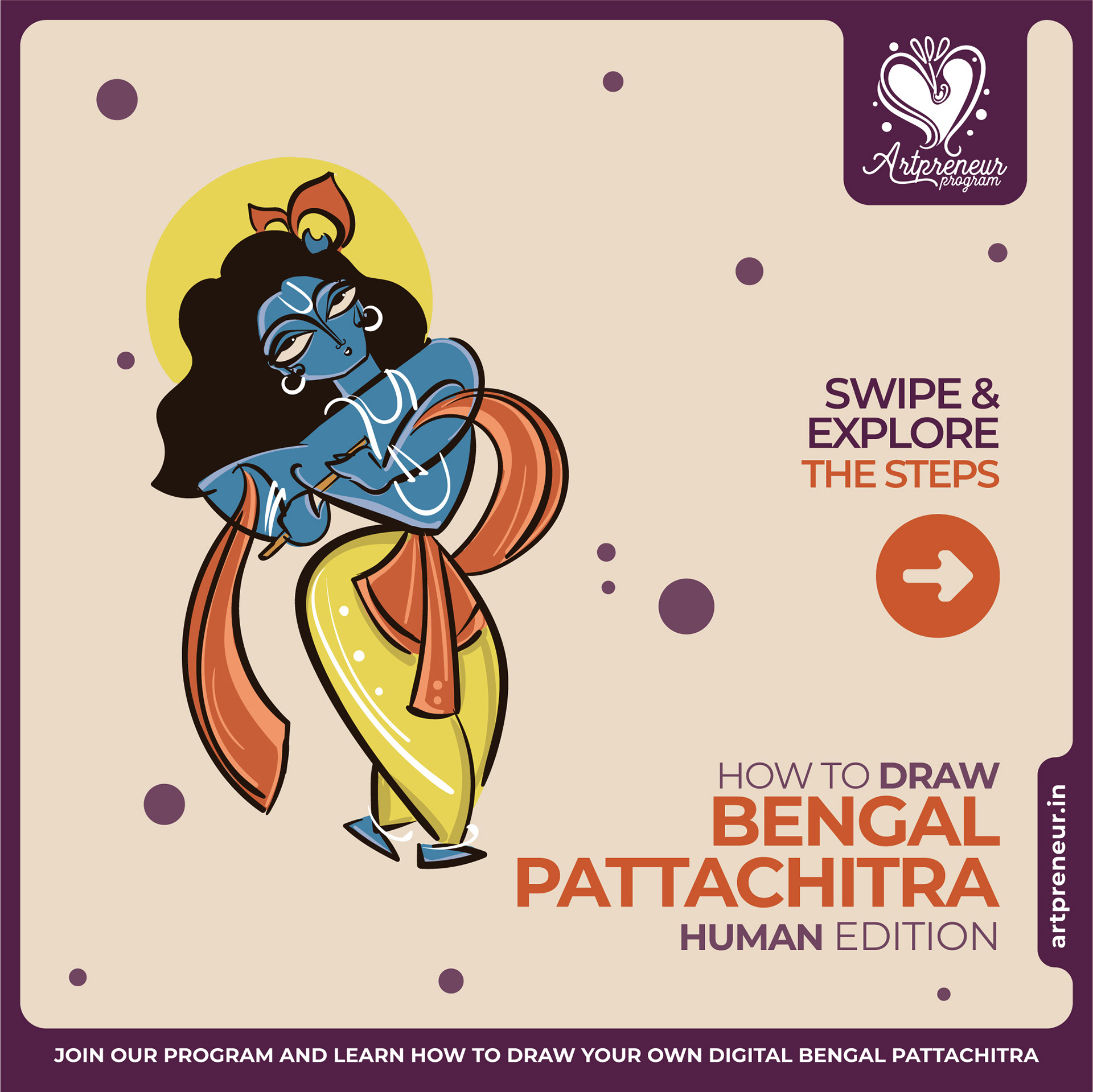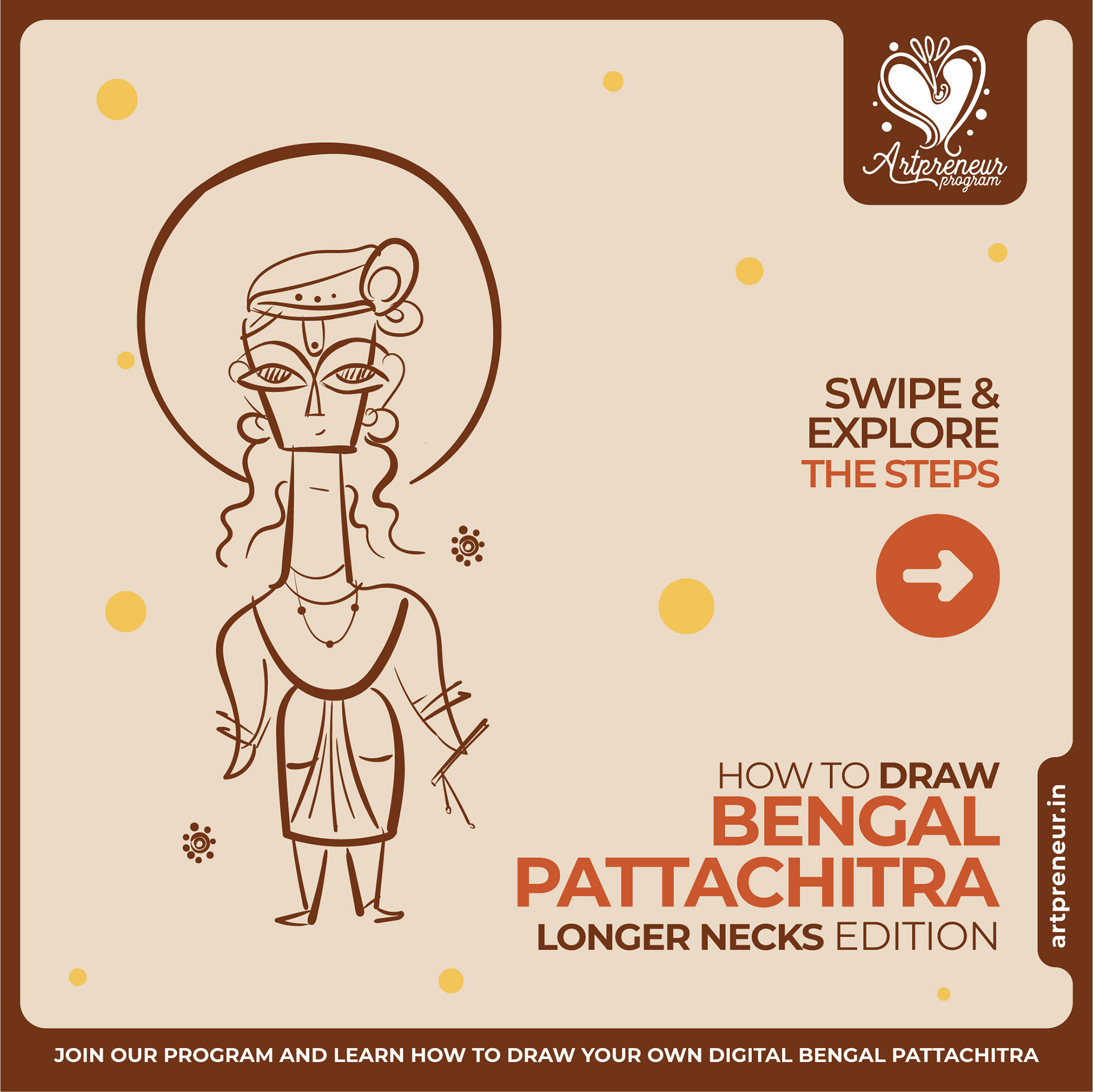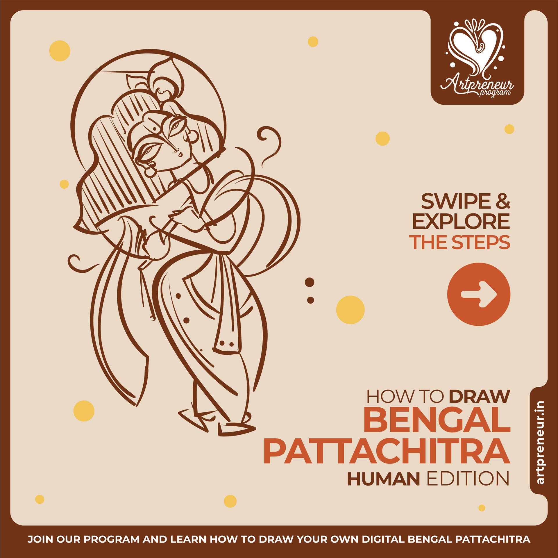 The Bengal Pattachitra Illustrations, Doodles and Sketches are done by the Realm of Dragonflies Batch students of Artpreneur Online Program. They have not had any prior experience and knowledge in illustrations or folk art forms.