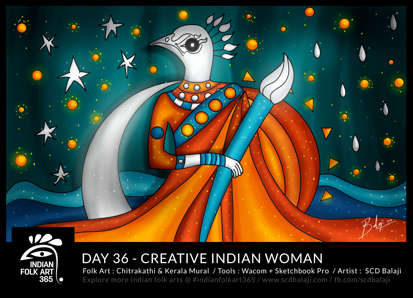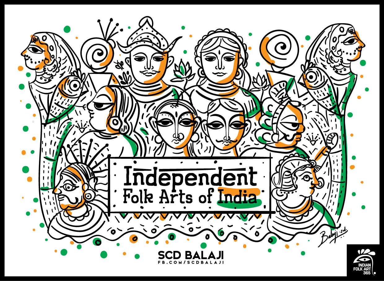 Indian Folk Art 365 aka Indian Folk & Art 365 is an Experimental Illustration Movement instigated by SCD Balaji, The Chief Creative Officer of Atma Studios. IFA365 explores the various folklores of Indian states through its contemporary Indian and International folk illustrations. It is an Initiation to share and spread Indian Folklore to the world through contemporary Illustrations and Hands-on workshops. We are trying to document the Indian Heritage, Pop Culture and Folk Art through Illustrations for the upcoming digital generation. All Indian Folk Art 365 Illustrations are available as Merchandise and Corporate gifts on request.