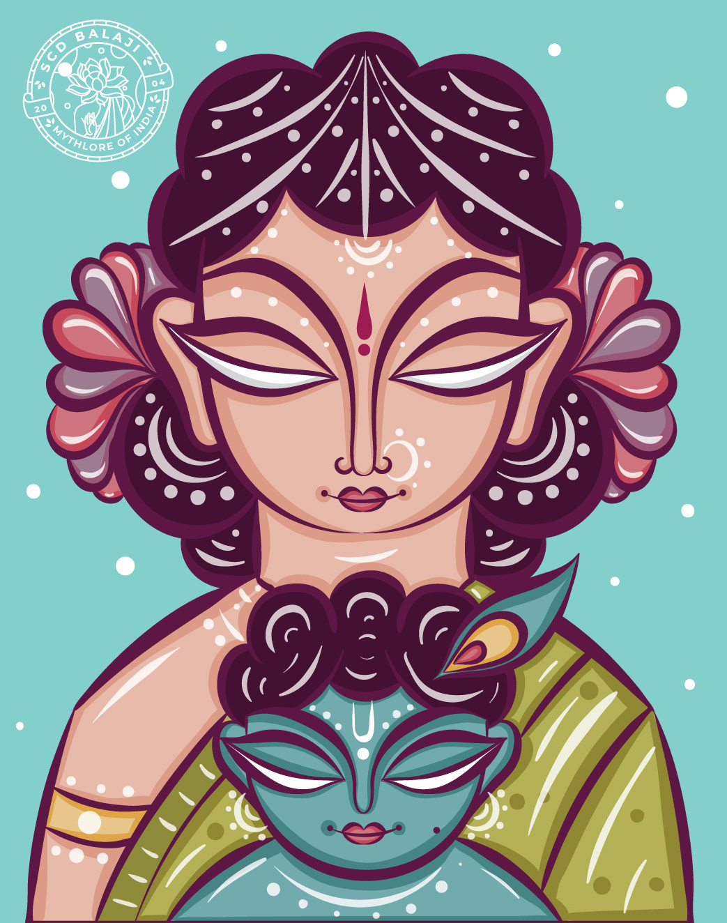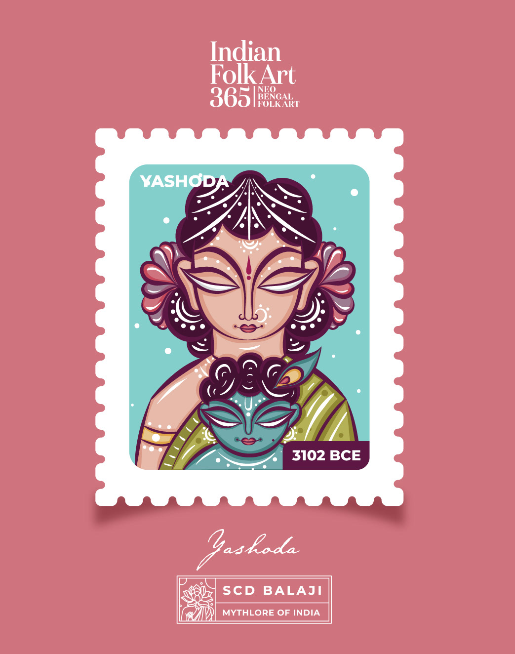 Yashoda is a character in Hindu mythology, known as the foster-mother of Lord Krishna. In the mythlore, she is depicted as a simple cowherd woman, with no divine or supernatural powers of her own. In a surreal tale, baby Krishna shows his mouth to his mother, Yashoda, revealing the entire universe within himself. This includes the sun, moon, stars, planets, oceans, mountains, continents, and all beings. The story transforms Yashoda's understanding of her son, who is nothing but the divine itself.