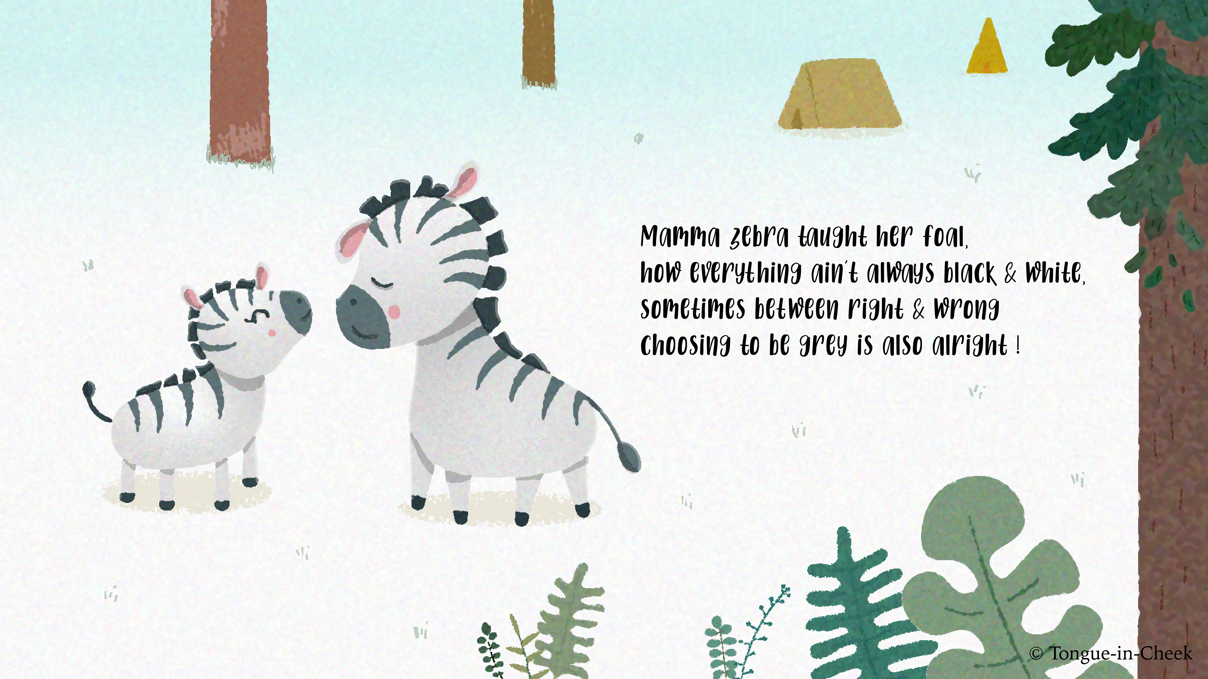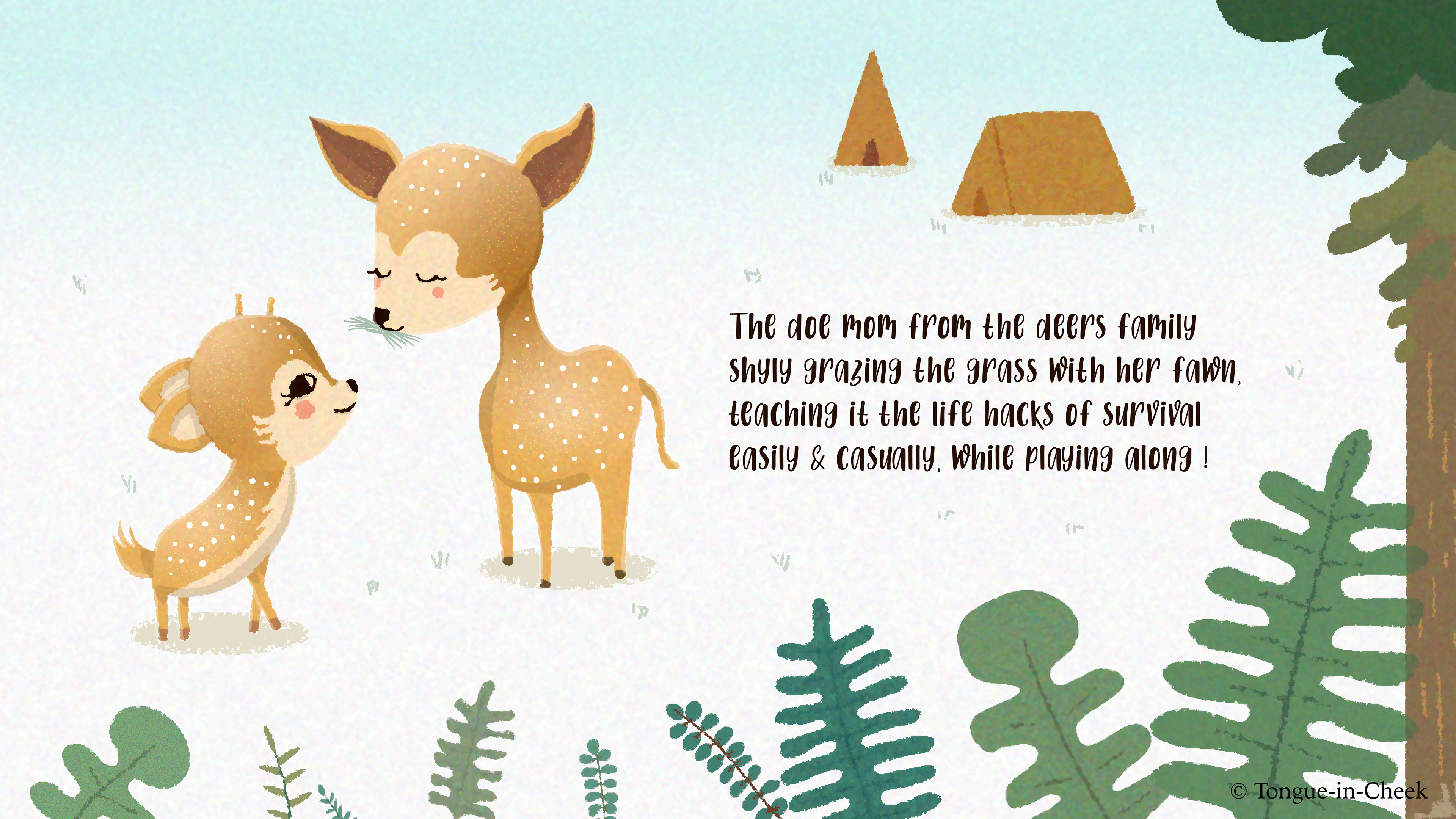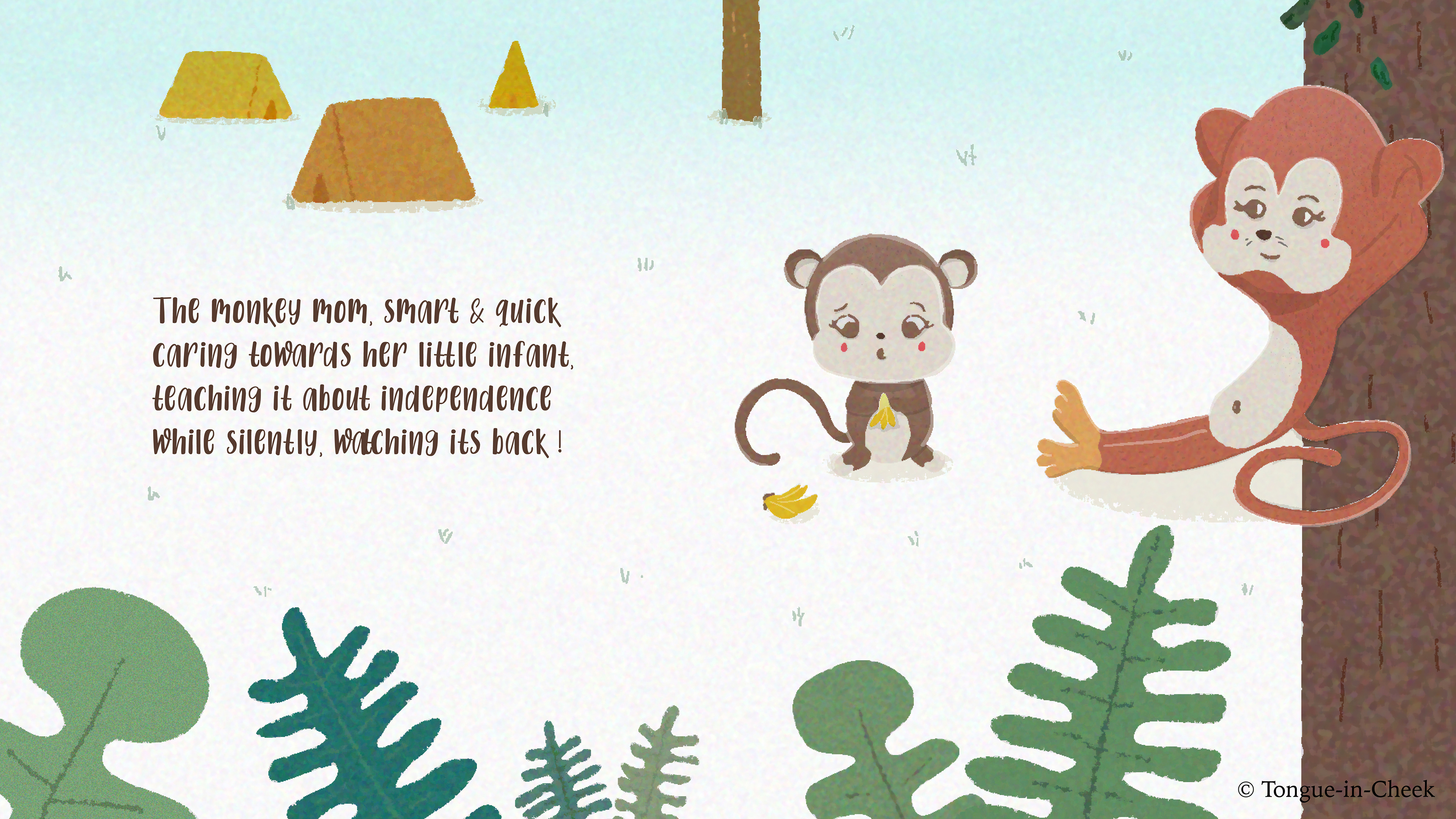 A simple & understandable Poem + Illustrations book for kids. We get to see 12 pairs of animal moms & their babies, where each mom teaches her baby a particular life skill. Through this book, I hope the mom & the kid can connect on a different level, while learning the qualities & names of each animal baby !