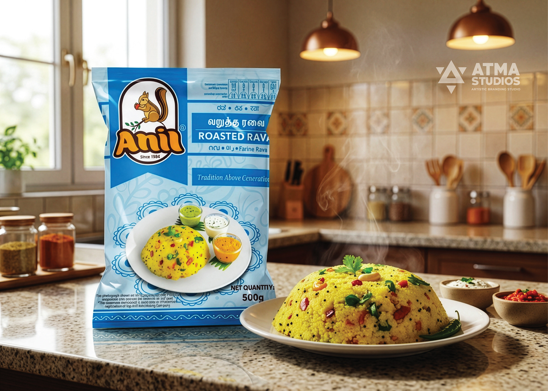 Anil Group is a beloved Indian FMCG brand rooted in tradition but thriving in modern kitchens since 1984. With a rich legacy of crafting wholesome, affordable and delicious food staples from vermicelli, rava and flour to noodles, appalam, salt and more, Anil has become a staple in households across South India and beyond, earning the trust of families and food lovers alike. For decades, Anil’s packaging has stood on shelves as a symbol of quality and reliability. In this project, we had the opportunity to reimagine the brand’s visual identity and overhaul 23 product packaging designs to better reflect the brand’s heritage while making it fresh, vibrant and contemporary for today’s consumers. Our redesign bridges tradition and modernity, celebrating Anil’s legacy while amplifying shelf presence and consumer appeal, bringing a timeless brand into a bold new era of FMCG design.