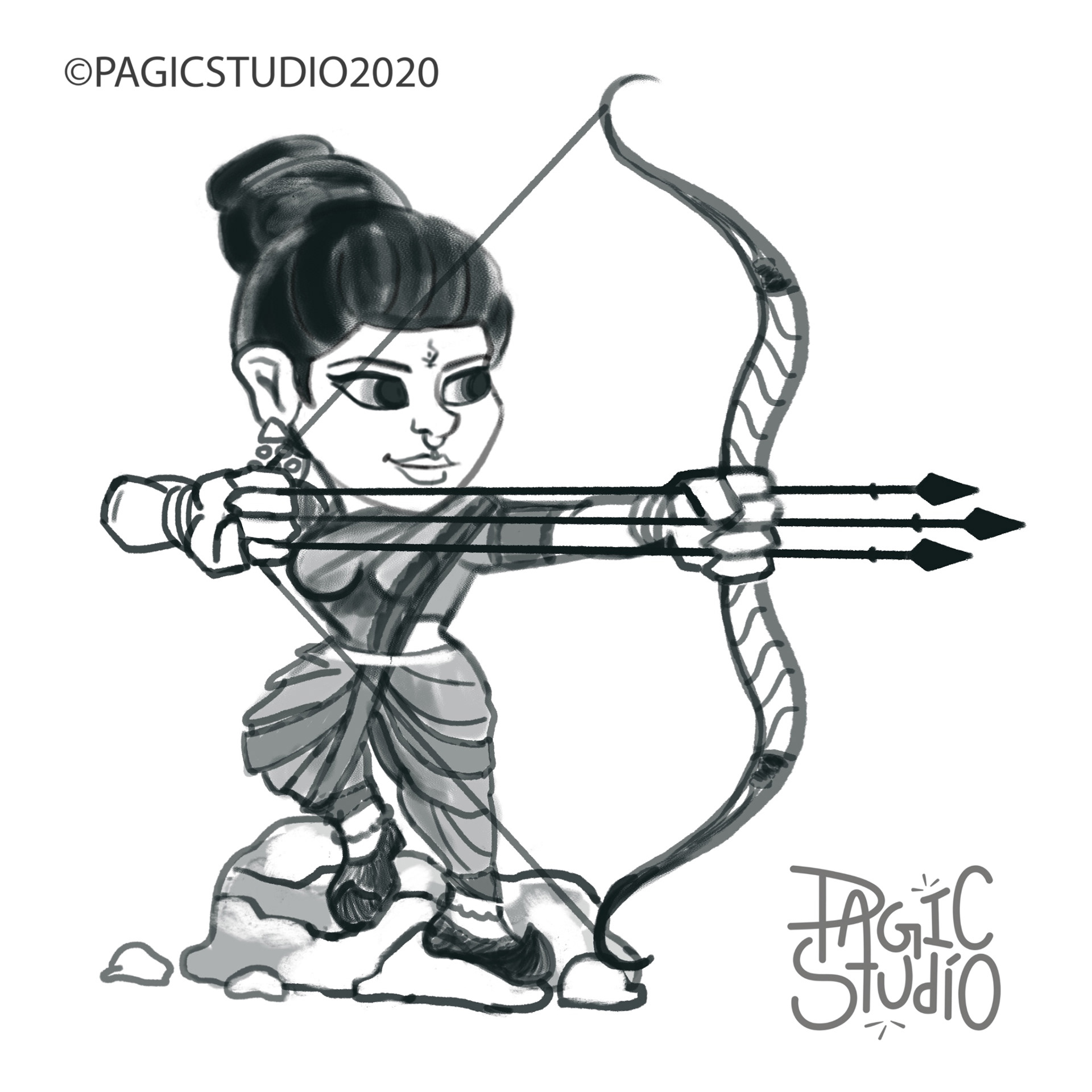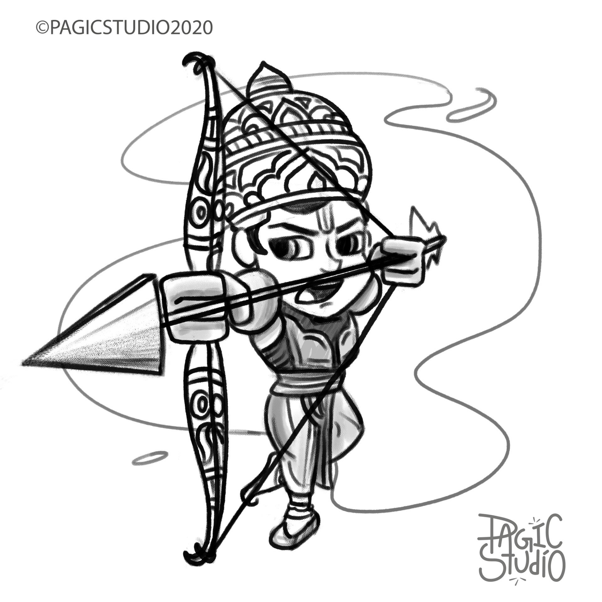 Arjuna, a warrior king from Indian Mythology, He is known for his skill in archery and ambidexterity.