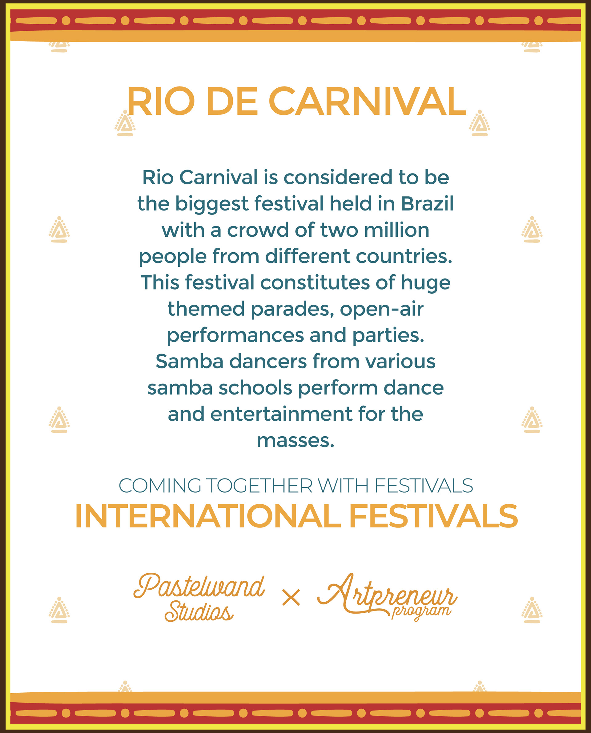 Rio Carnival is considered to be the biggest festival held in Brazil with a crowd of two million people from different countries. This festival constitutes of huge themed parades, open-air performances and parties. Samba dancers from various samba school perform dance and entertainment the mass crowd.