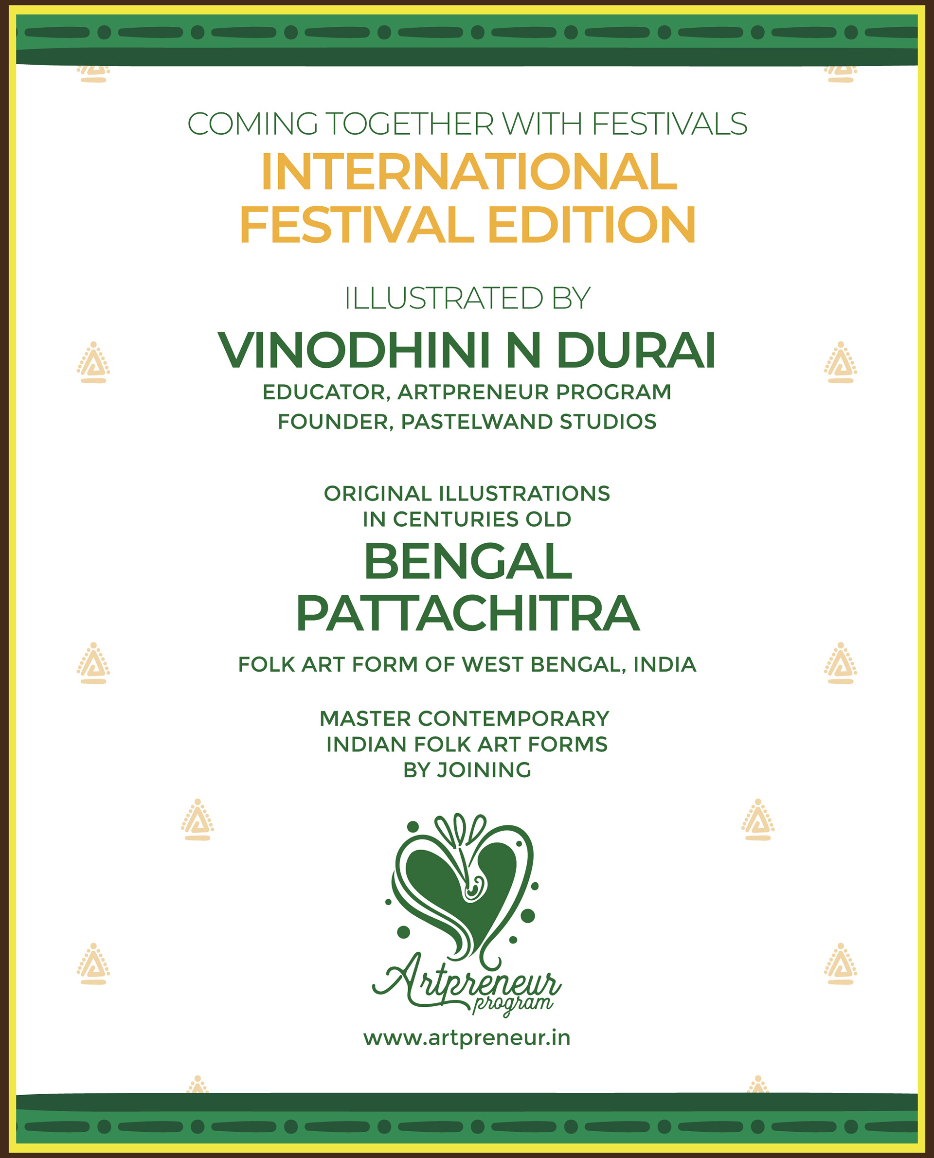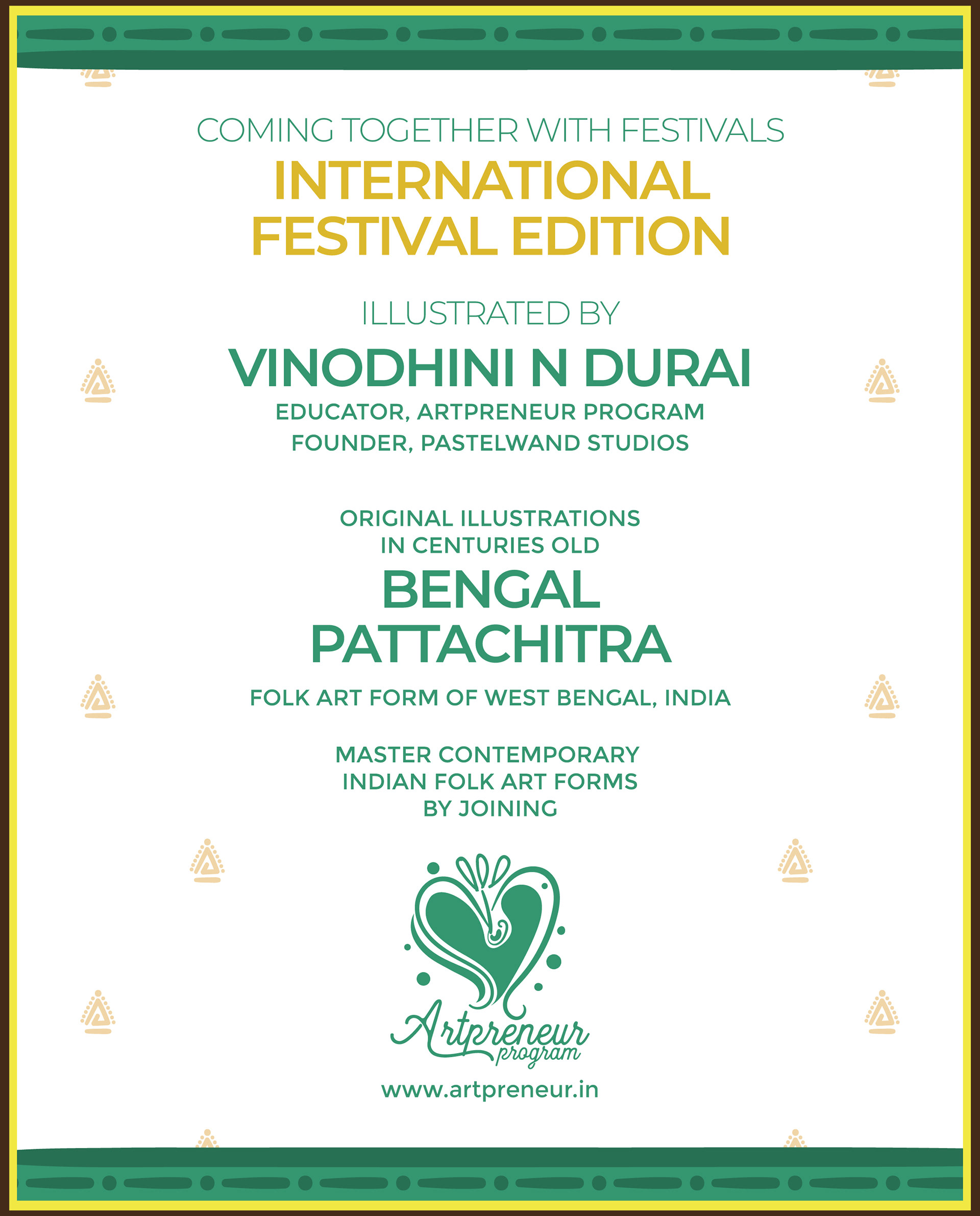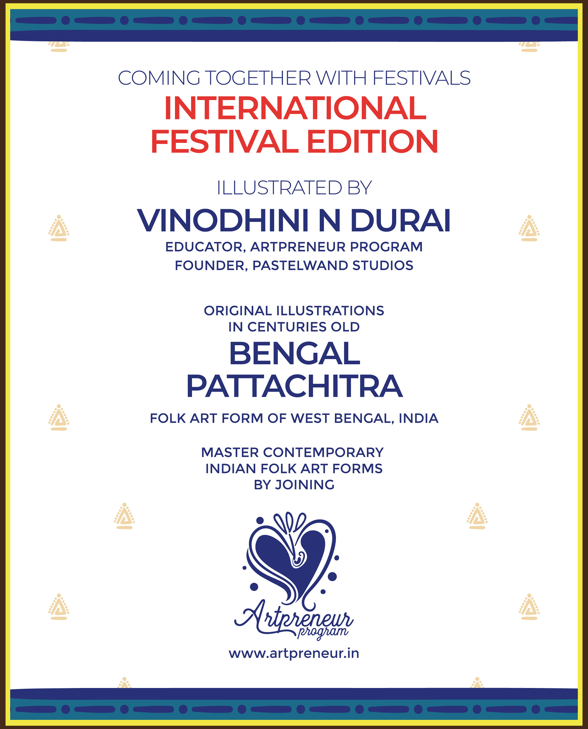 Original Illustrations inspired by Bengal Pattachitra, folk art form of West Bengal, India. In partnership with Artpreneur Program