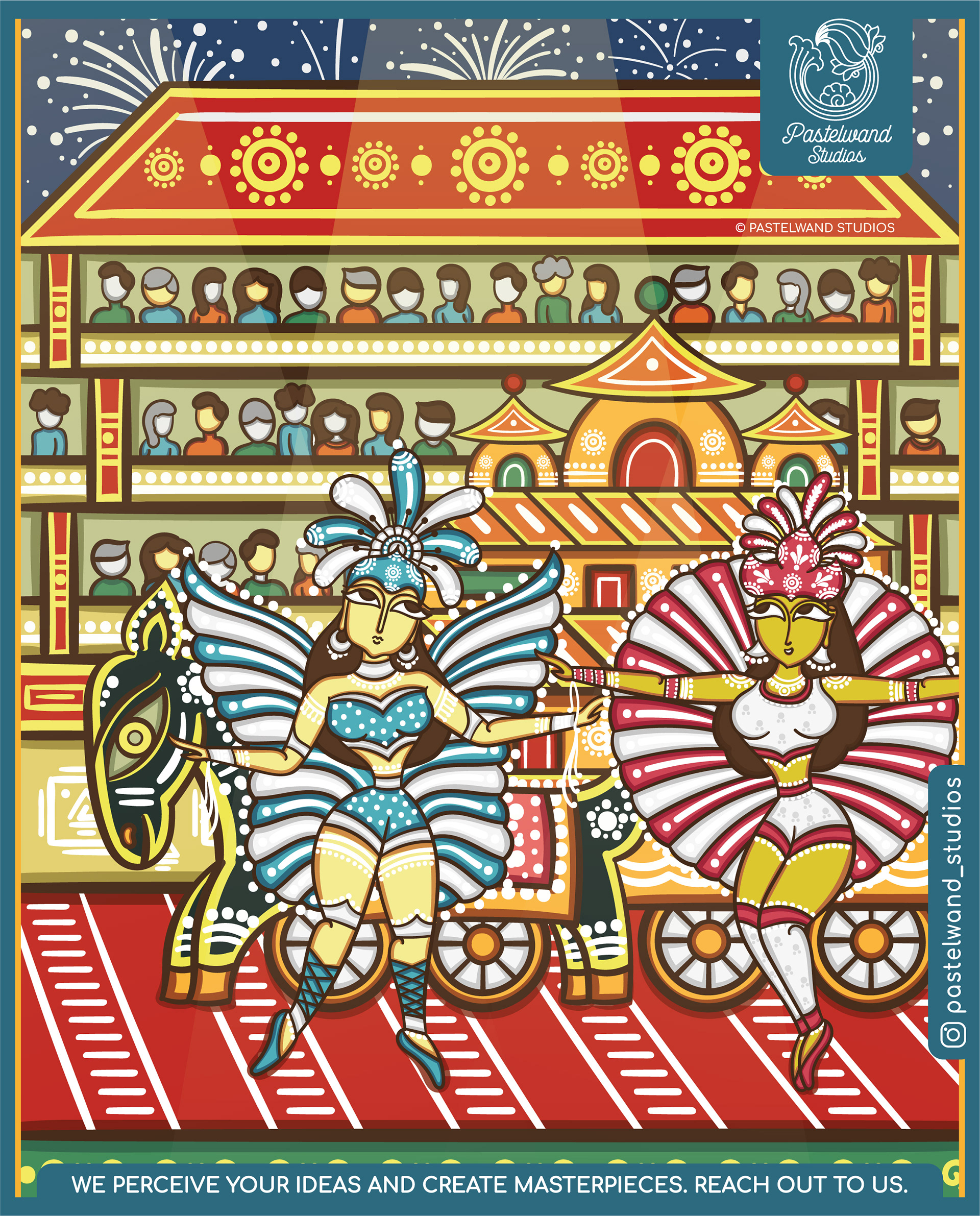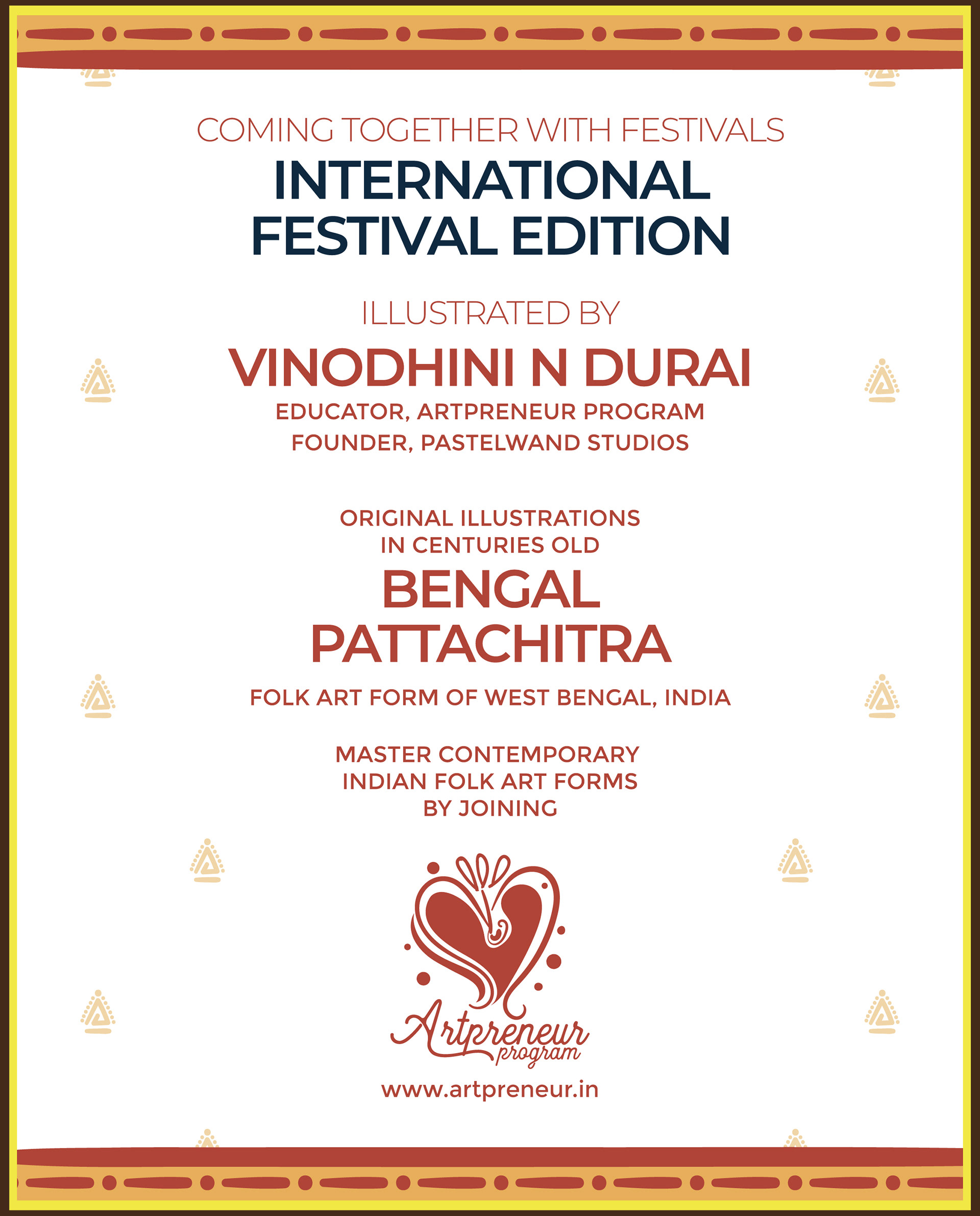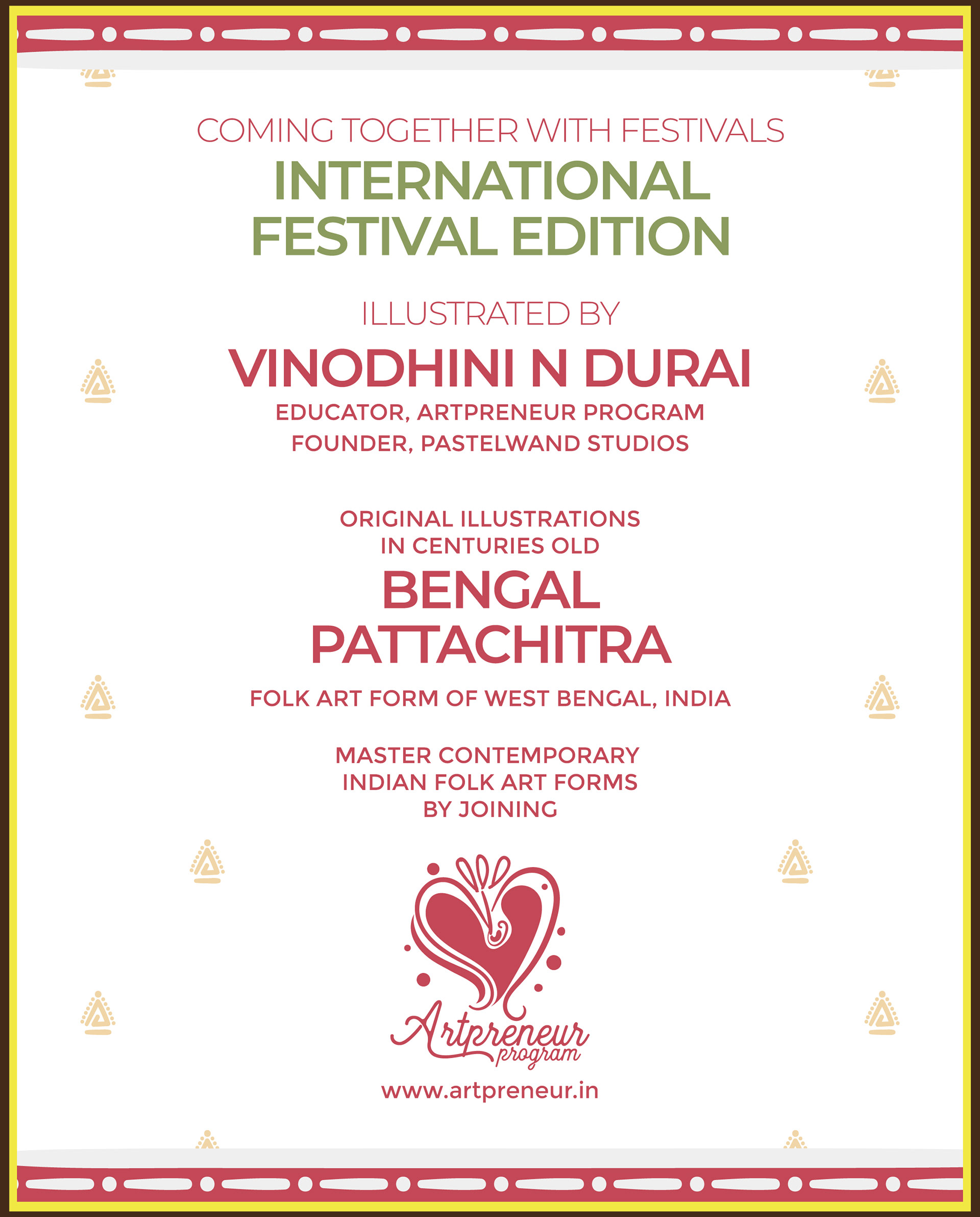 Original Illustrations inspired by Bengal Pattachitra, folk art form of West Bengal, India. In partnership with Artpreneur Program