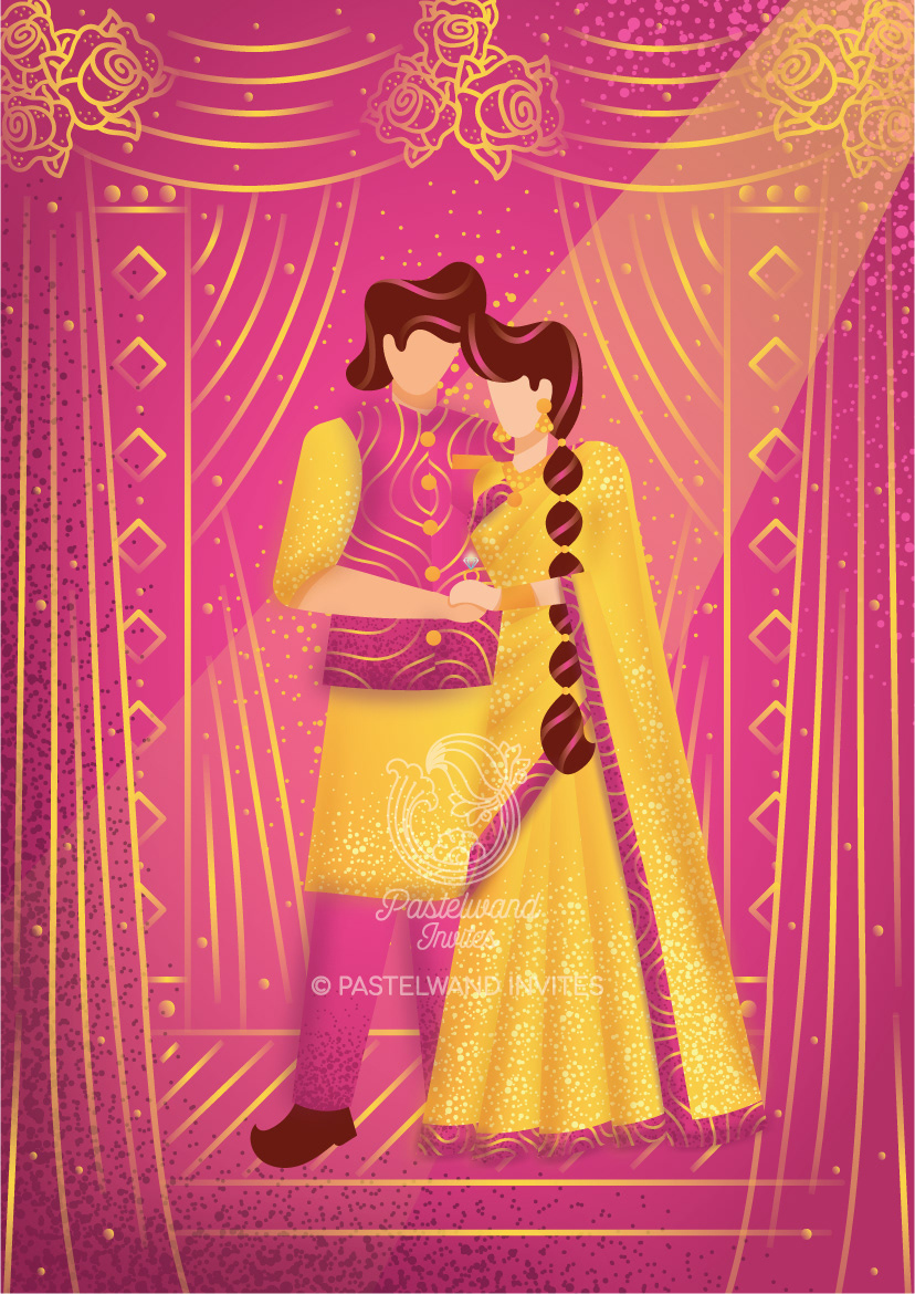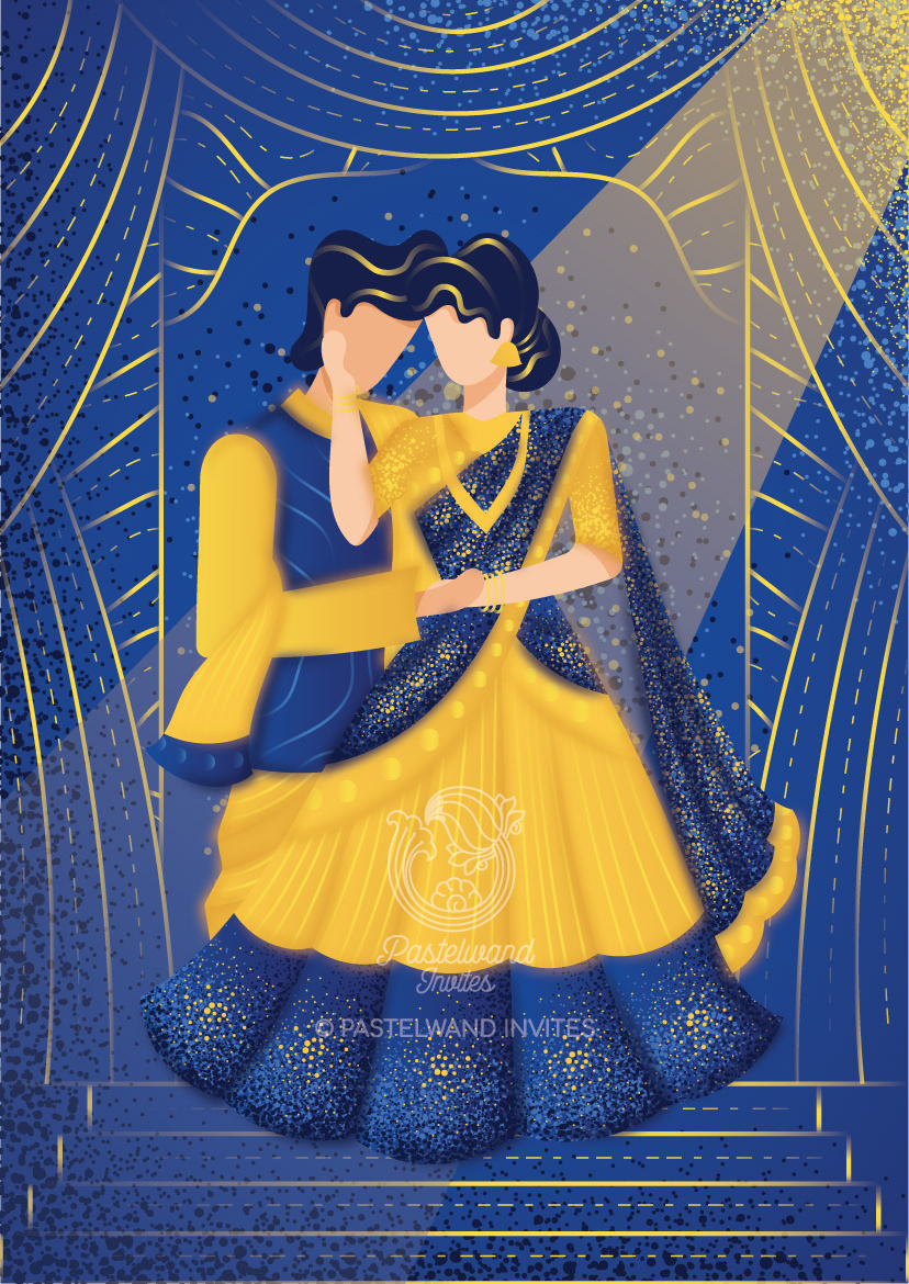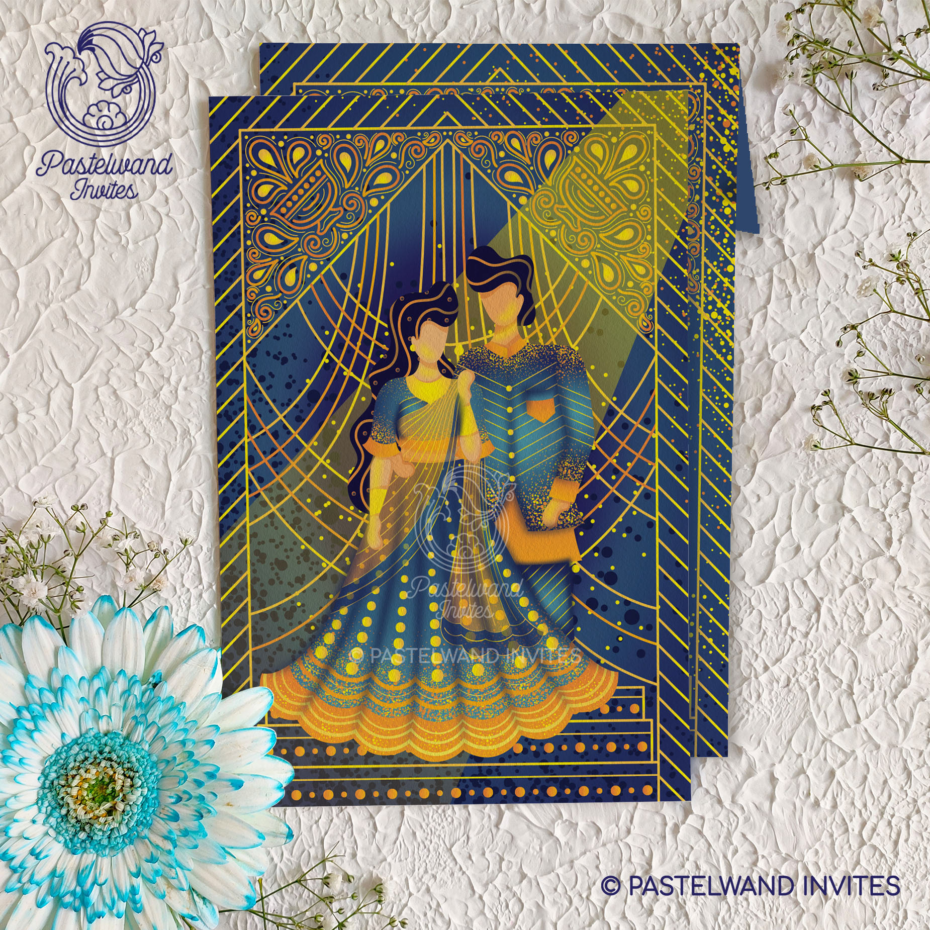 Our Classy Art Deco Wedding Invite Suite includes invites for the main wedding, along with other events such as Engagement, Haldi, Mehendi, Sangeet and the Reception!