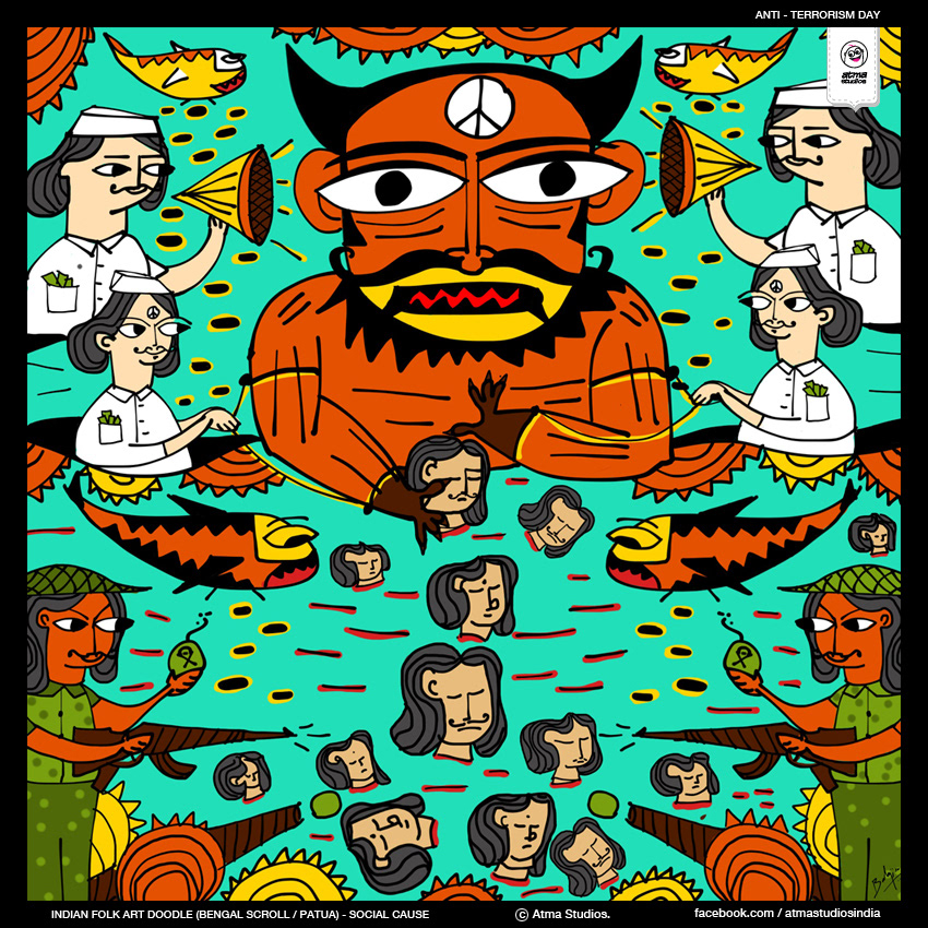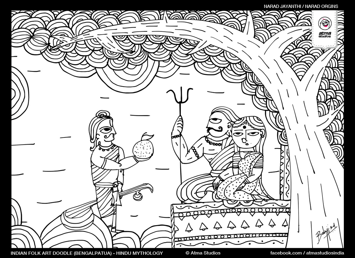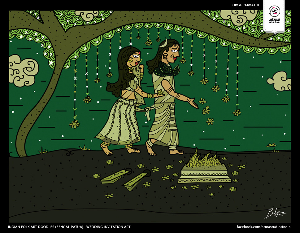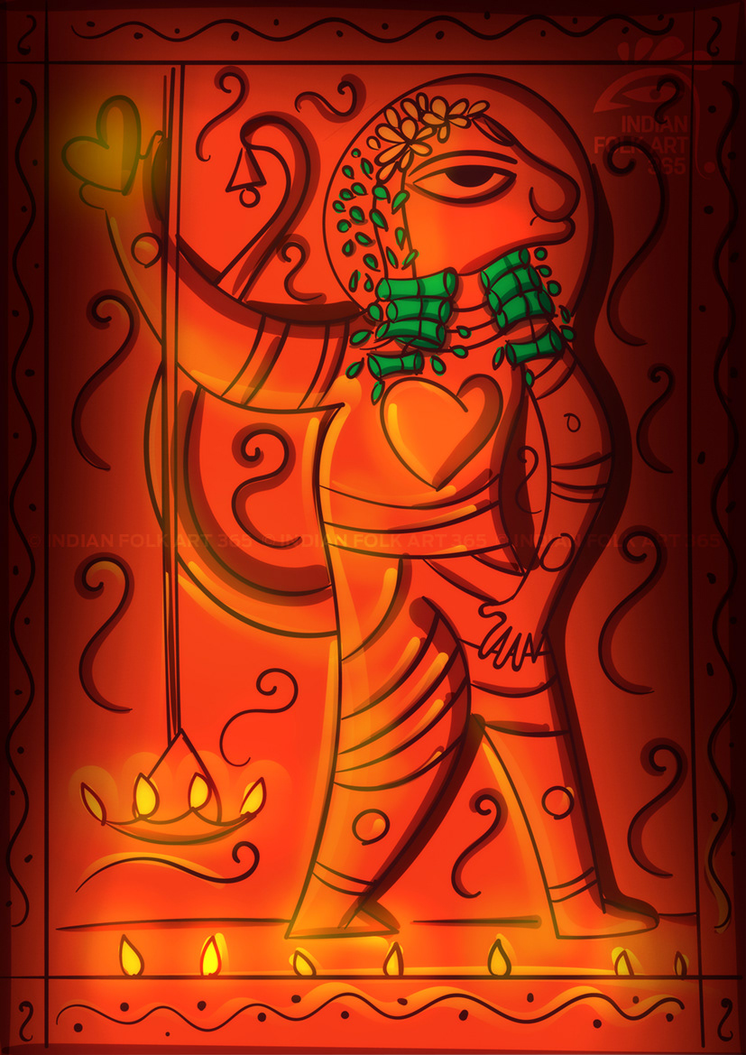 Illustrated by SCD Balaji, Illustration Style Inspired by Centuries Old Bengal Patua Indian Folk Art of West Bengal, India.