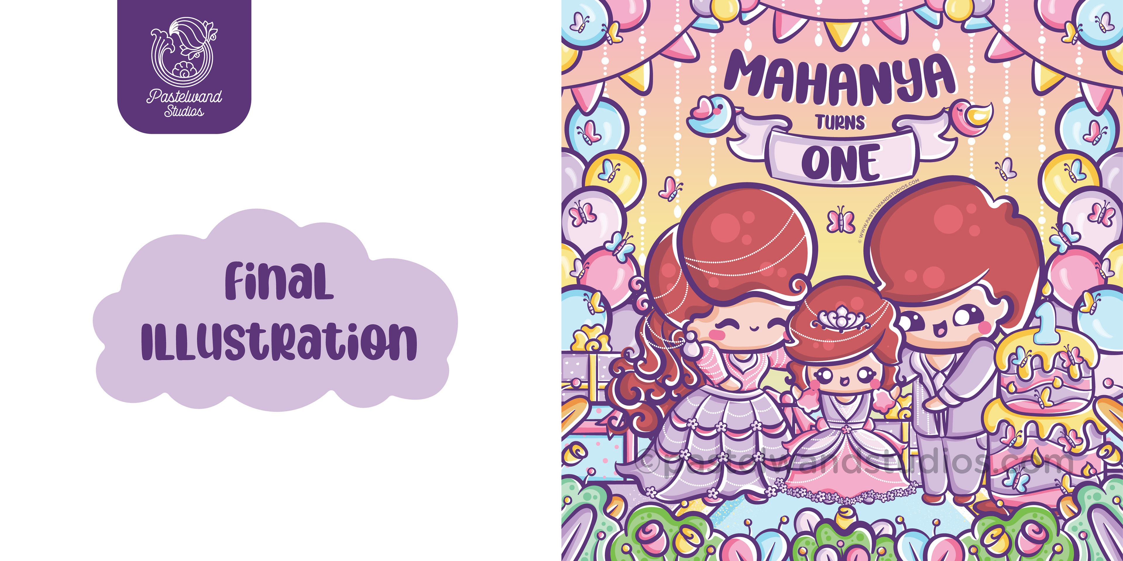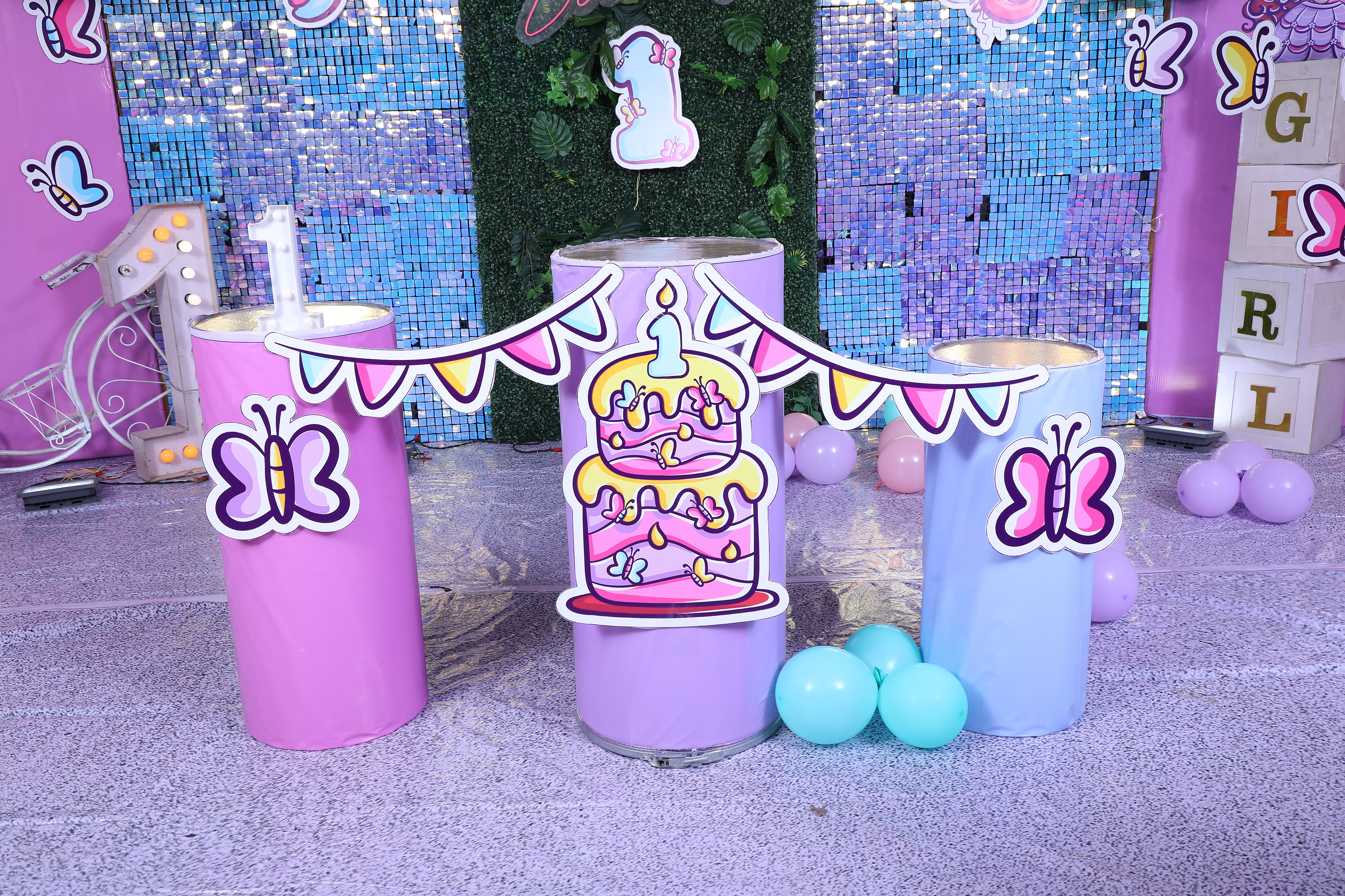 "Celebrating the magic of turning one with a burst of colors and cuteness! 🎉✨ This pastel paradise captures the joy and wonder of a little girl’s first birthday, where butterflies dance, balloons float, and a family walks together, surrounded by love. Every detail—from the butterfly-themed cake to the bird-held banner—adds a touch of whimsy to this special day. 💖🦋