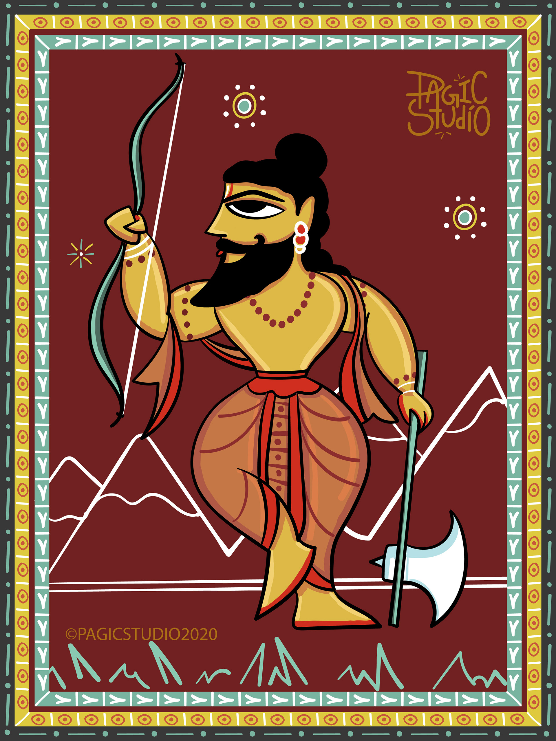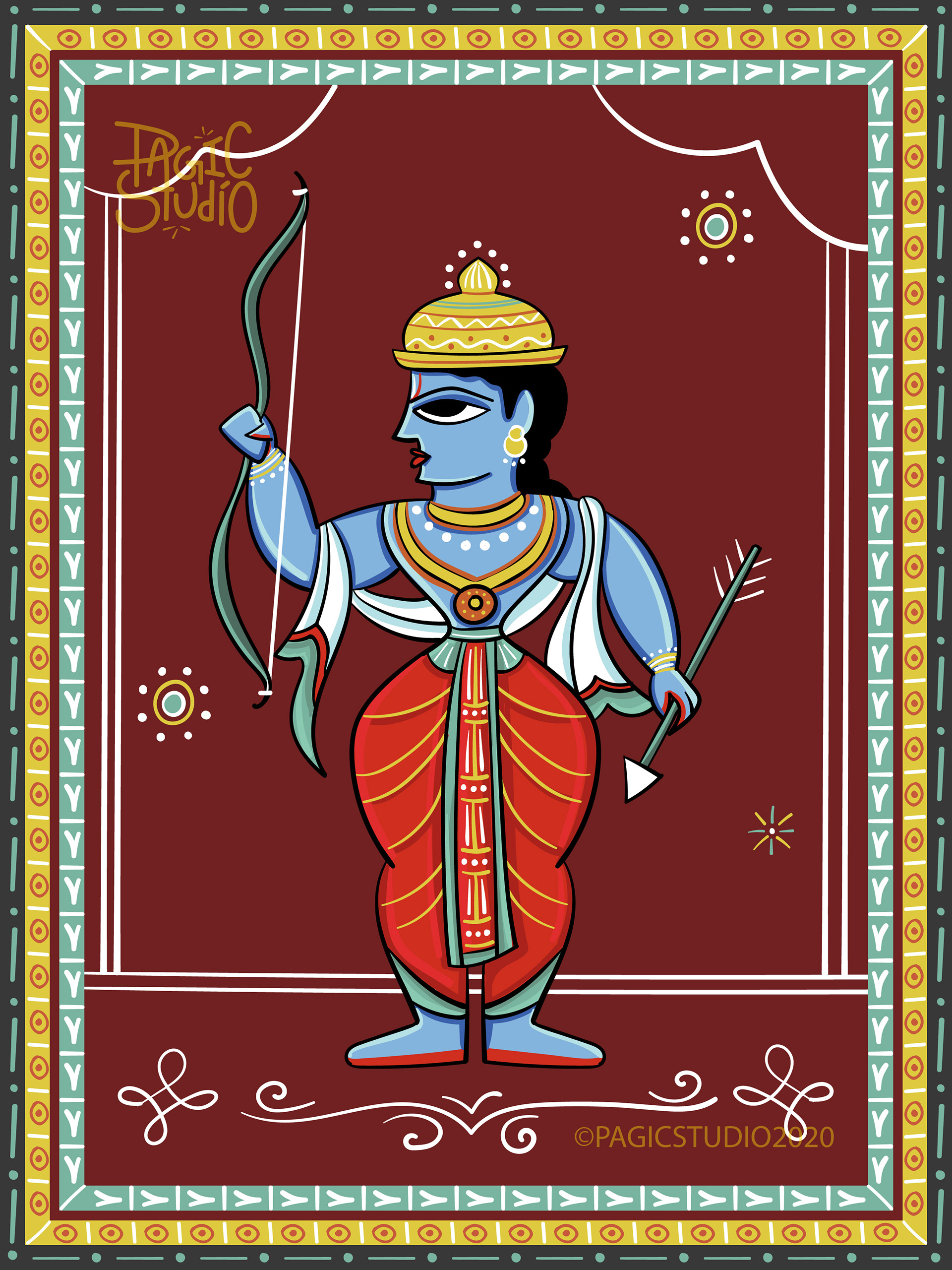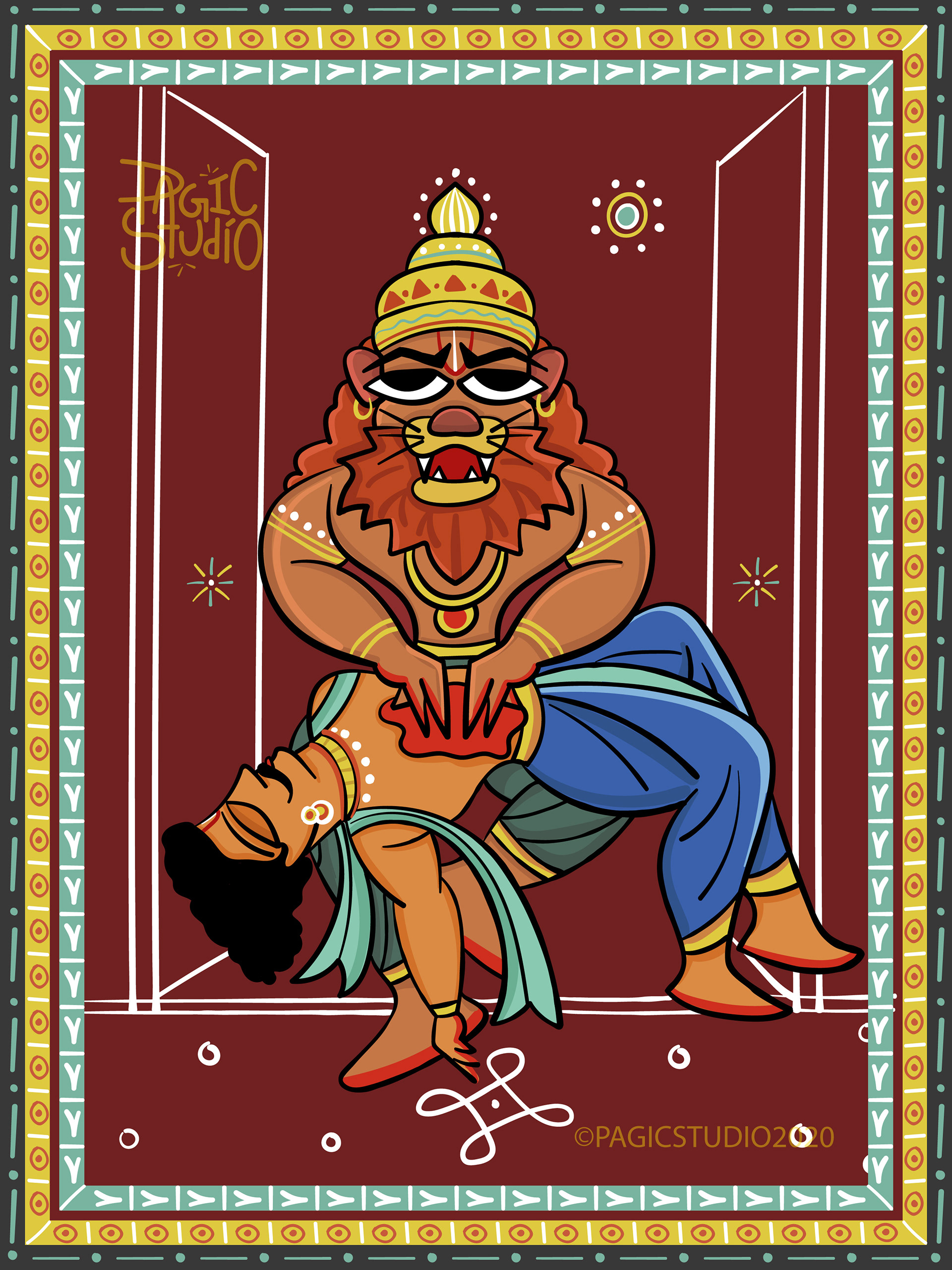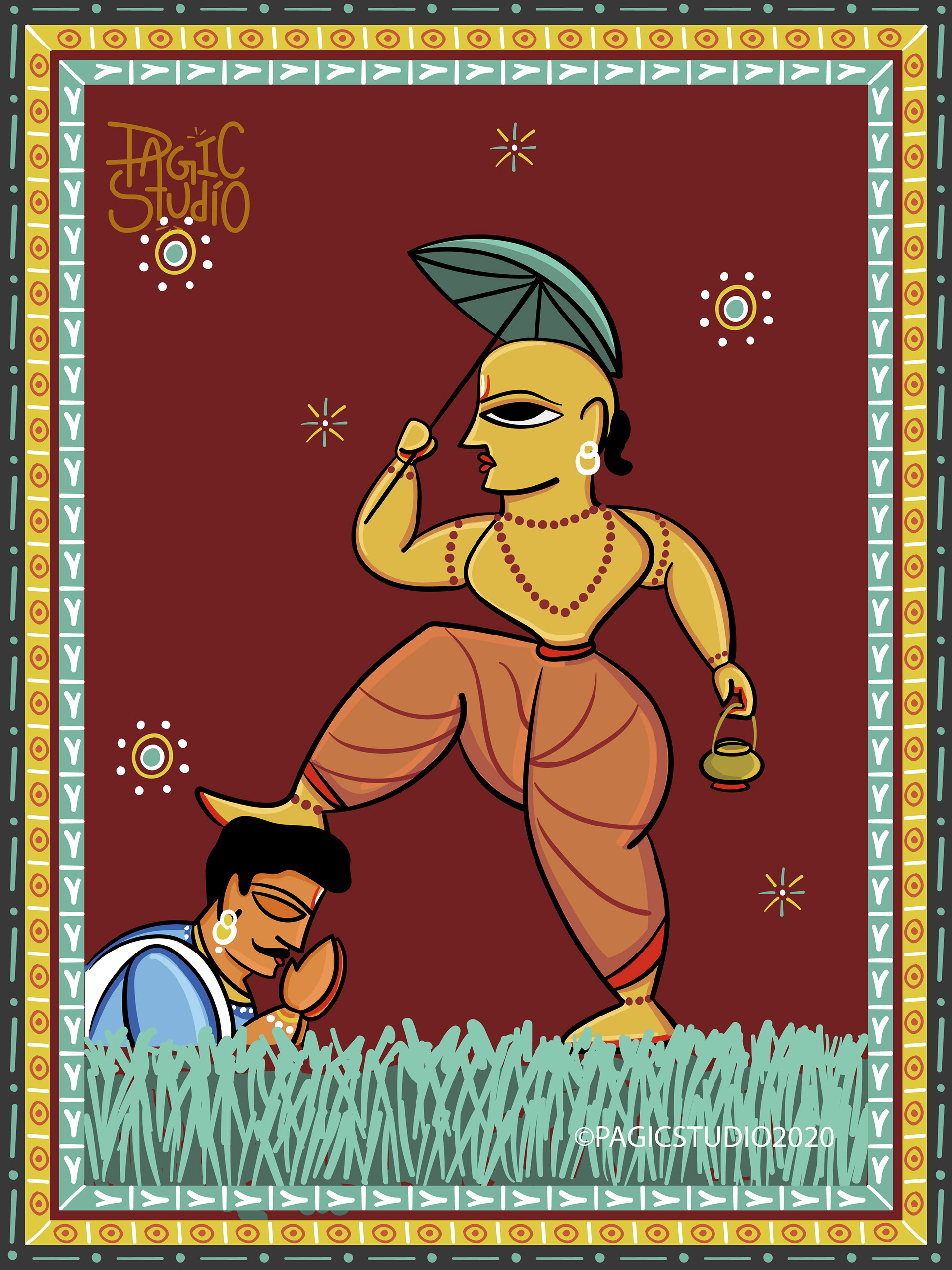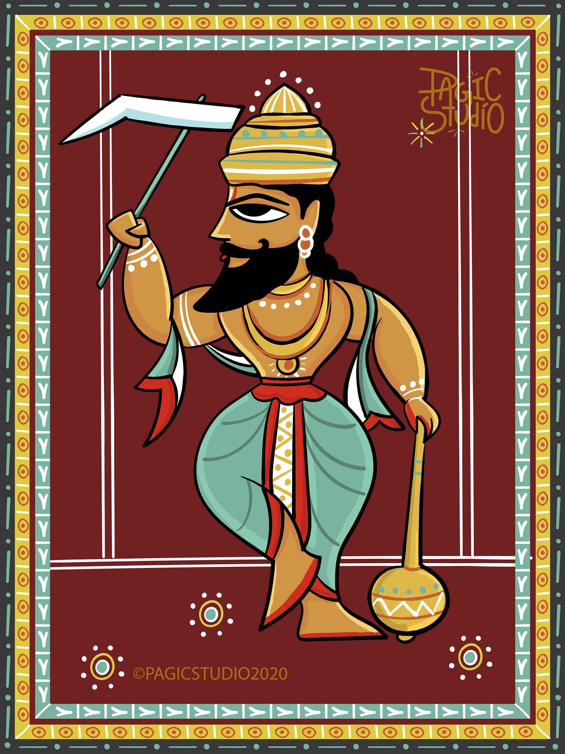 According to Hindu mythology, every time there was an evil overdose on earth, Lord Vishu would reincarnate in different avatars, so that he could end the evil and free the world from its clutches. The 'Dasavatar' stories are so fascinating that they got us interested in this project, where we attempted to illustrate those avatars in 'Bengal Patua' Style, an Indian Folk Art form.