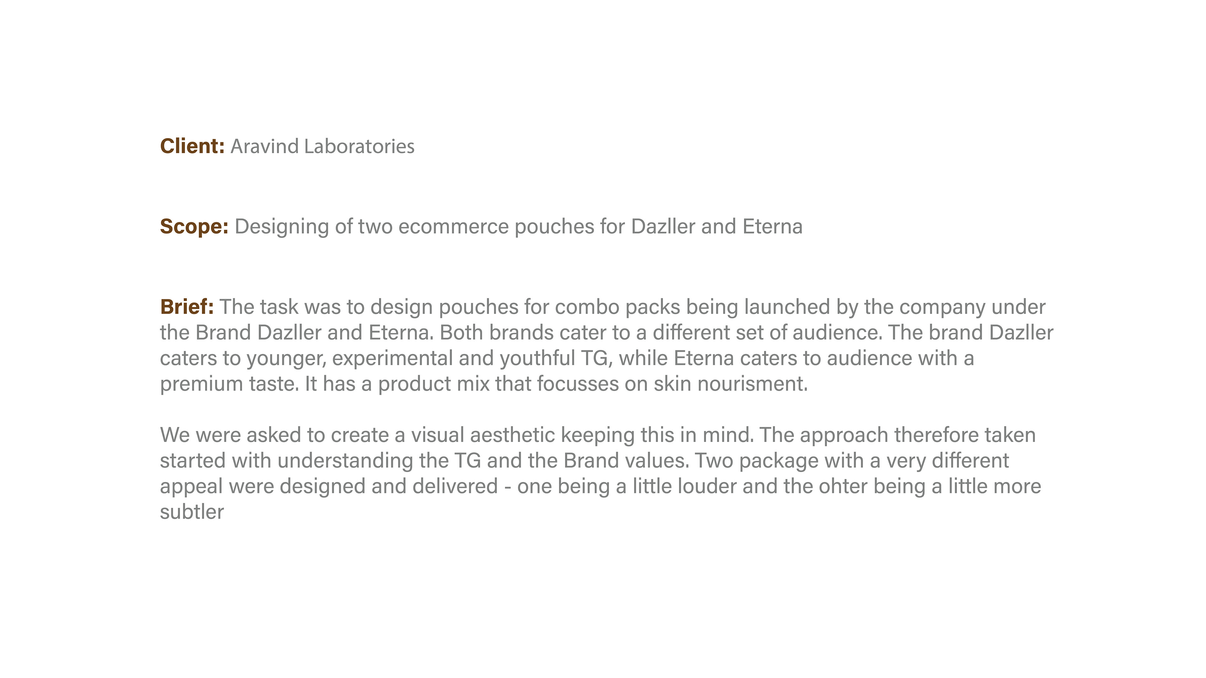 E-commerce pouch package design done for Aravind Laboratories for the launch of their combo packs to be listed on platforms like Flipkart and Amazon.