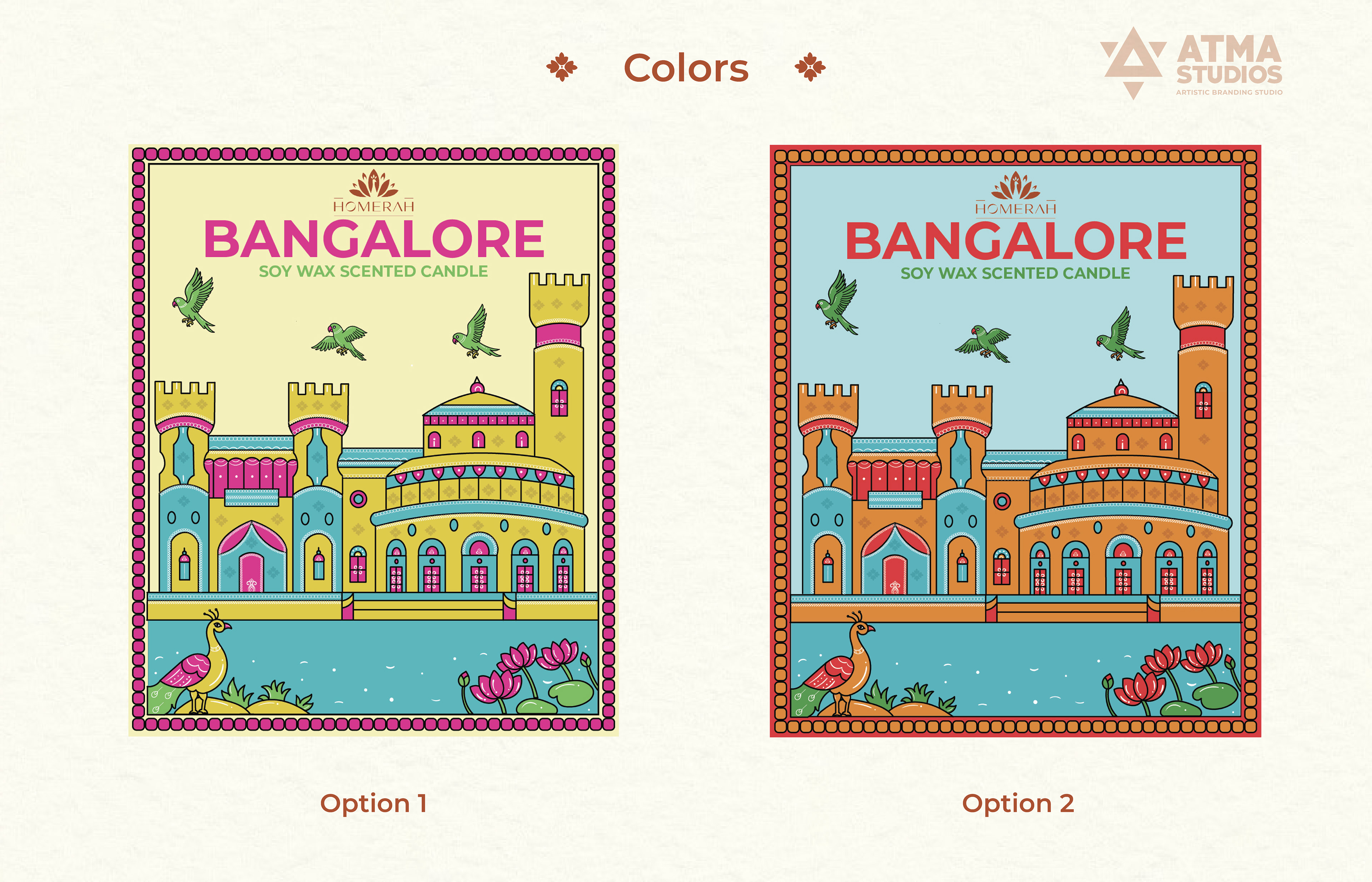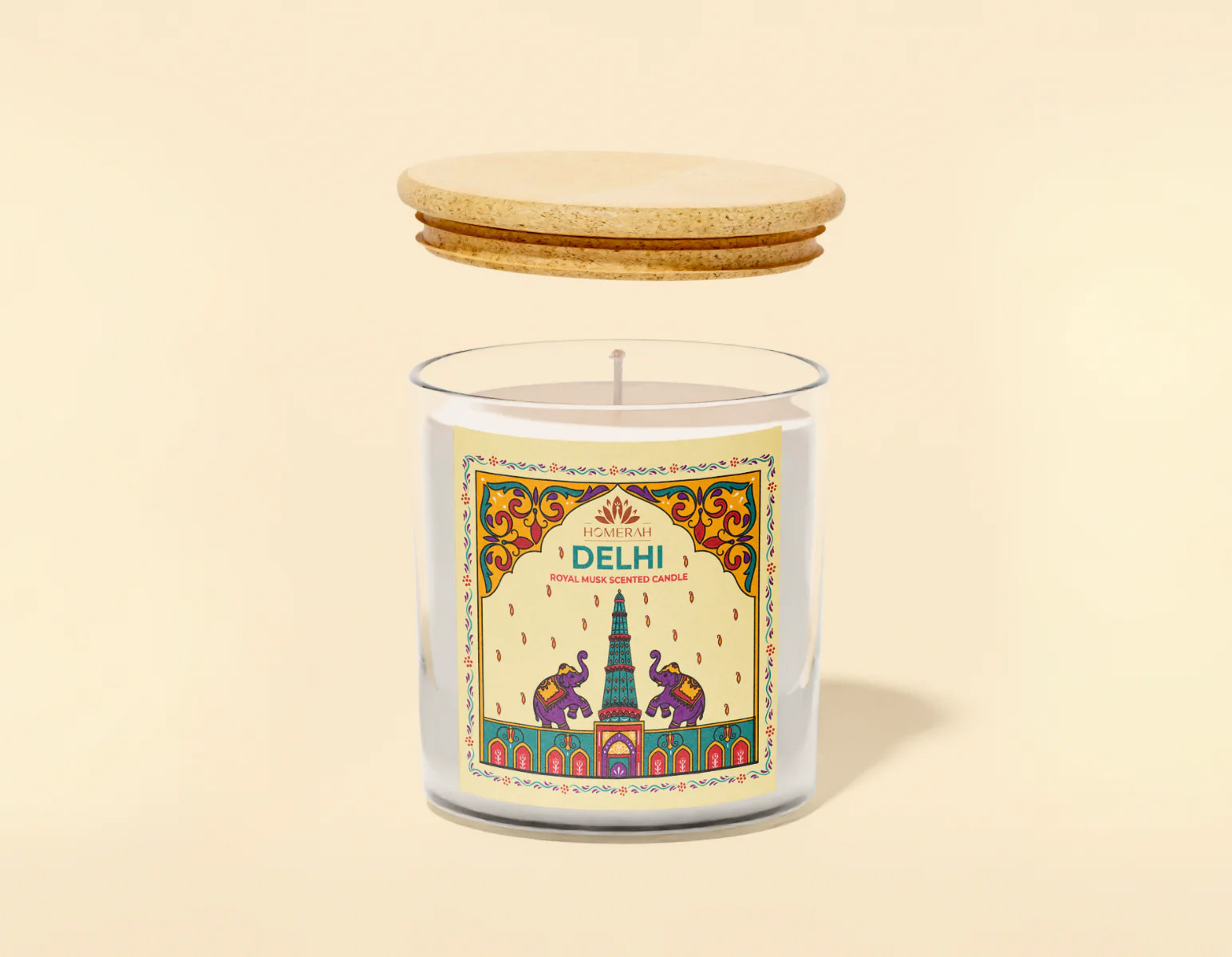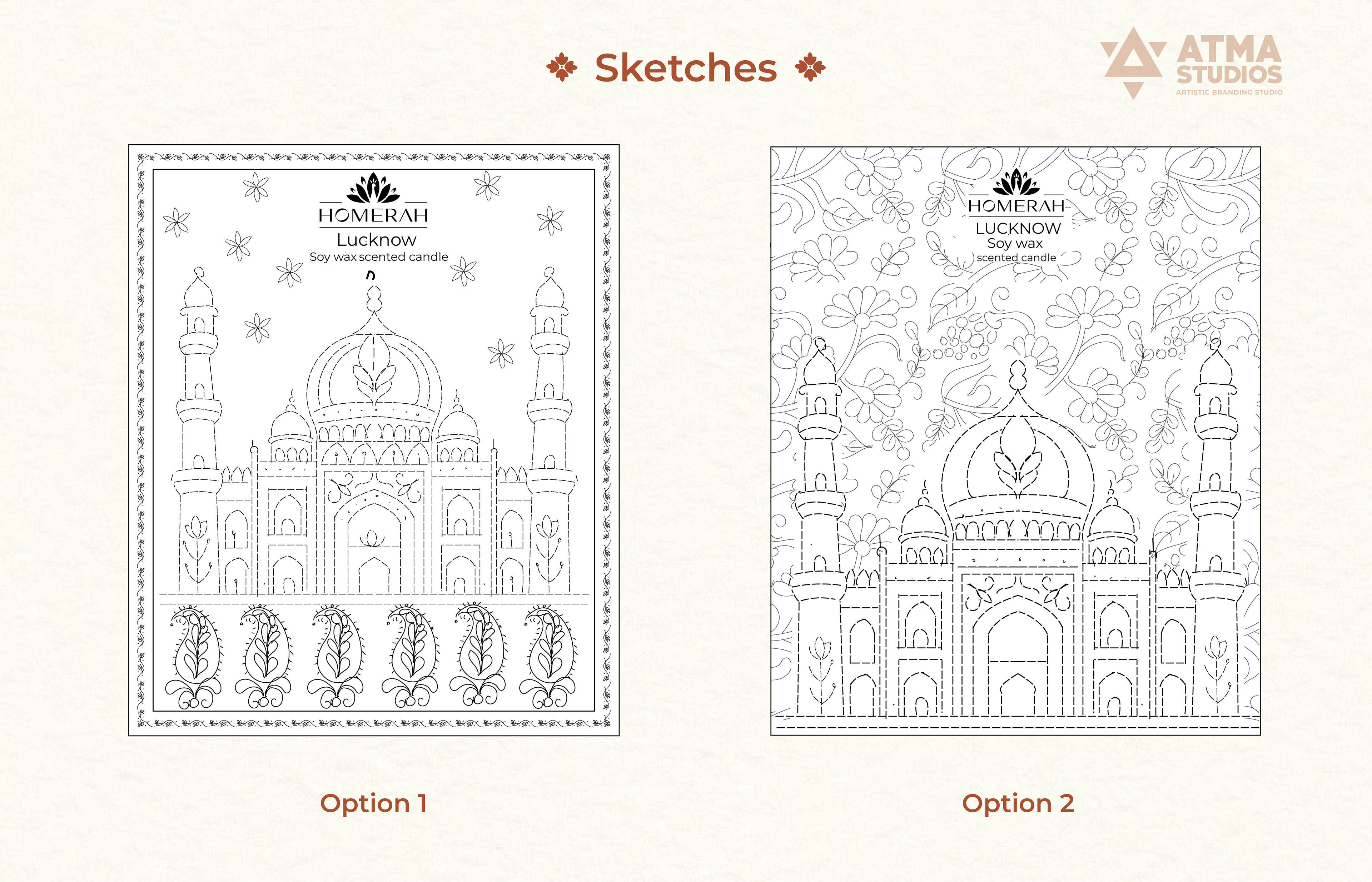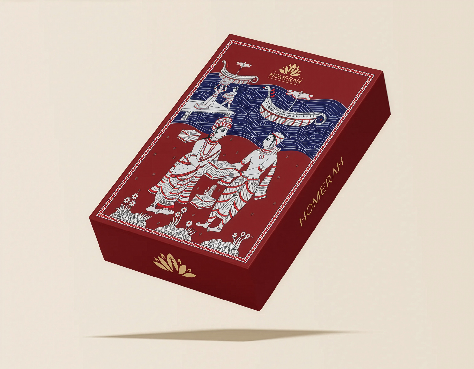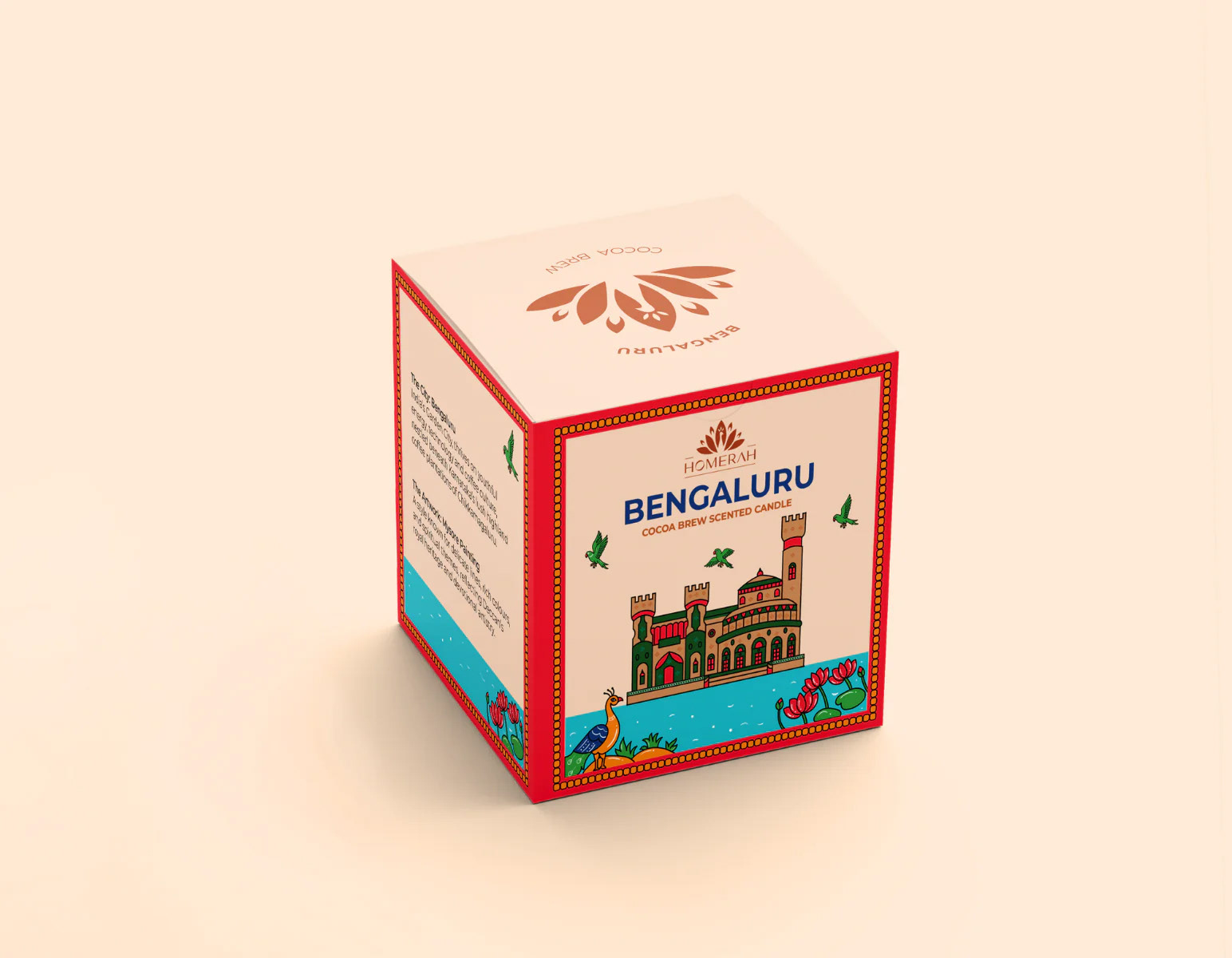 A premium incense candle and gift box design project for Homerah, inspired by India’s rich cultural heritage. Completely visualised and designed by Atma Studios. Each label and package artwork translates iconic cities, traditional art forms and heritage narratives into contemporary illustrations, creating a cohesive, luxurious visual identity across the product range.