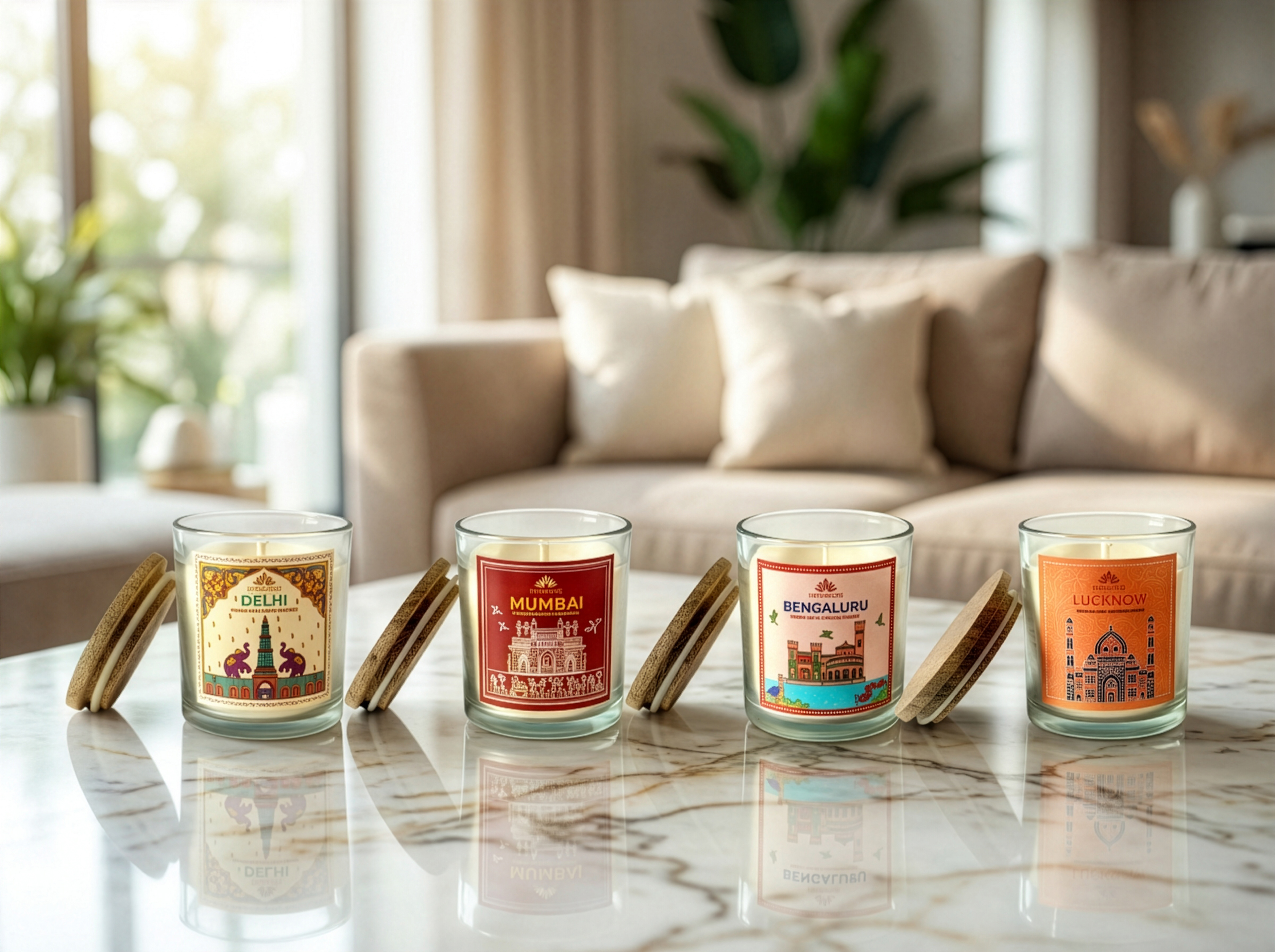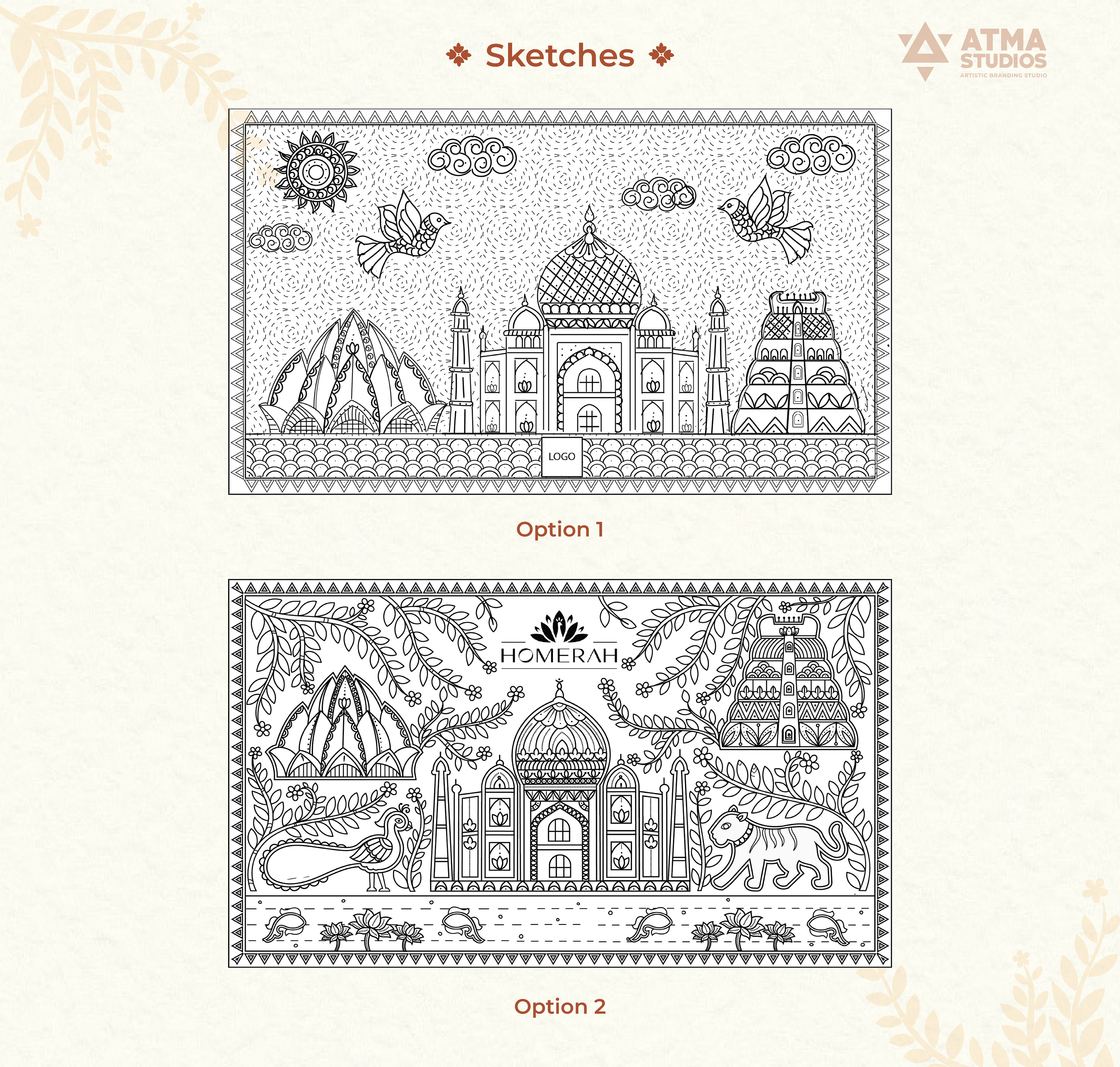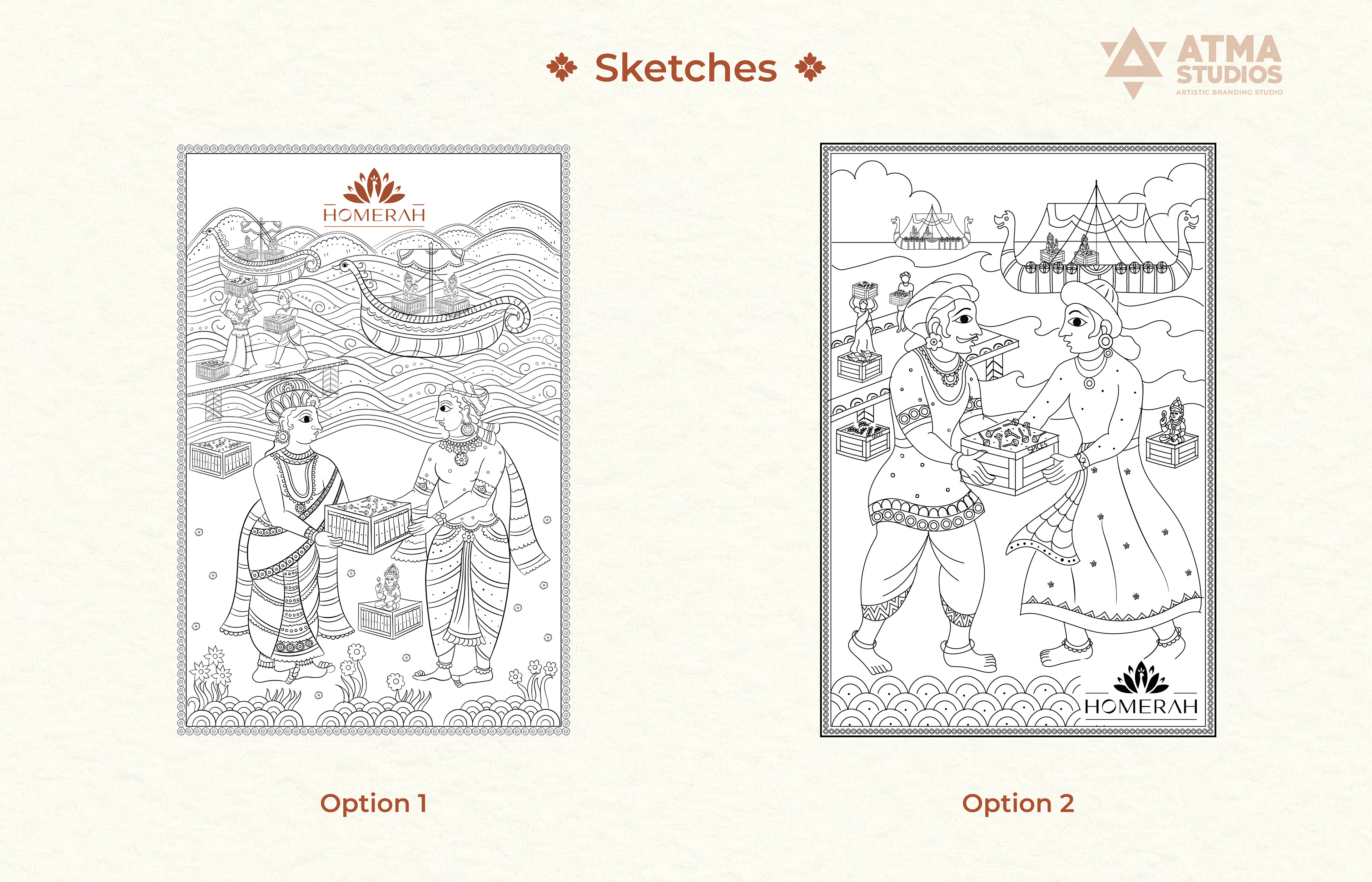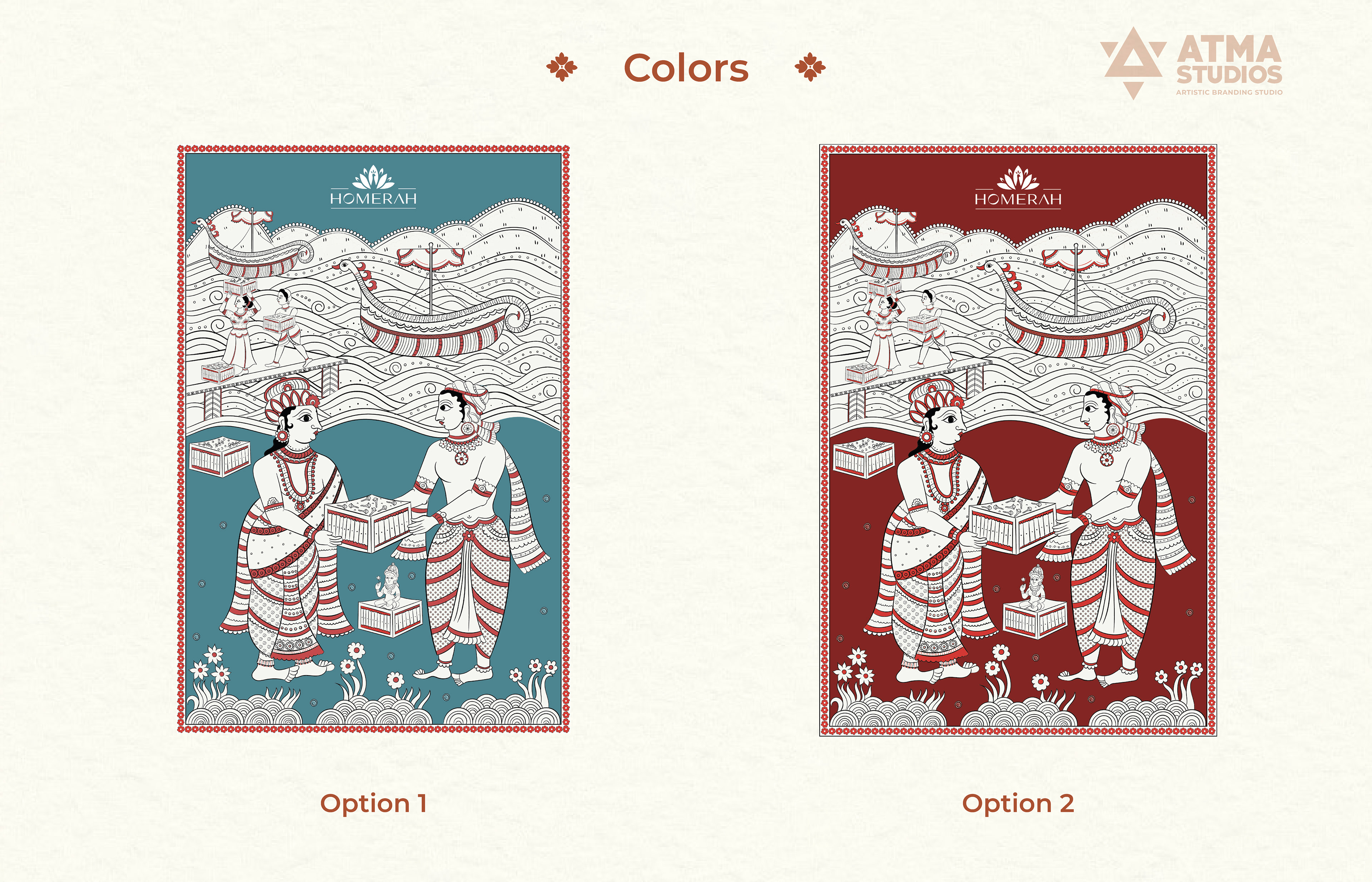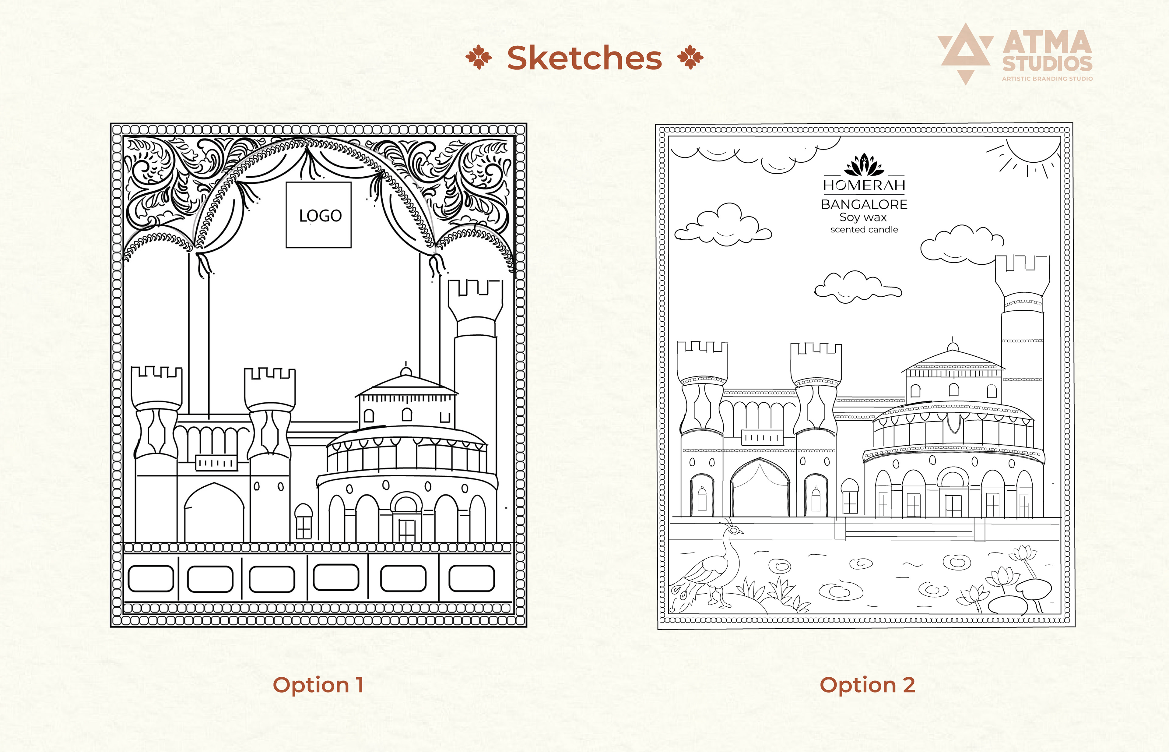 A premium incense candle and gift box design project for Homerah, inspired by India’s rich cultural heritage. Completely visualised and designed by Atma Studios. Each label and package artwork translates iconic cities, traditional art forms and heritage narratives into contemporary illustrations, creating a cohesive, luxurious visual identity across the product range.