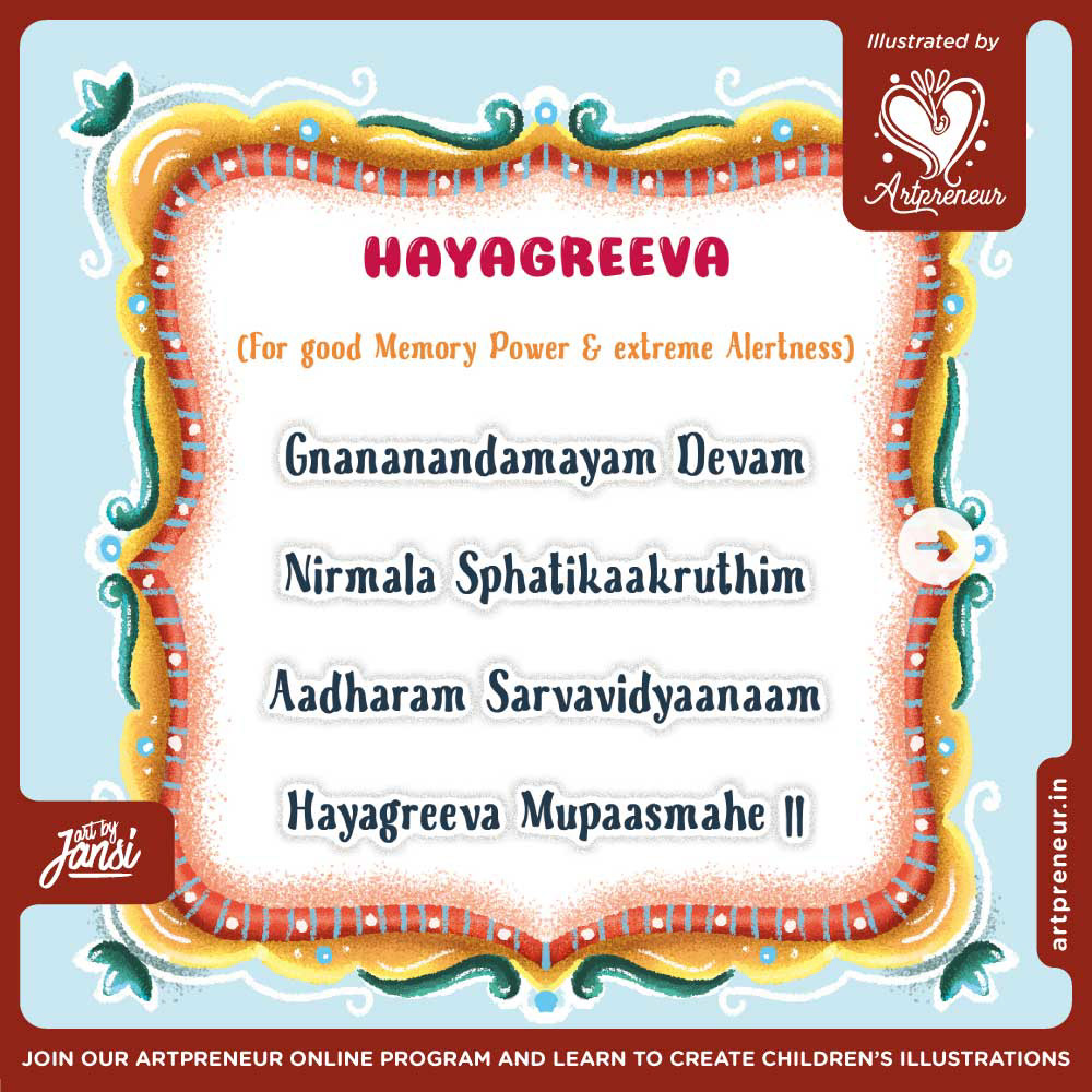 ord Hayagreeva is believed to be the source of all knowledge and is worshipped as the patron deity of students and scholars