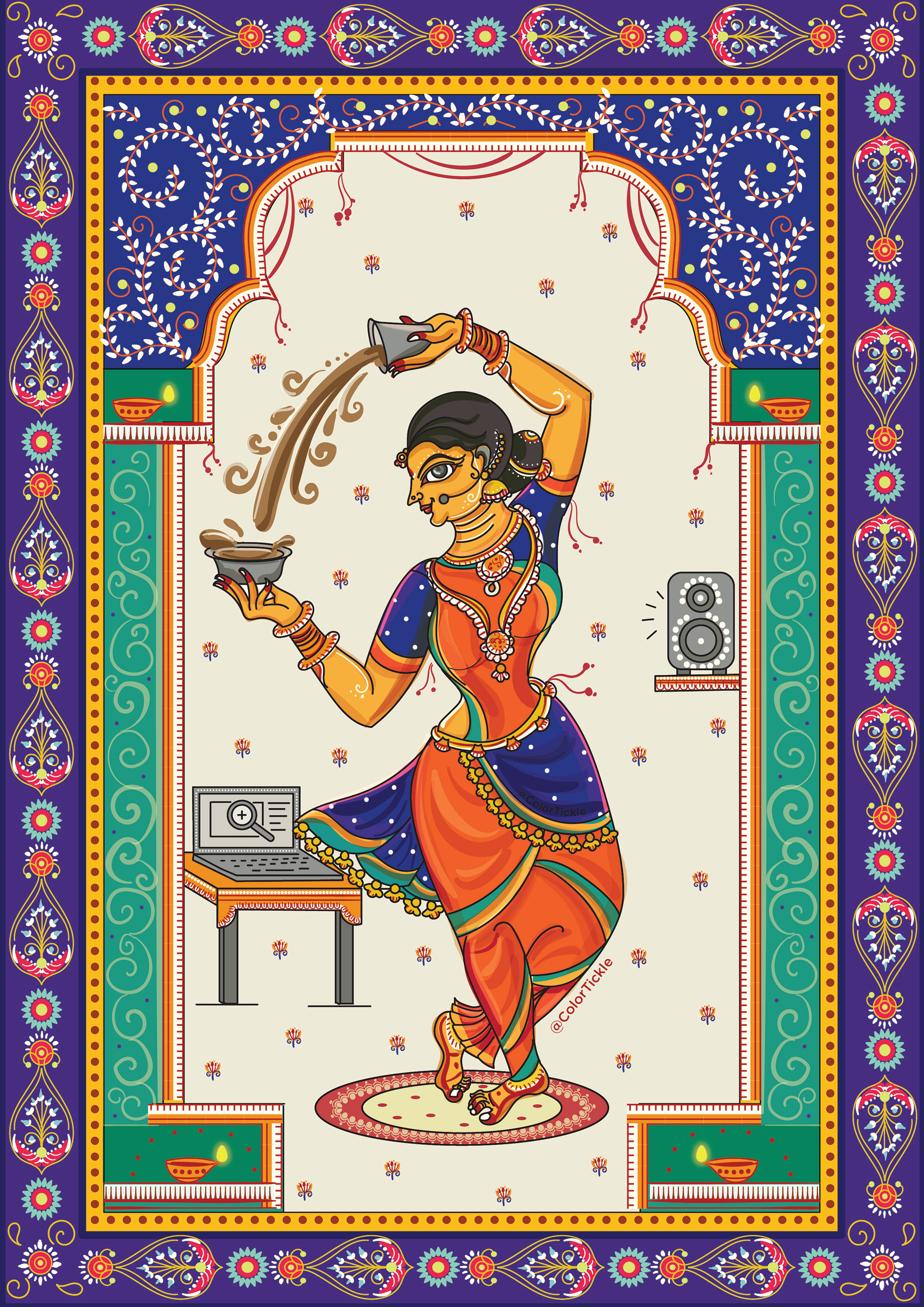 The below illustrations are done in the context of Deepavali / Diwali celebration in the post-pandemic world. they are done in a contemporary version of the folk art form
