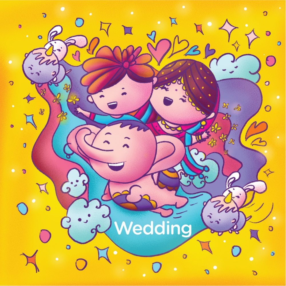 The illustration is the first of its kind in the Indian market. It draws its inspiration from the Japanese word 'Kawaii', which means 'cute'. The invite makes use of an Indianised style of Japanese Kawaii to emphasise on the magical moments during the marriage. As you enter a new phase of your life, the invite is set to make your day all the more enchanting.