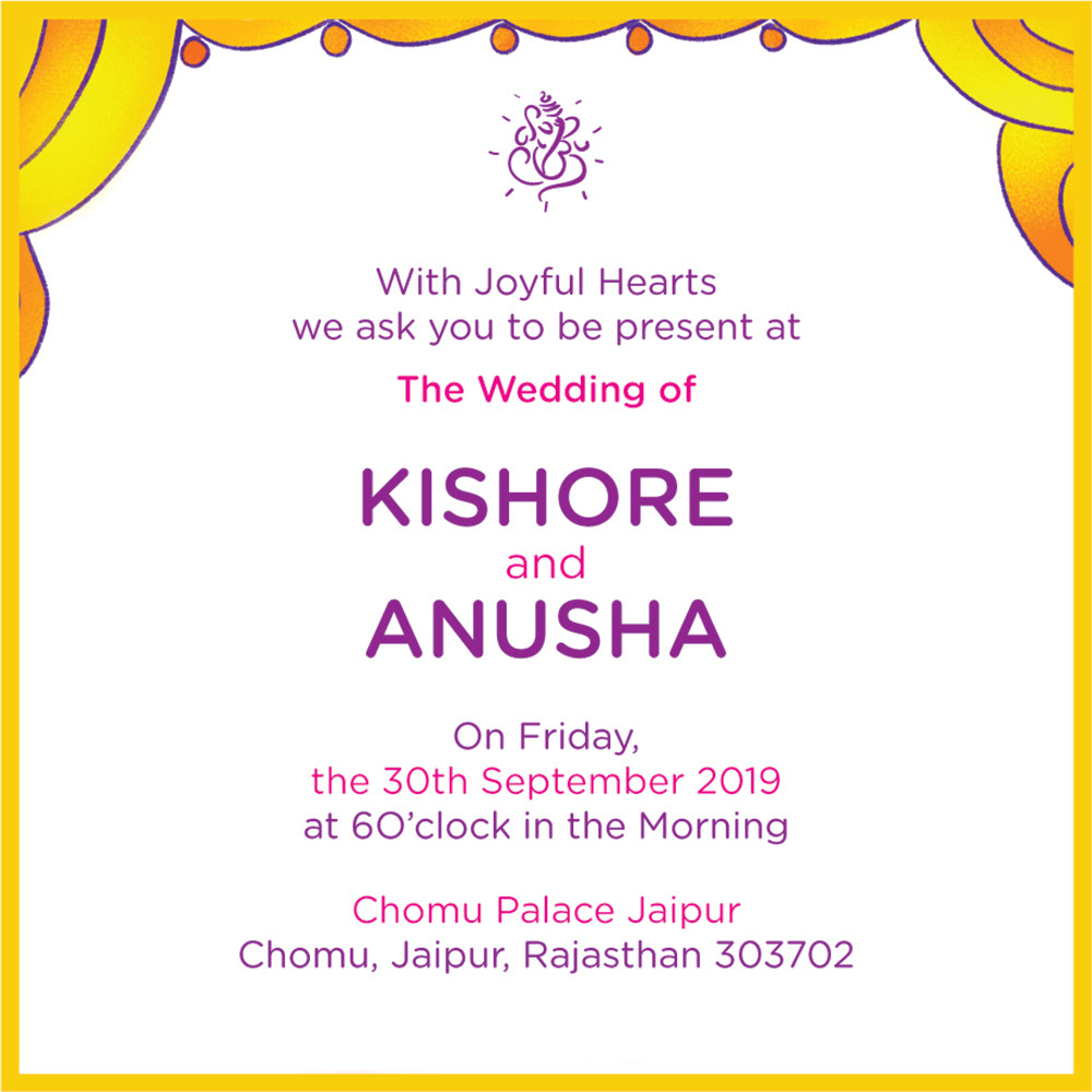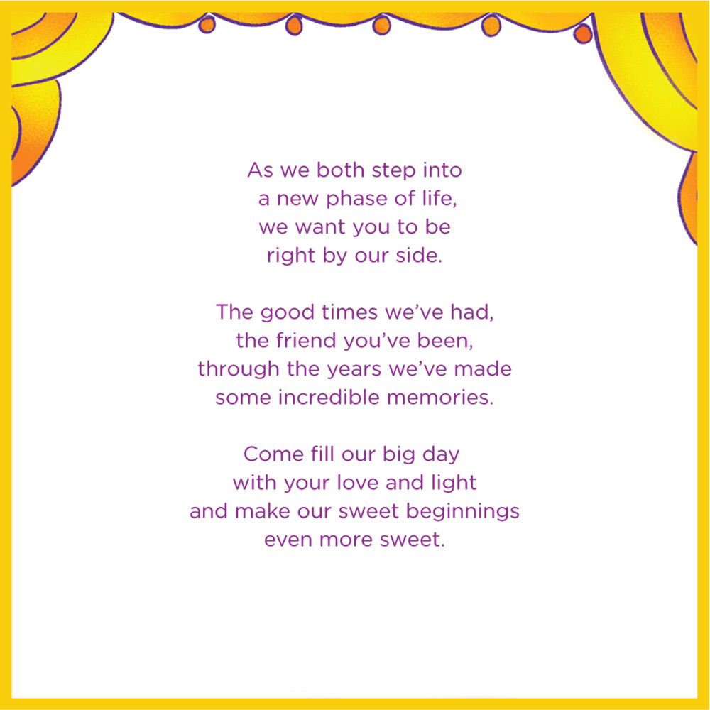 Reception: Reception is all about celebration. This invite indicates the joy and festivity surrounding the coming together of the couple.