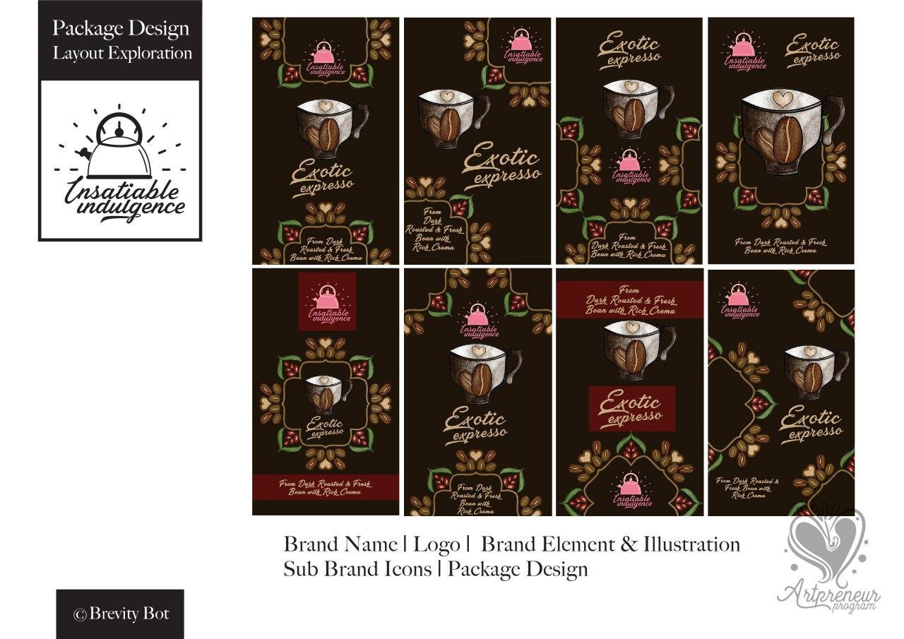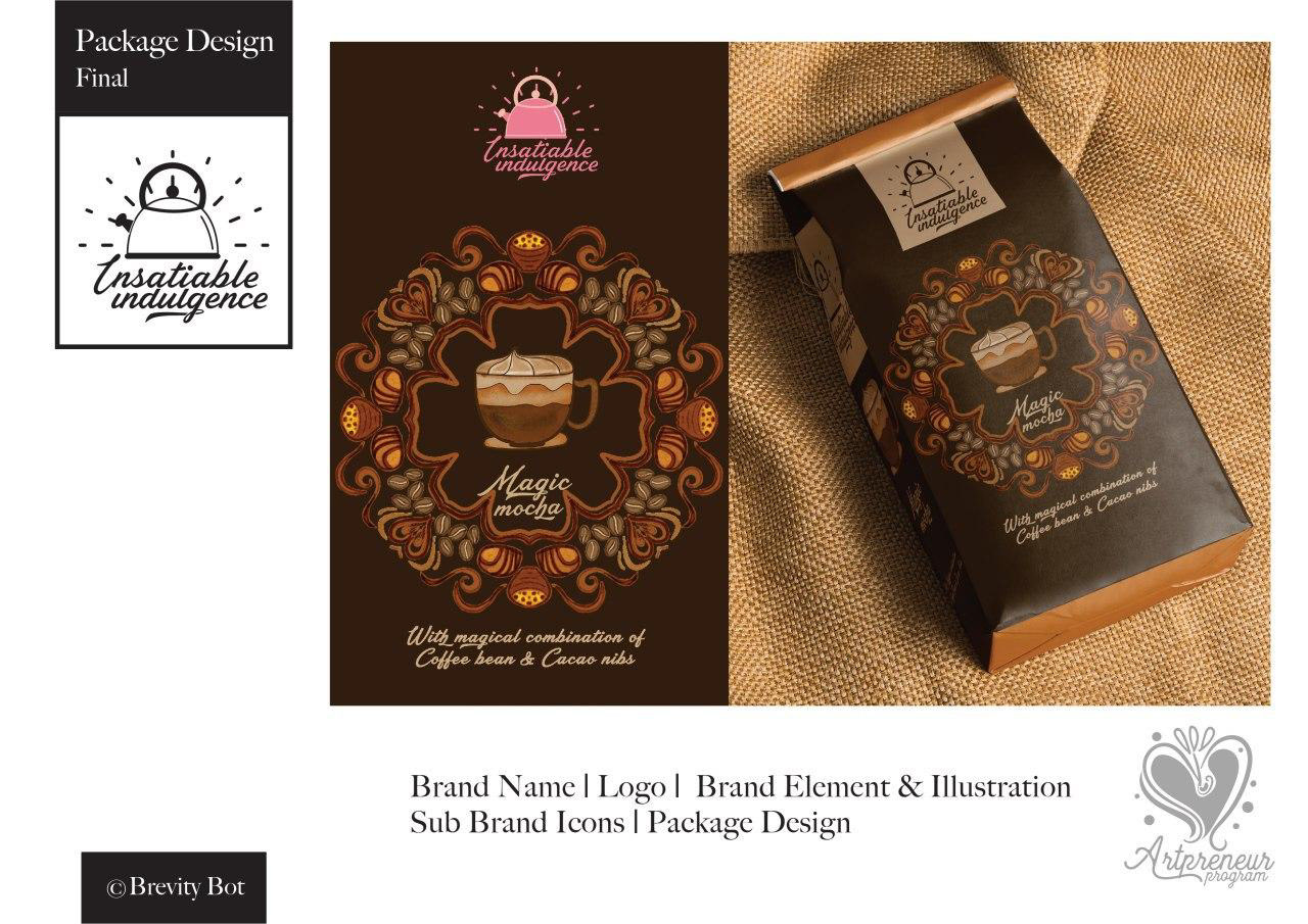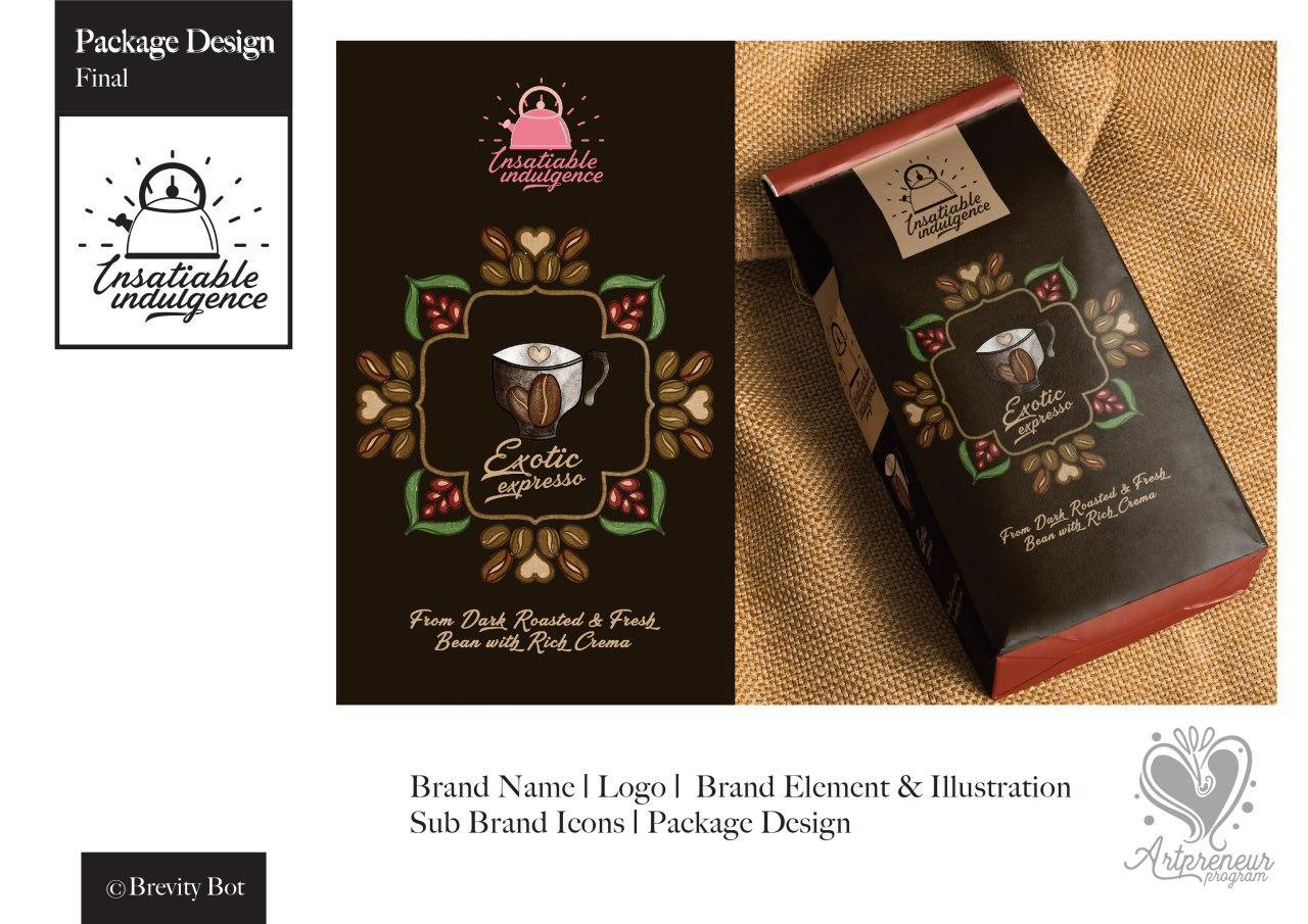 Insatiable Indulgence is an Urban café situated in the prime area of the city. It deals with providing an exotic and extensive range of Coffee, Tea & Hot Chocolate. The Brand Name is an oxymoron and, it resonates well with food lovers and their love to explore and experiment with foods. Right from the Brand name, every step of branding is carefully crafted with an Artistic touch by Artpreneur Swetha Sridharan The idea was to create a brand identity that would attract, envision and communicate their values to the customers.