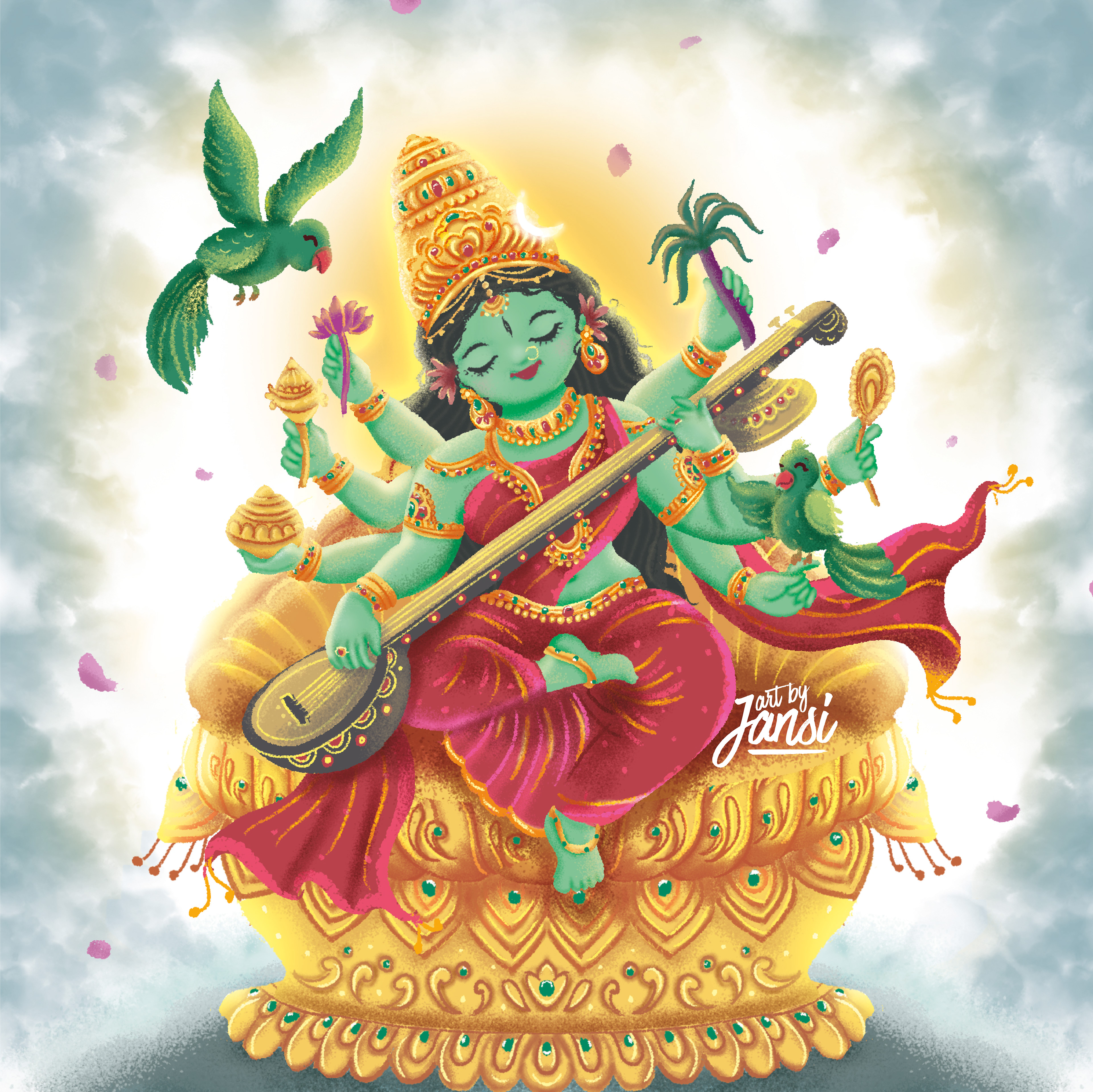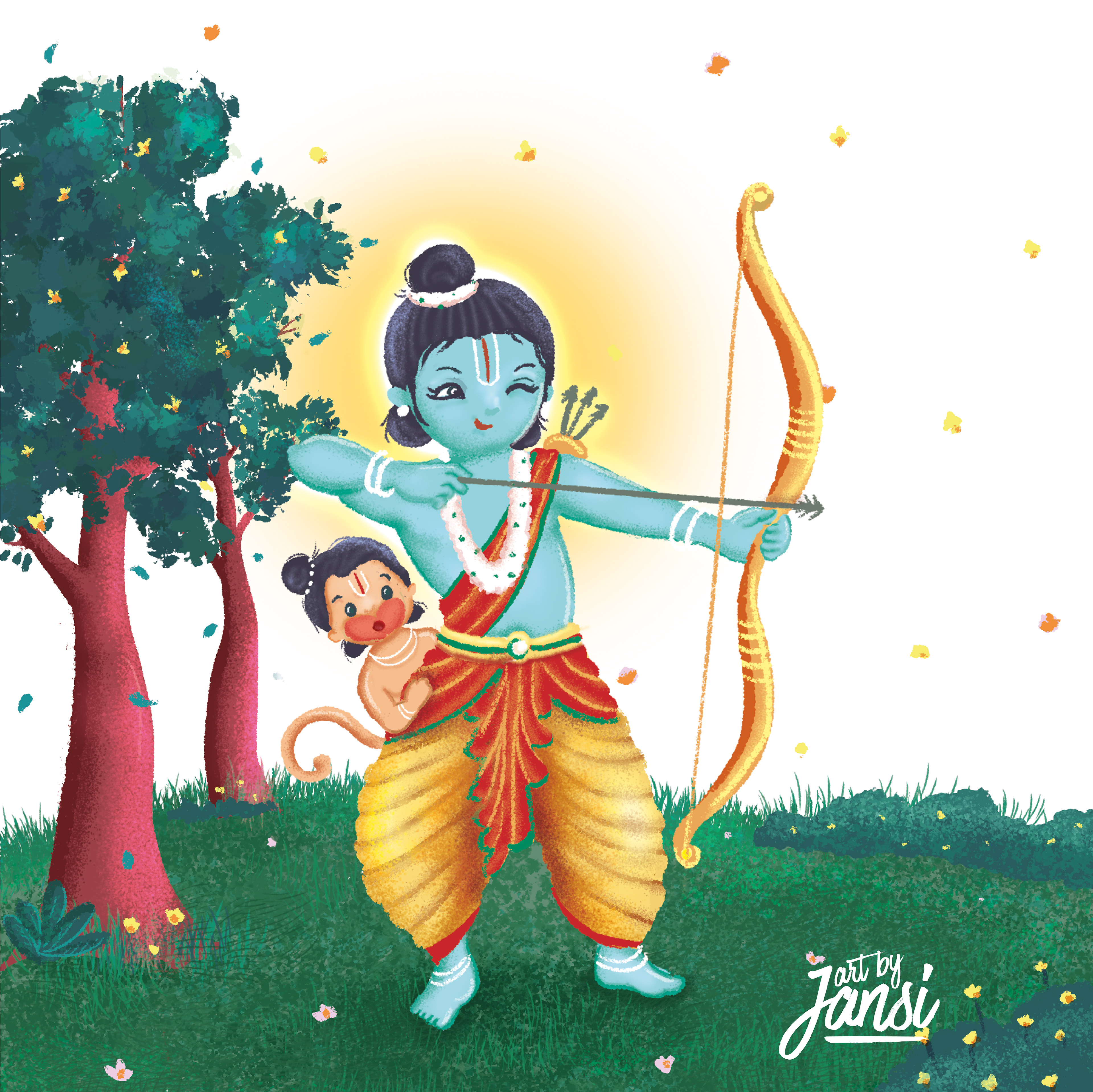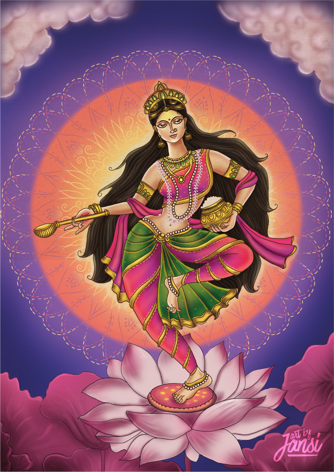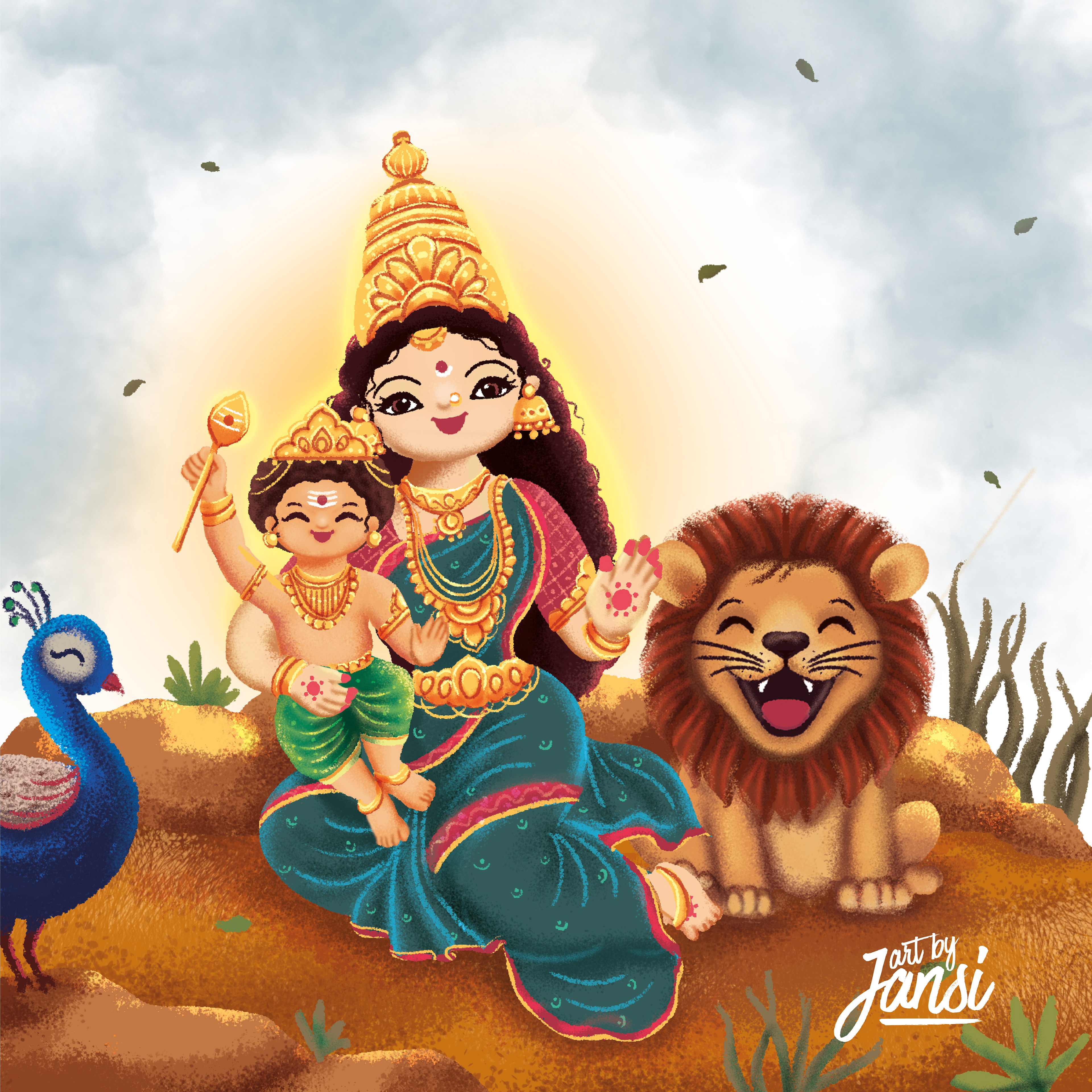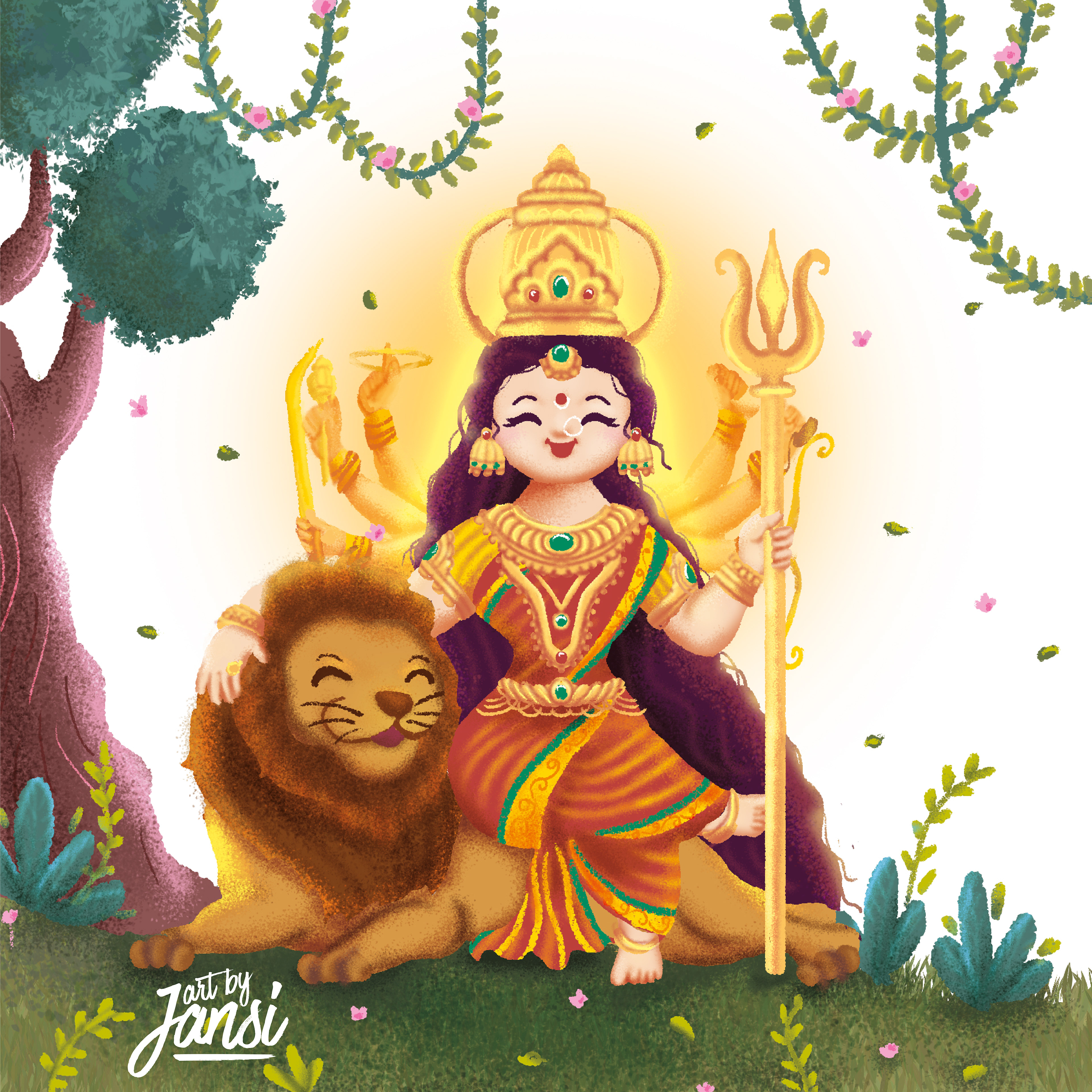 Conceptualized and Illustrated by Jansi for the 'Hymns of Ishta Devtas' project, a series of illustrations created for a children's book