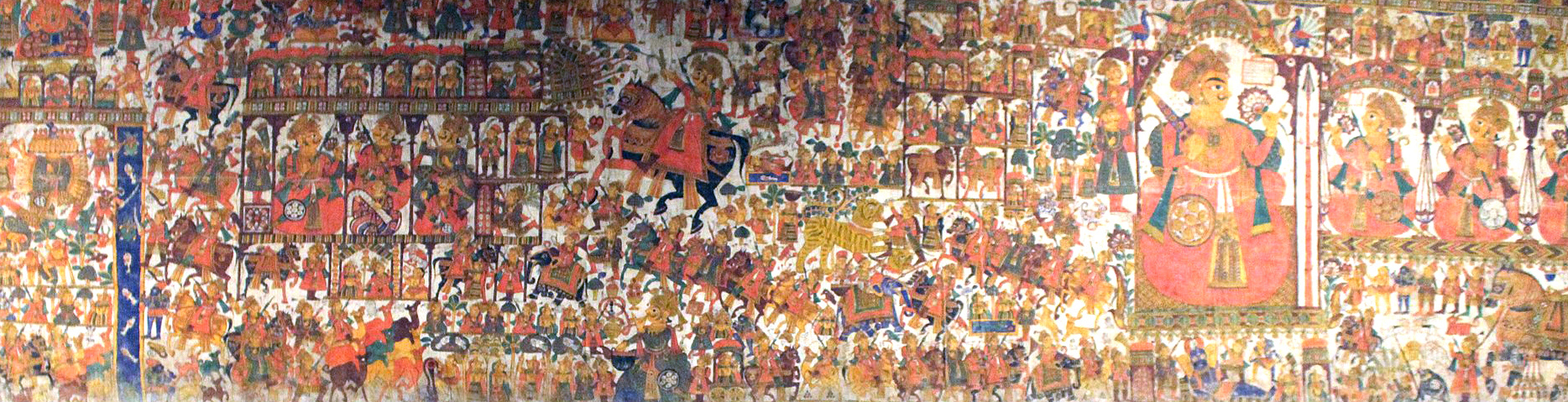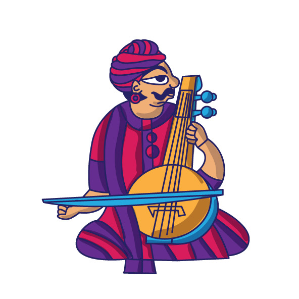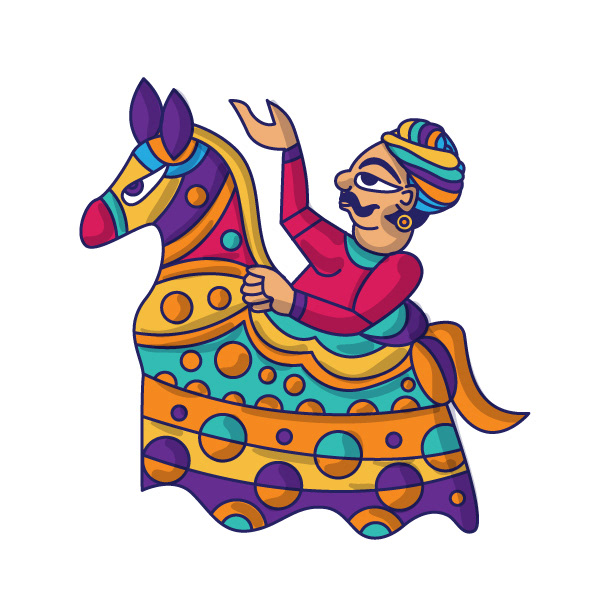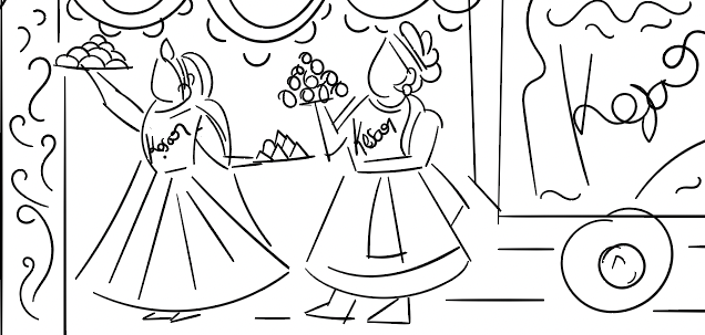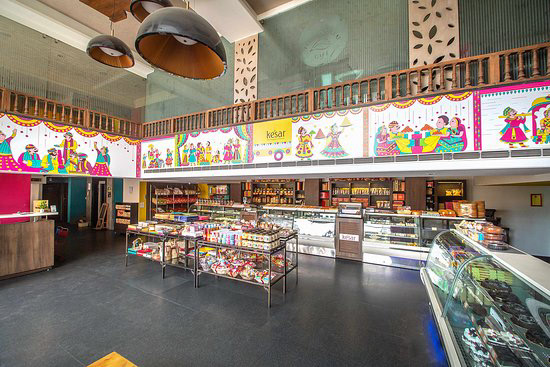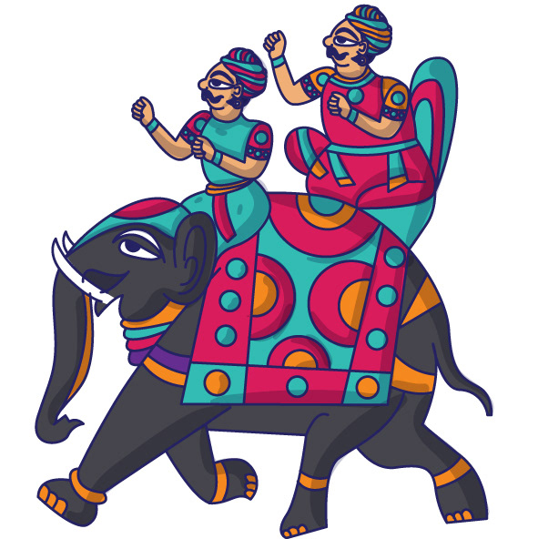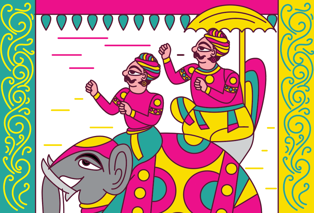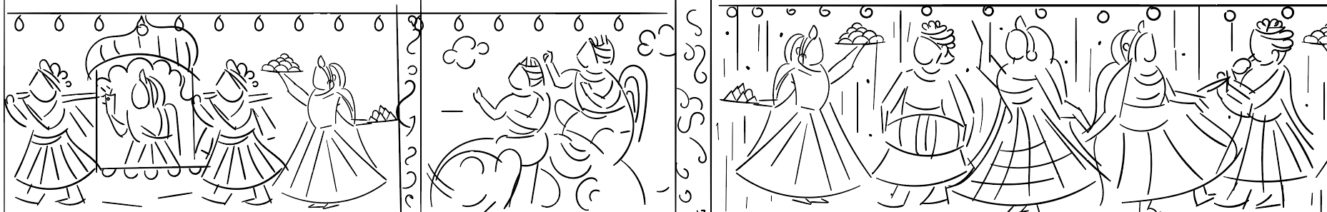 Digital wall mural illustrations of sweets in Indian weddings and events inspired by Rajasthani Phad Paintings for Kesar, a mithai boutique in Jaipur, has a long history of serving gourmet sweets worldwide.