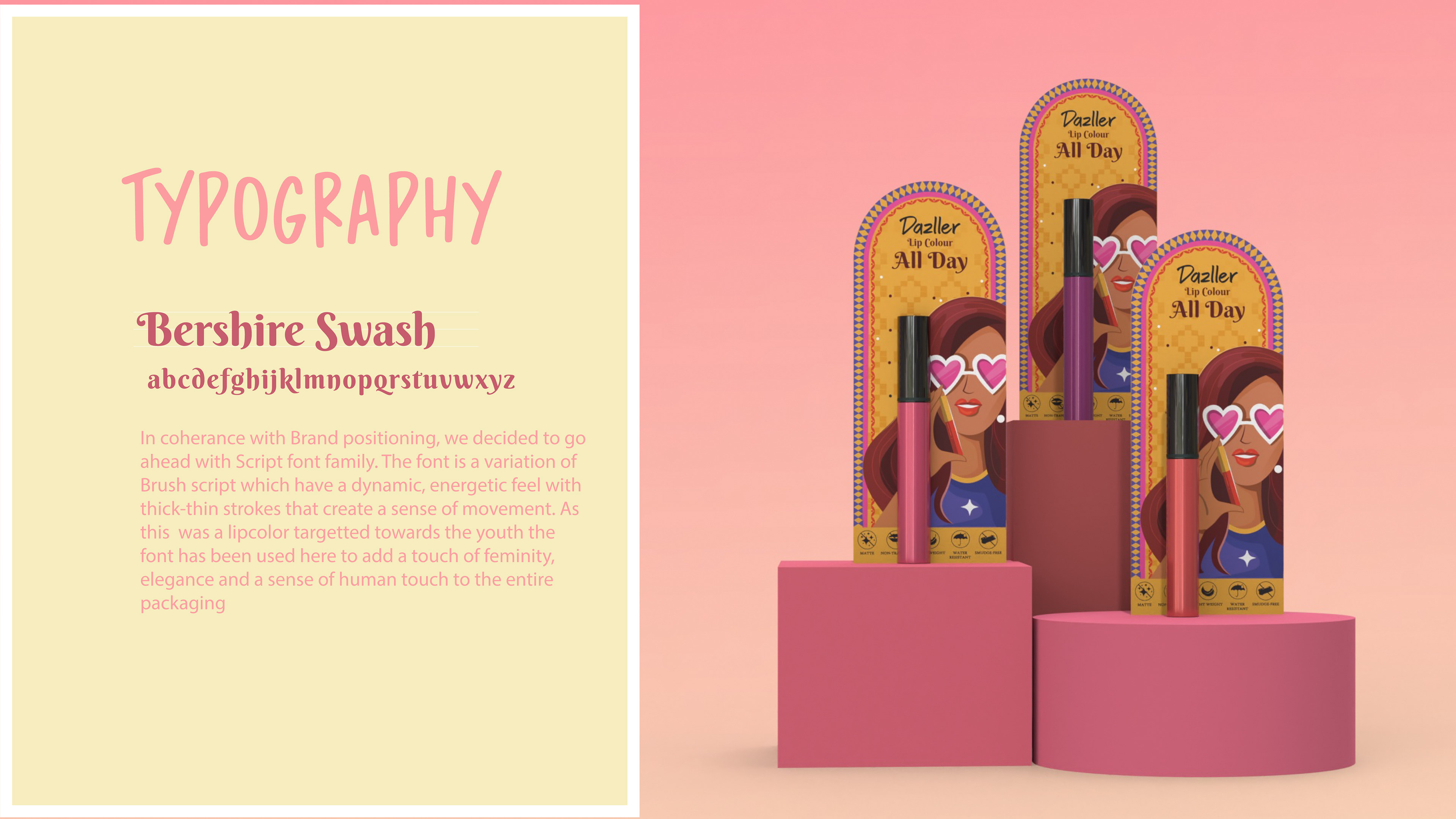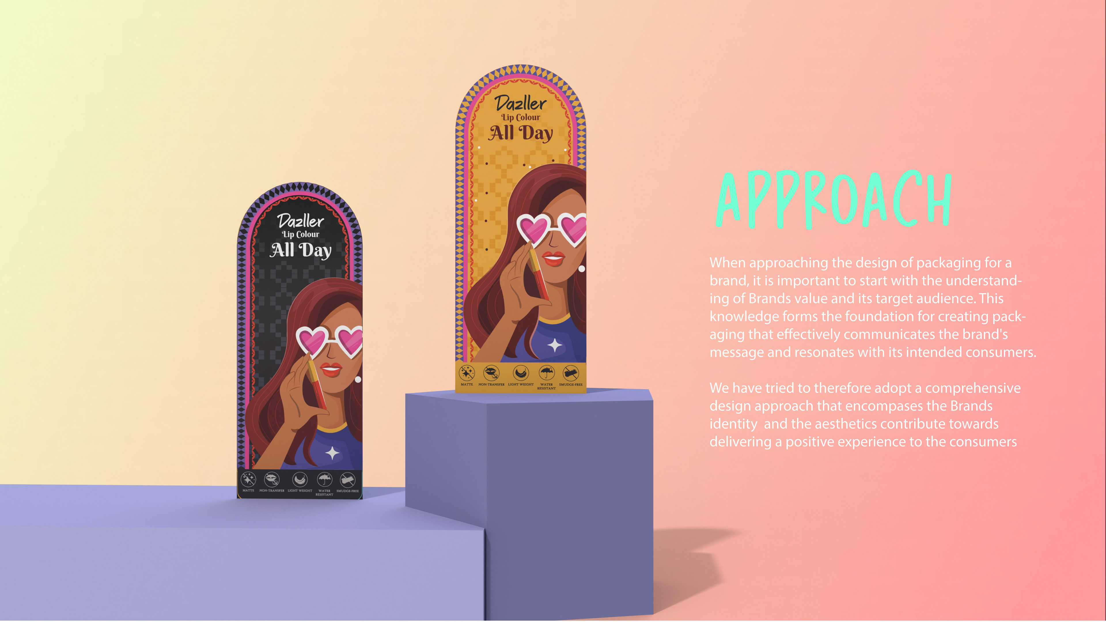 We were approached by the Brand as they wanted to rework on their colour cometic - Dazzler Brand’s positioning under the current competitive landscape and redevelop the approach for their product packaging. The approach taken by us therefore explores understanding Brand strategy, brand promise and dissecting elements that can set it apart from its competitors. The packaging style and development therefore was developed to create a brand identity that can resonate with its target audience