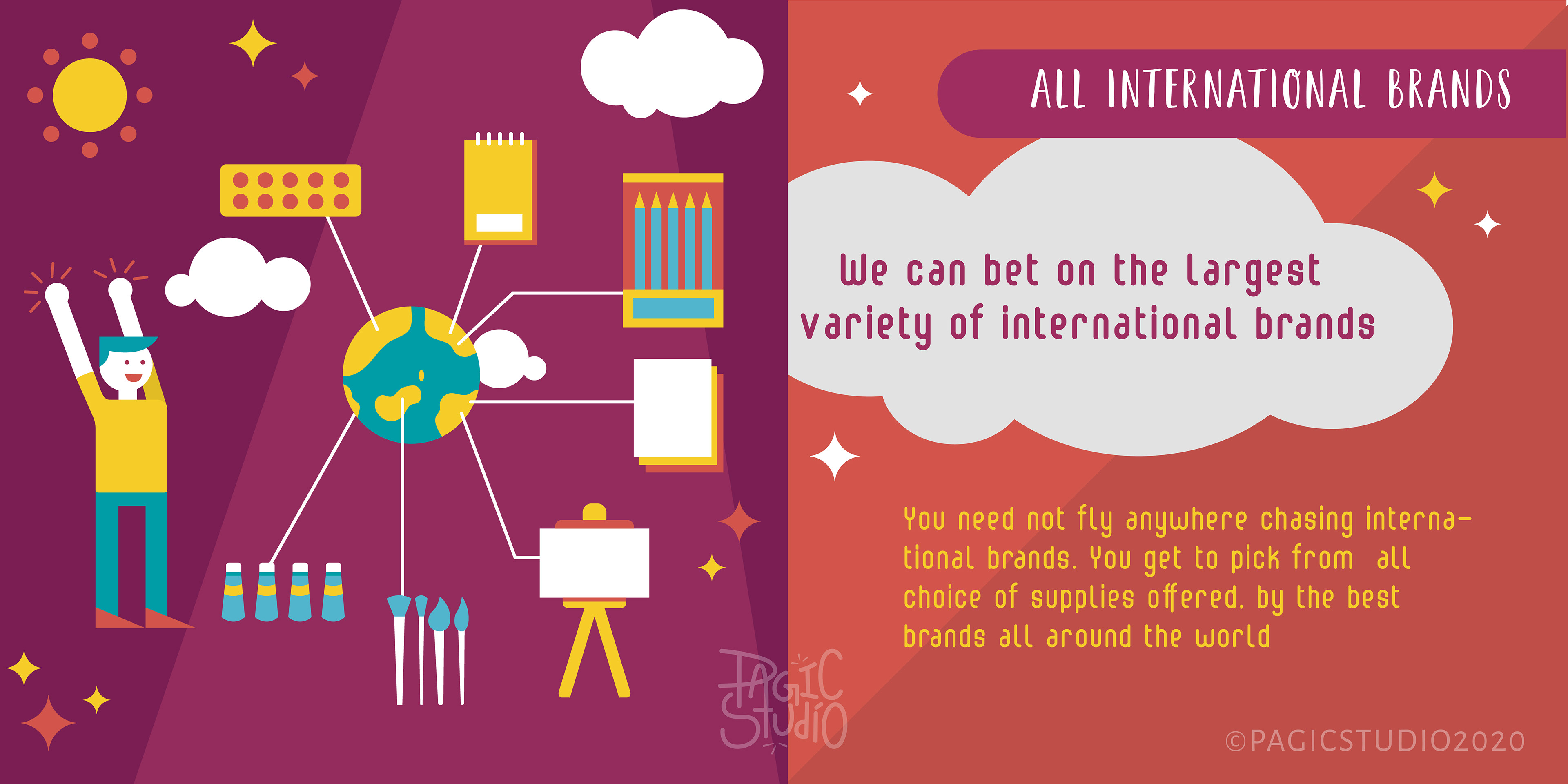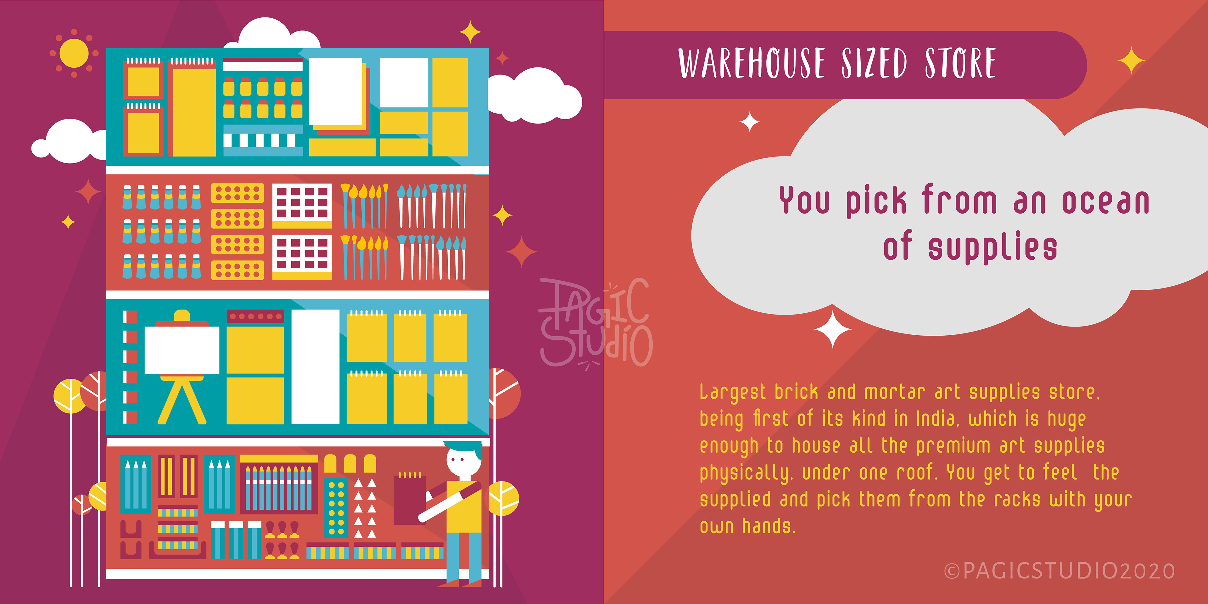 The client is a brick and mortar art supplies store, which is first of its kind in India, in terms of store size and variety of supplies. The idea was to create a brand which is surreal, conceptual and slightly quirky. It had to be minimalistic and also eye-catching. For this project, we created a Logo, Brand elements, Business sets, Basic Store elements, Brand illustrations, and a Brand deck which showcases the client's prominent advantages over the competitors.