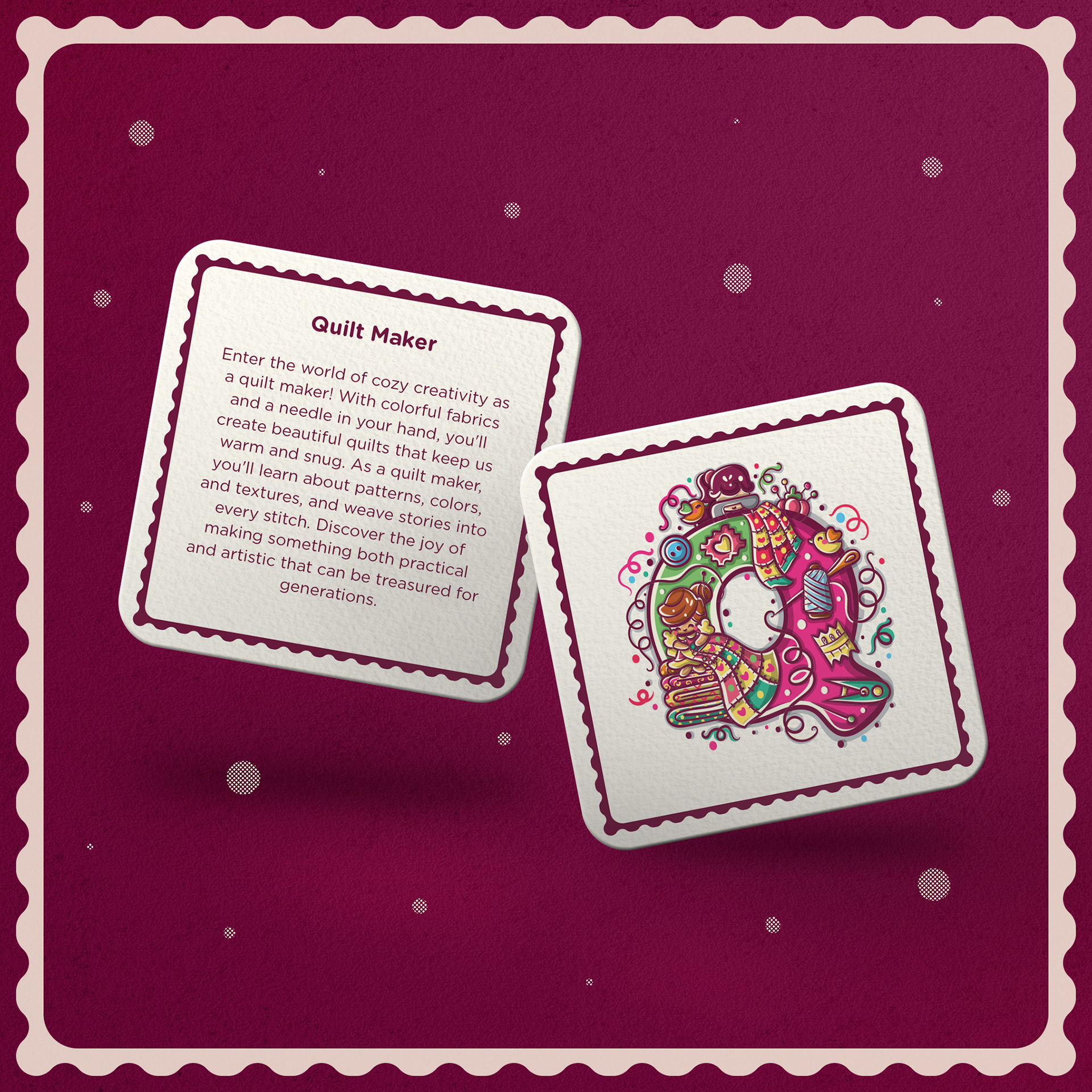 Quilt Maker: An artisan who designs and creates decorative and functional quilts by sewing together layers of fabric, often showcasing intricate patterns and designs.